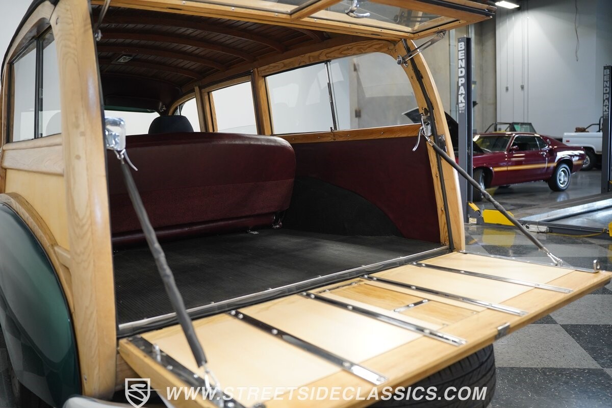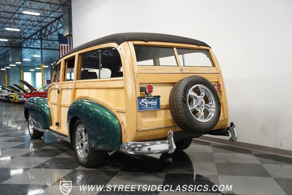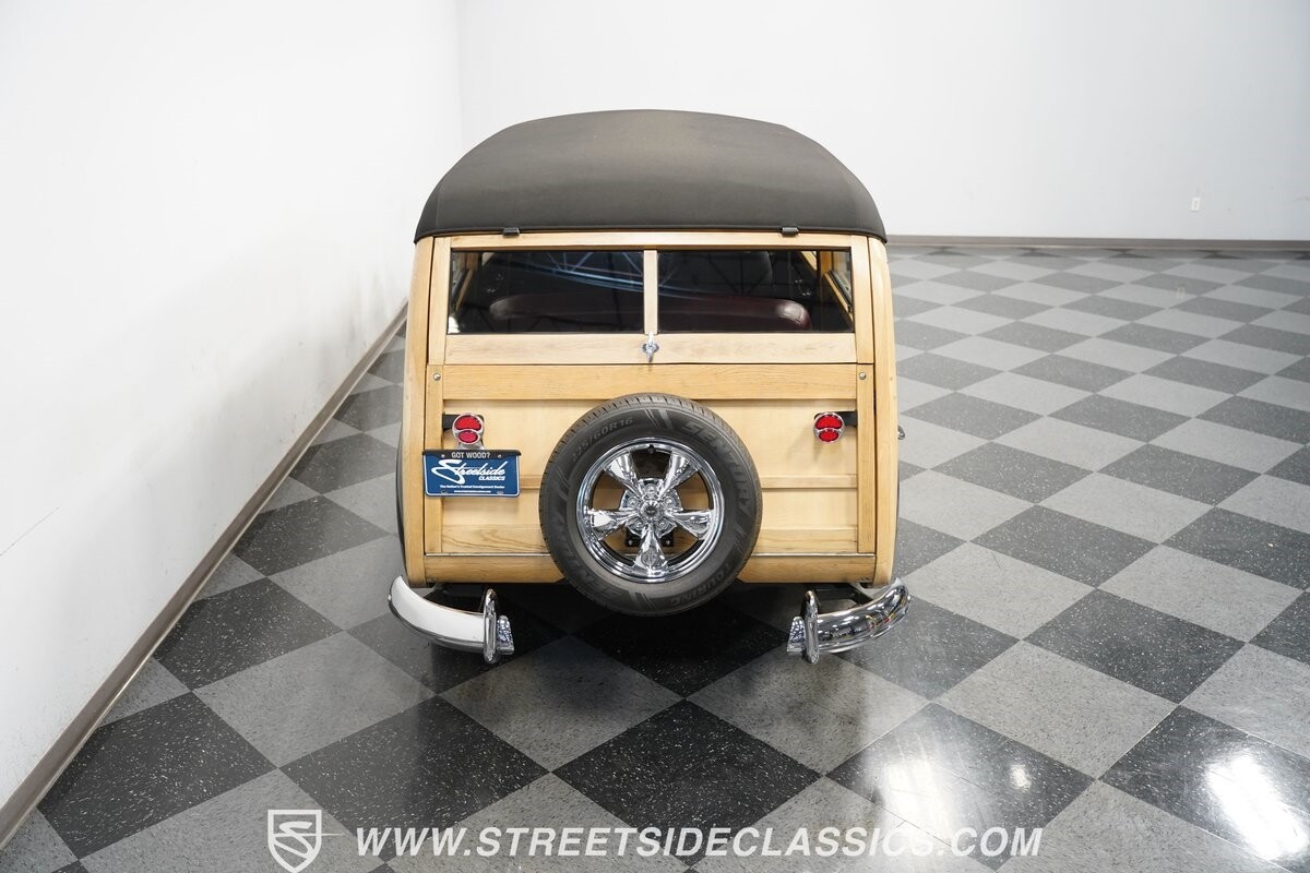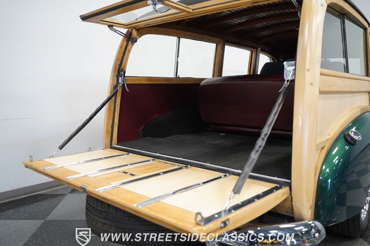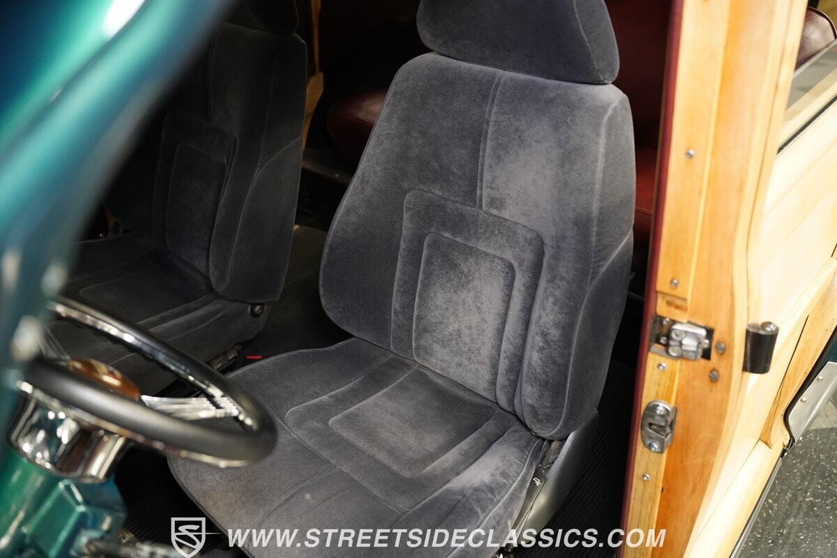 The 1947 Chevrolet Fleetmaster Woody Wagon is all about family adventures, surfboards, and sandy beaches. Powered by a robust 350 V8 crate engine mated to a smooth 4-speed automatic transmission, and featuring a striking metallic green exterior, complemented by the maroon and gray interior with wooden accents, all rolling on 17" American Racing wheels, this Woody Wagon is eagerly awaiting its next chapter. Call today!