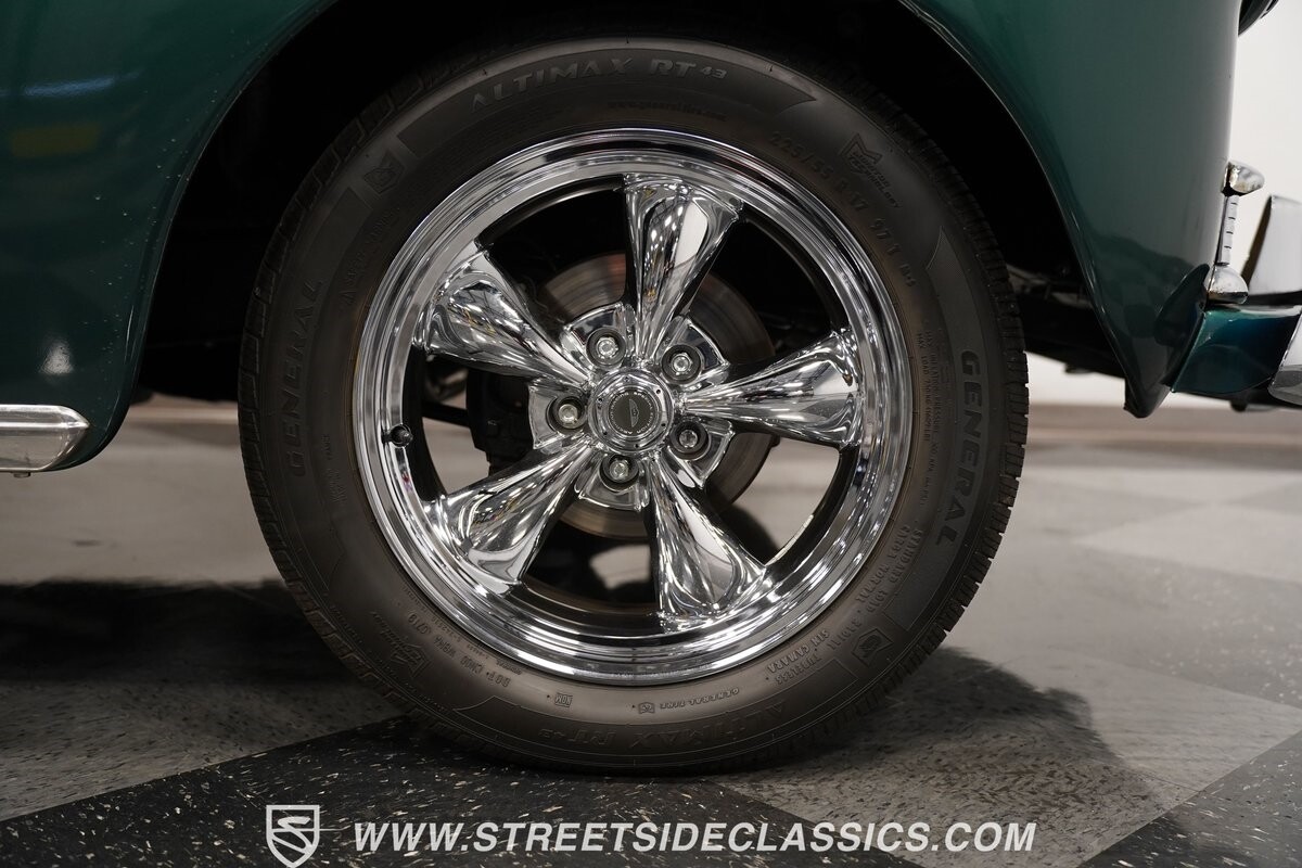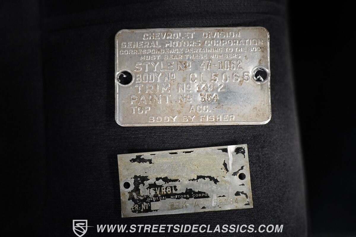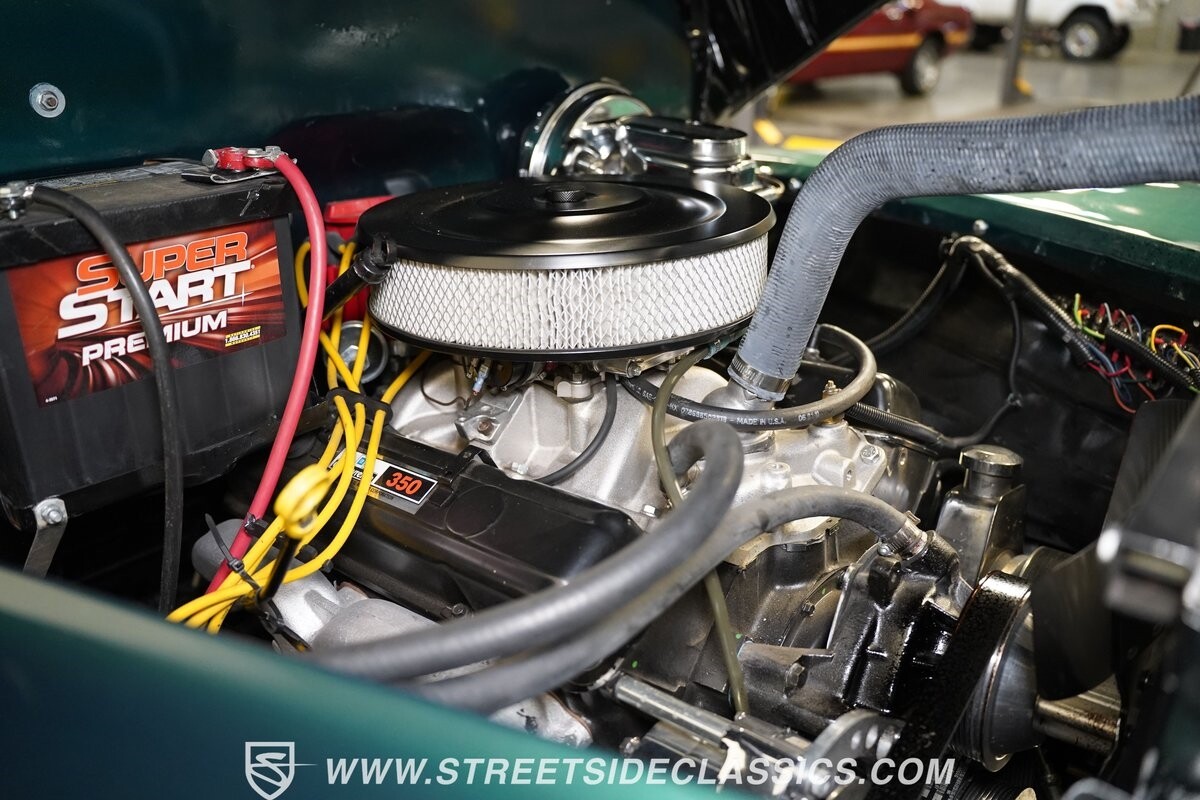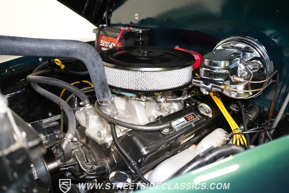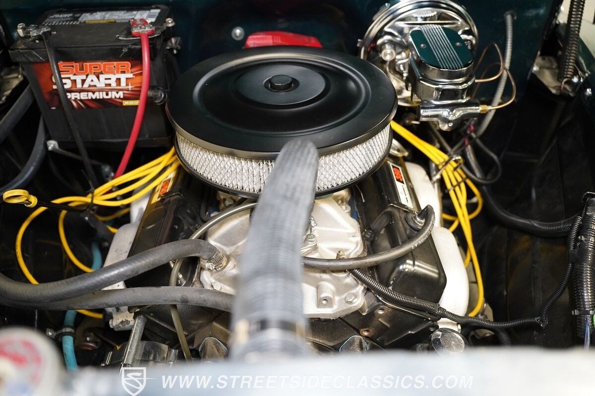 This 1947 Chevrolet Fleetmaster Woody Wagon keeps the good times rolling, thanks to the Goodwrench 350 crate motor fed by a Holley four-barrel carburetor and an Edelbrock performer intake. The HEI distributor ensures reliable ignition, and it's all managed through a 700R4 4-speed automatic transmission. The engine bay is a model of cleanliness and organization, with tidy wiring and proper clamps showcasing meticulous attention to detail. With power disc brakes in the front and drums in the rear, a Mustang 2 front end, and a Ford 9-inch rear axle, along with an added rear sway bar, this wagon's performance is enhanced, making every journey, whether to a show or a family outing, an experience to cherish.