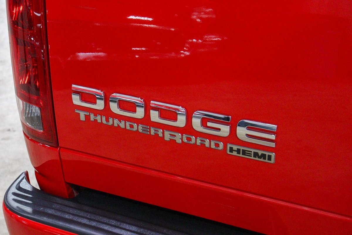 Introducing a rugged yet stylish 2003 Ram 1500 Thunder Road Edition Crew Cab Pickup, finished in a striking Flame Red exterior paint that commands attention wherever it goes. This versatile truck combines raw power with refined comfort, making it the perfect companion for both work and play.