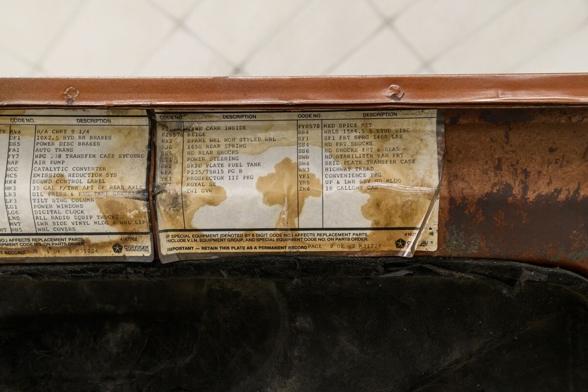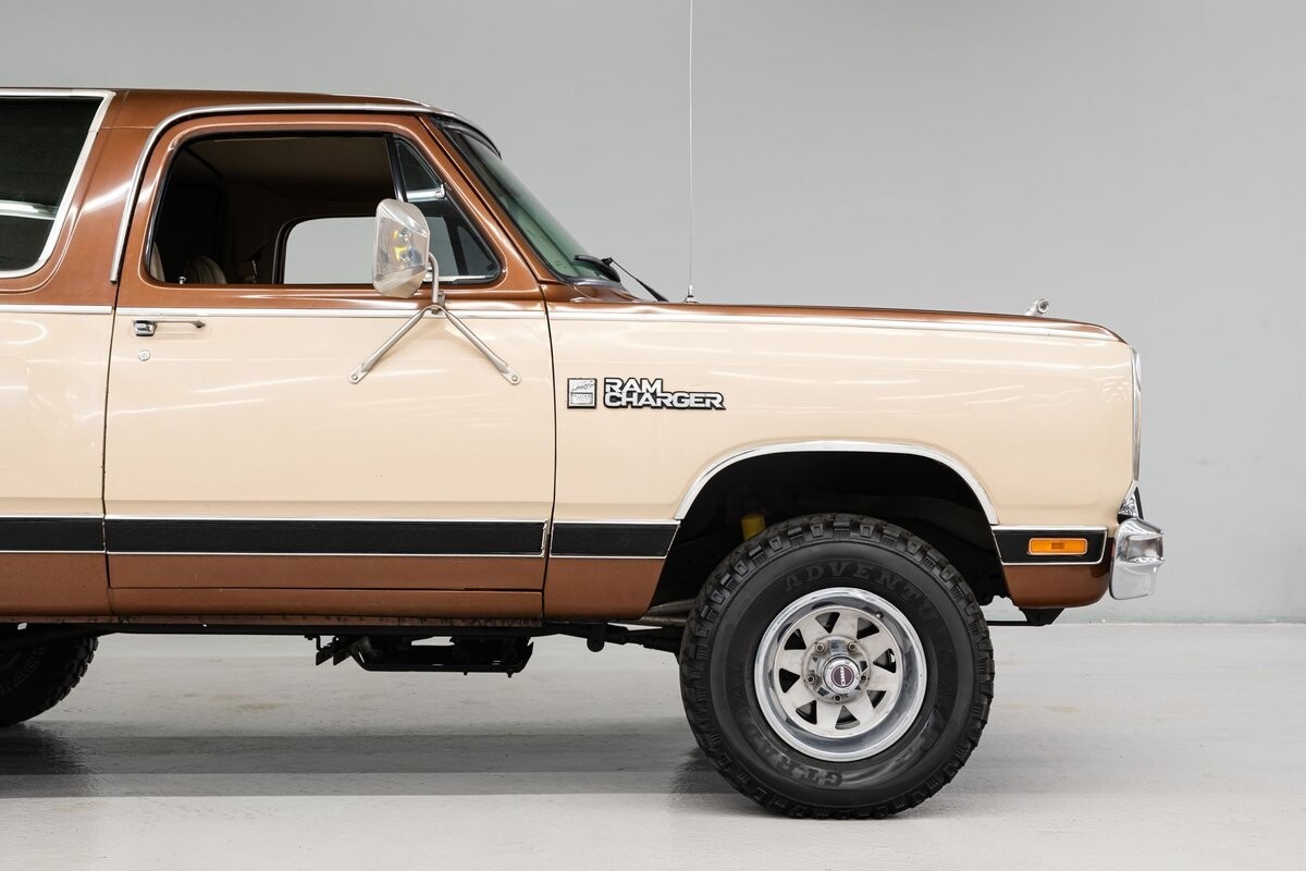 This 1983 Dodge Ramcharger 4-WD is a rare original example of the second-generation Ramcharger produced from 1981 through 1993. These models introduced rectangular headlamps, bumper guards and squared-off bodylines. The Ramcharger model was fitted with an extended top to provide rear passenger seating (not removable). This original, unrestored Gen2 Dodge Ramcharger 150 is in very good condition. The factory Brown/Tan exterior finish has good luster and there is no indication of body rust. The original interior is in very, very good condition. Tan cloth/vinyl seats, dashboard, headliner, carpeting and door cards have all been well maintained and are sharp. The dash cluster contains a full factory gauge package and convenience options include cold air conditioning (new compressor), power tinted windows, tilt wheel and an AM/FM sound system. Power for the Dodge is furnished by Chrysler's LA-series 318 V-8 that produces 230hp and 340lb/ft of towing torque. These engines are virtually indestructible and the owner states that it has never required a rebuild. The automatic transmission used in the Ramcharger is the Chrysler TorqueFlite 727 3-speed and the transfer case is the manual 2-speed New Process NP-208 w/automatic 'shift-on-the-fly' locking front hubs. Various axle configurations were utilized in the Ramcharger, but most were Dana 44 units. Suspension appears to be stock with power-assisted steering and factory 15" 'Wagon Wheel' style wheels mount meaty all-terrain radials. The Ramcharger also has power assisted front disc/rear drum brakes. This Ramcharger is ready for a new owner who will appreciate the grandeur of this full-size classic. ALL VEHICLES SOLD "AS IS".