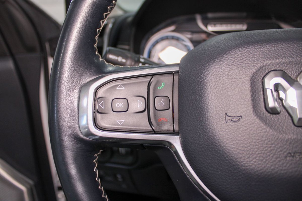 Safety is paramount in the RAM 1500 Limited, equipped with an array of advanced features including Advanced Multistage Front Air Bags, Blind-Spot and Cross-Path Detection, and Full-Speed Forward-Collision Warning Plus, providing peace of mind on every drive.