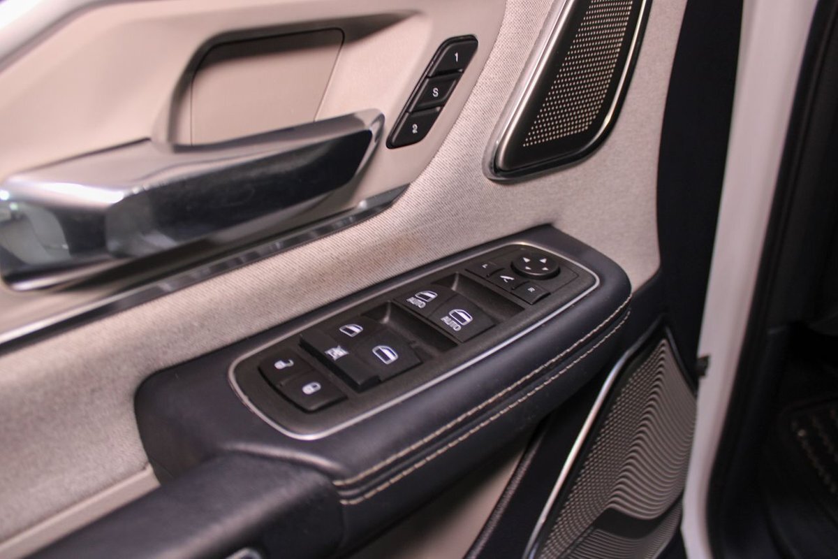 Step inside, and you're greeted with a sanctuary of opulence and technology. The Uconnect® 5 Nav with 12.0-Inch Touch Screen Display serves as the command center, seamlessly integrating with Apple CarPlay® and Google Android Auto™ for unparalleled connectivity. Indulge in the comfort of heated and ventilated front seats, while the Wood/Leather-Wrapped Steering Wheel adds a touch of sophistication to the cabin ambiance.