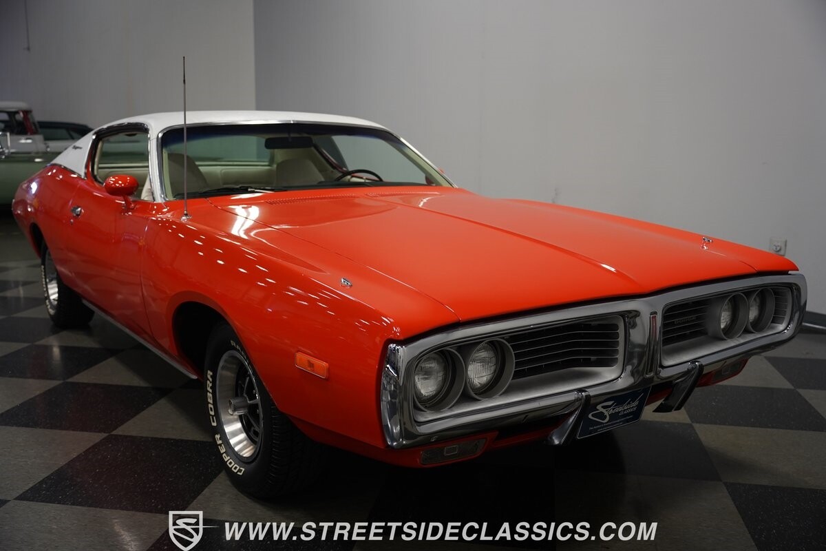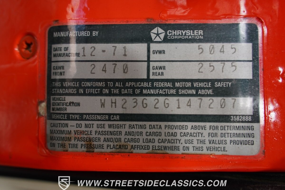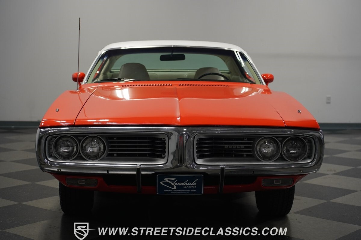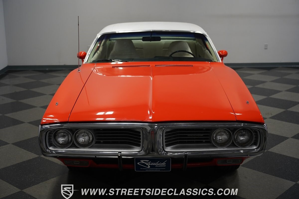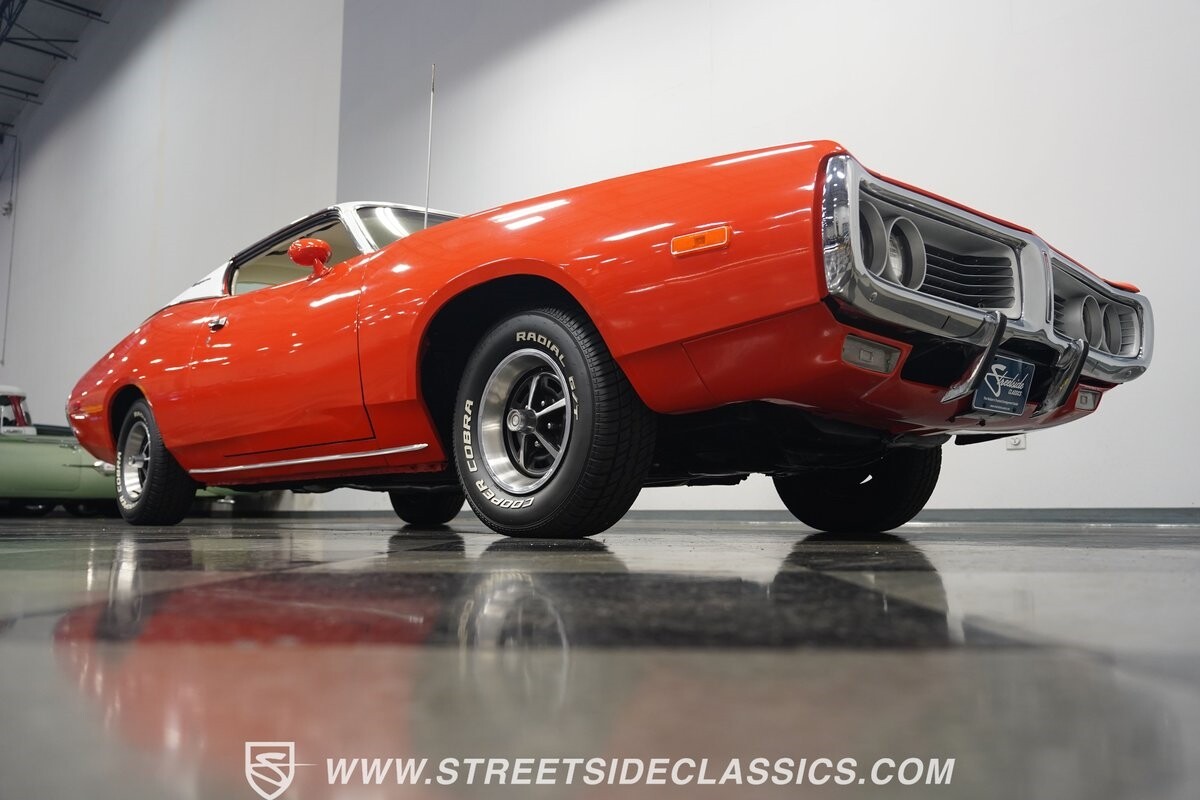 Attention Mopar fans, here are some of your favorite things - factory-correct colors, reliable 318 V8 engine and bucket seats. Yes, this 1972 Dodge Charger is everything you want, and more! Long, lean and truly its own car, the 1972 Charger has one of the meanest lines to come out of Detroit. EV2- Hemi Orange is such a great color of distinction on these coupes, so it is great to see it in its factory-correct hue shining so brightly. This Charger's design might be distinctive, but it is also easy to see the legendary DNA running through this car's veins in the chrome bumper surround and all of the badging. You can see it in all the details, like the correct Mopar 14-inch Road Wheels wrapped with Cooper Cobra Radial GT with raised white lettered tires.