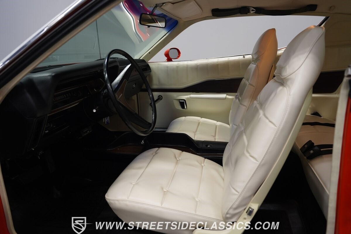 There are always interesting components found in a Mopar, and it starts here with the front seats. The button-top design is one of the most distinct and plushest you will find in a coupe from this era. And speaking of luxury, the white interior is tastefully broken up by wood paneling on the door panels and all across the dashboard. The factory three-spoke steering wheel gives you a great view of the dash, which is important, because everything is focused on the driver. Everything looks quite period-correct, right down to the original air conditioning system and factory AM radio, as well as the fun JC Penny FM radio converter mounted below the dash.