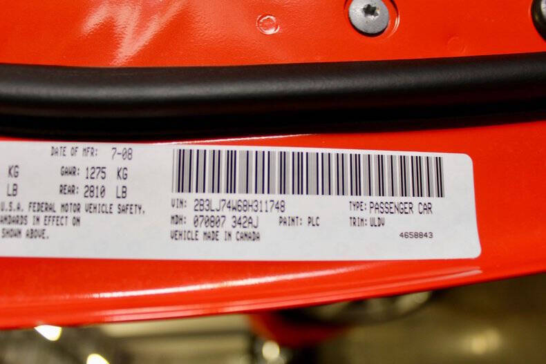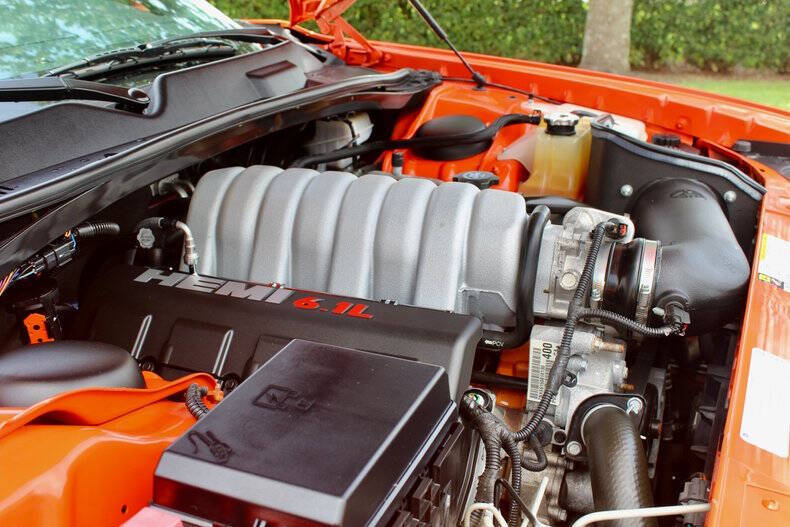 2008 Dodge Challenger SRT-8 - Modern Muscle Legend Unleash the power of a modern muscle icon with this 2008 Dodge Challenger SRT-8. Combining retro-inspired styling with contemporary performance, this Challenger is the perfect blend of nostalgia and cutting-edge engineering. This high-performance beast is ready to hit the road with exhilarating speed and unmatched style. 6.1L HEMI V8 producing 425 horsepower of raw American muscle, delivering a thrilling driving experience. 5-Speed Automatic for smooth and responsive shifting for optimal performance. Additional features are performance suspension engineered for superior handling and ride comfort. 20-Inch Forged Aluminum Wheels, Brembo Brakes, Touchscreen Infotainment System equipped with navigation, bluetooth, and a premium audio system. This 2008 Dodge Challenger SRT-8 is more than just a car; it's a statement of power, performance, and timeless design. Whether you're a muscle car enthusiast, a collector, or someone who appreciates the thrill of driving, this Challenger will not disappoint. EXTERIOR: aˆc Hemi Orange Pearl aˆc Black Stripe aˆc Tinted glass aˆc Alcoa Forged SRT Wheels aˆc Hemi /SRT Badging aˆc Red Calipers INTERIOR: aˆc Leather/ Cloth bucket seats aˆc Air Conditioning aˆc Power driver seat aˆc Power windows MECHANICS: aˆc 6.1L HEMI V8 425hp aˆc 5-Speed Automatic aˆc Power Steering aˆc Power brakes (Brembo) UNDERCARRIAGE: aˆc Clean Call us at941-208-6886, a live person answers the phones from 9am - 9pm (EST) Financing is available on our website We can ship this vehicle worldwide door to door Our indoor showroom is located at 7910 25th Court East Unit 107 Sarasota, FL 34243
