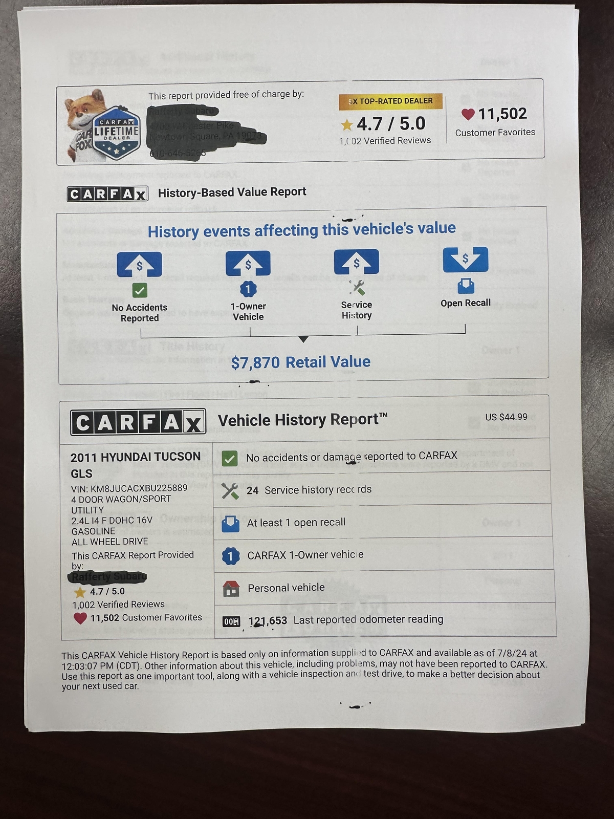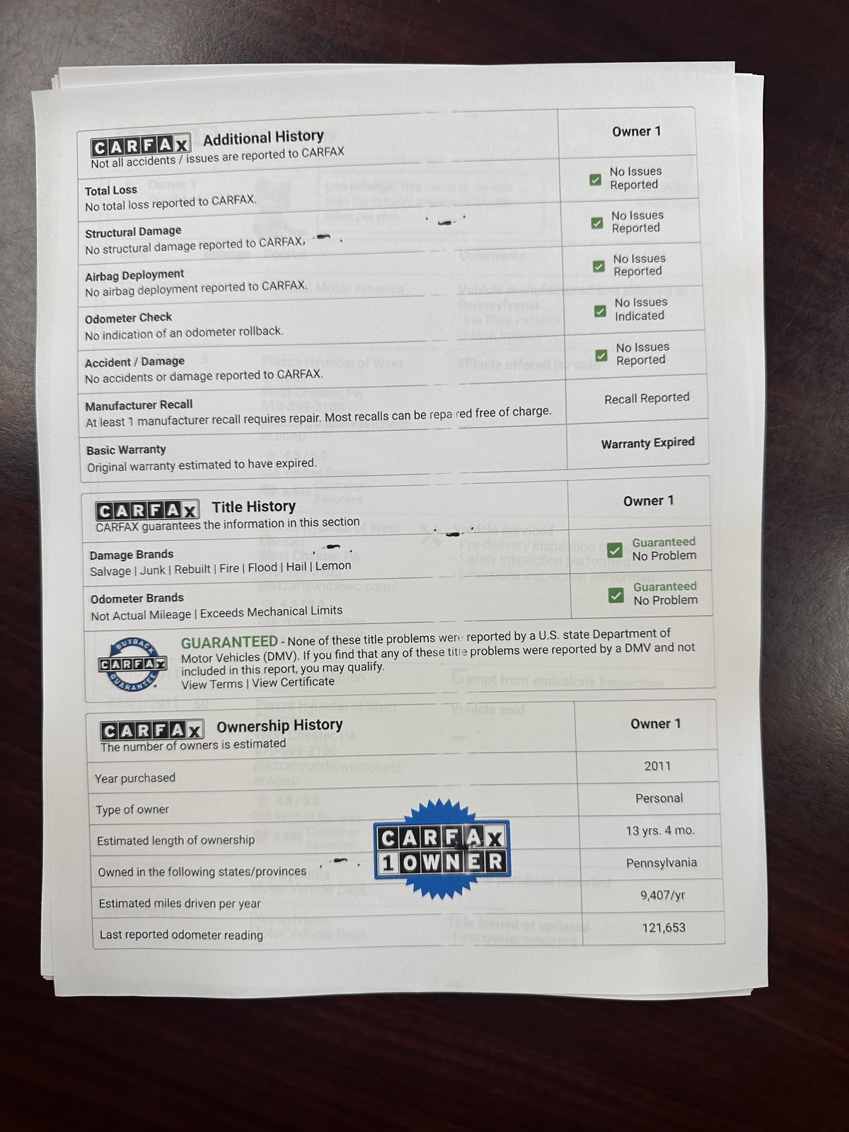 VEHICLE WITH HIGH MILES. WE RECOMMEND
