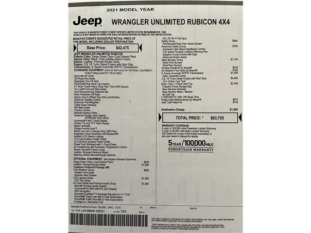 Rear Park Assist system, Automatic high beam, forward collision warning plus, adaptive cruise control with stop, Hardtop headliner by Mopar, Runs excellent. Drives good. Ice cold A/C. ?Dealer Buyback title. ?