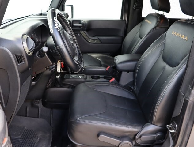 Our 2013 Jeep Wrangler Sahara 4X4, shown off in Billet Silver Metallic, is ready to handle everything. Powered by a 3.6 Liter V6 that produces 285hp combined with the rock-solid Dana axles and a 5 Speed Automatic transmission will allow you to carve your path. Our Four Wheel Drive SUV has large tires and ground clearance for the committed urbanite, plus it shows off nearly 21mpg on the highway. Stepping in or out of most potholes does nothing more than spill your drink. This Wrangler goes beyond basic with body-colored fender flares, custom wheels, and tubular side steps for easier access.Enjoy the embroidered heated leather front seats, air conditioning, and interior lighting inside our Sahara that make it easier to climb in, even on moonless nights. Modern technology abounds with the upgraded Uconnect 430N interface, 6.5-inch touchscreen, navigation, 40GB hard drive, remote USB port, and AM/FM/CD stereo with available satellite radio.This Jeep surrounds you with a strong safety cage, multistage airbags, tire pressure monitoring, Hill-start, and stability control. Our Wrangler Sahara offers the legendary rock-climbing abilities of America's favorite off-roader, with a dose of comfort to go along for the ride! Save this Page and Call for Availability. We Know You Will Enjoy Your Test Drive Toward Ownership!