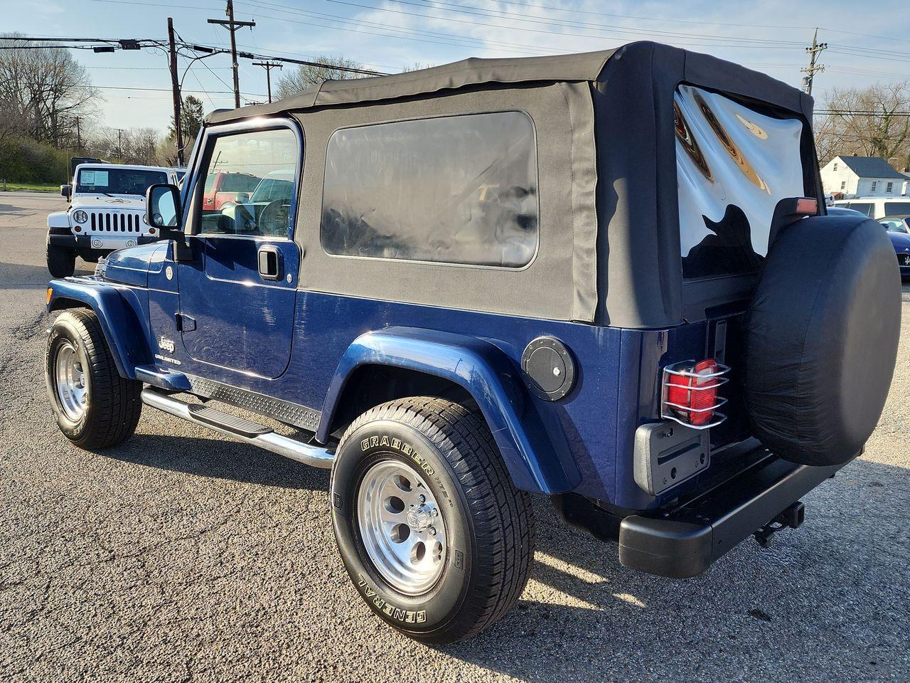 83K ORIGINAL MILE RUST FREE UNLIMITED LWB 4.0L 6SPD MANUAL! Super clean condition inside and out, originally from South Florida and Texas, super clean frame and underbody. Runs and drives great, nice upgraded polished alloy wheels with like new AT tires all around, Towing package, Auto dimming compass mirror, Cruise control, Body color fender flares, Upgraded CD player sound system, Hard doors with roll up windows, Chrome side steps, Fog lamps, and more. This Wrangler Unlimited is also factory pre-wired for the factory hard top option so it is all set up for you to easily add the hard top if you desire (comes just with the folding soft top as pictured). Runs and drives great with no known problems or issues, ice cold AC, fully serviced and inspected with no known problems to be addressed. A very rare and sought after TJ Unlimited Long Wheel Base 4WD with the 6spd manual transmission!