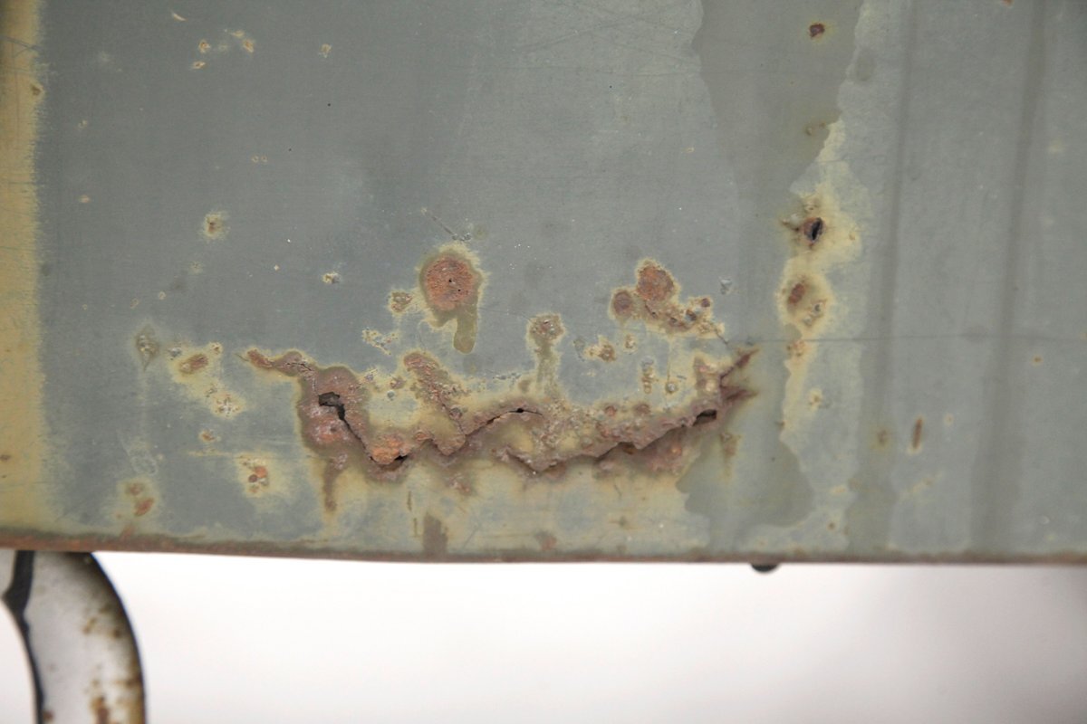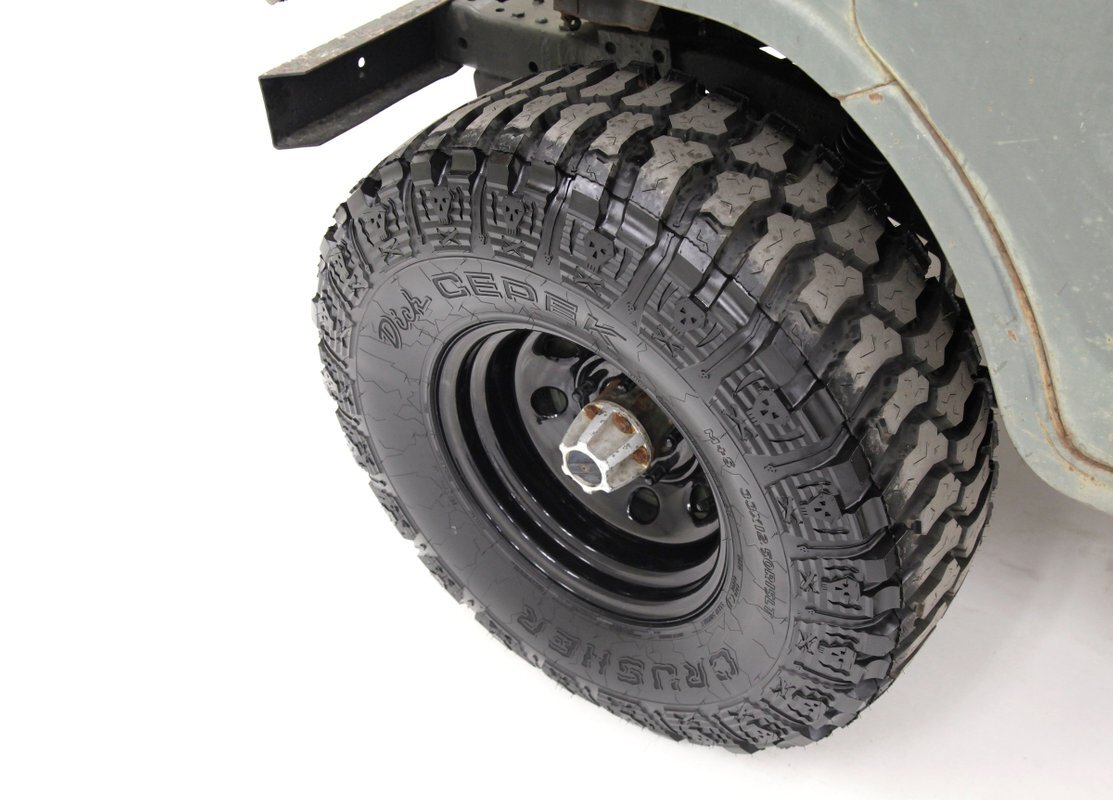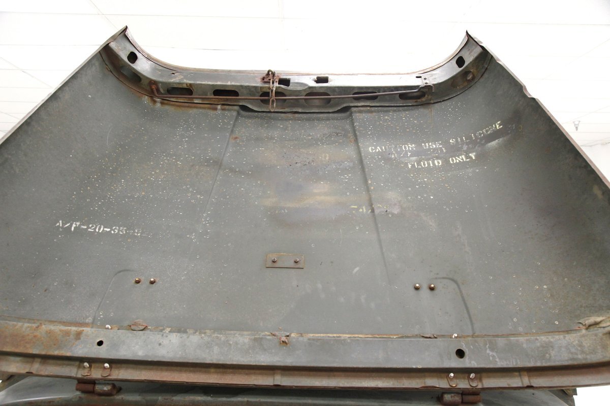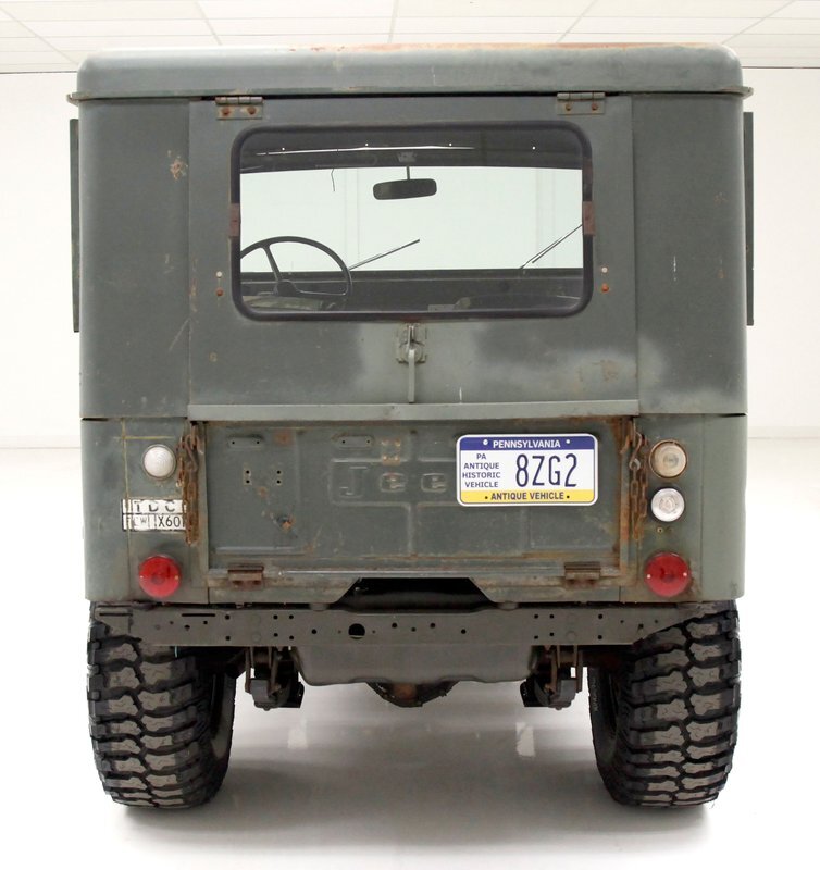 Years of outside activities and missions have left this Jeep with a beautiful faded patina of olive drab with a peering of surface rust where some off road experiences may have removed some of that said paint. A hardtop version with all metal construction and some sliding plastic windows for the rear passengers. Steel black bumpers are on and save for dual large black mirrors hanging from either side it is a 21 gun salute with its large knobby tires and black wheels. A-Ten HUT!