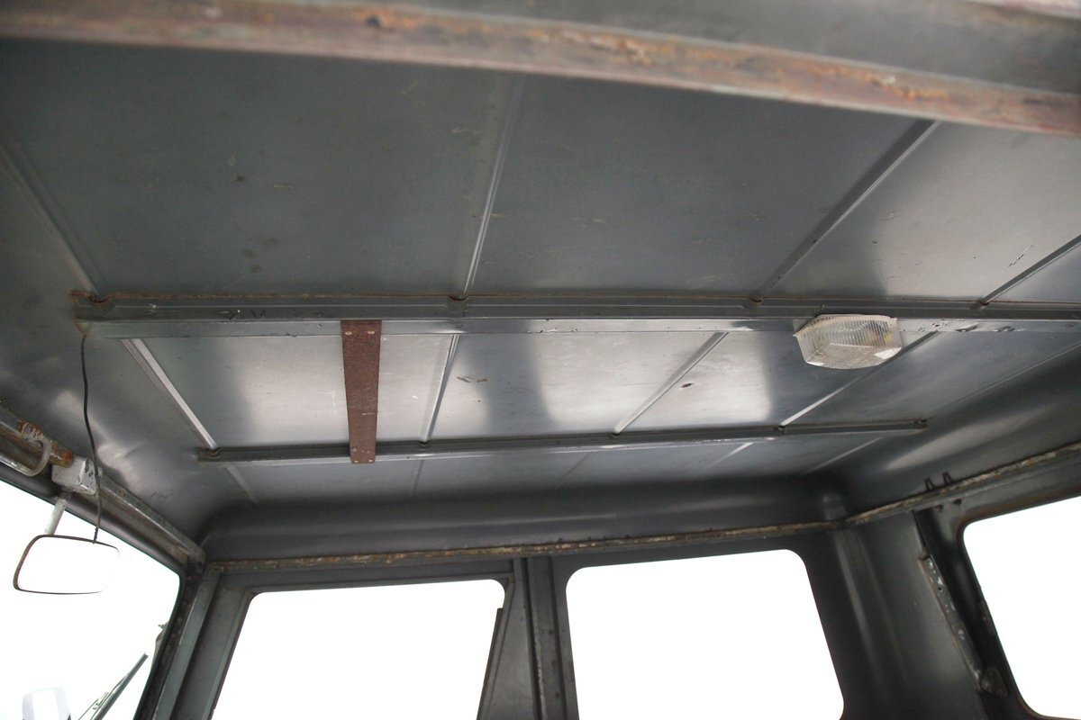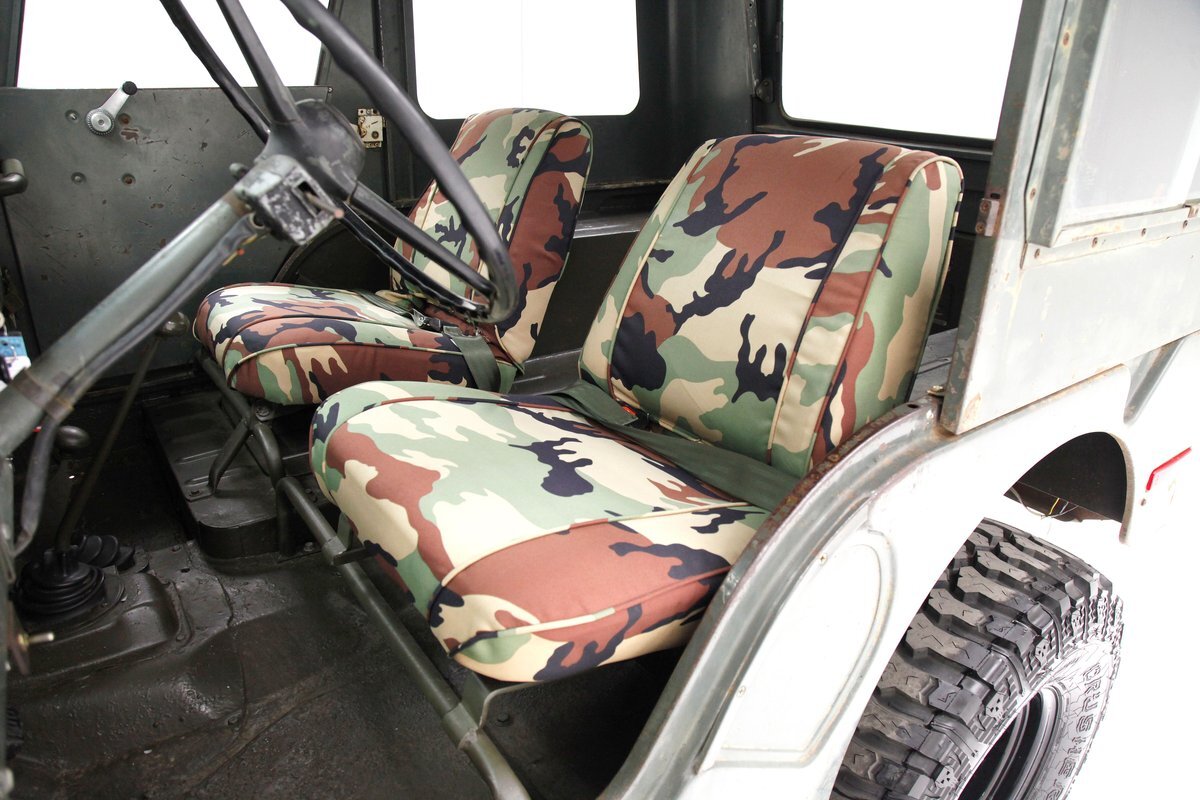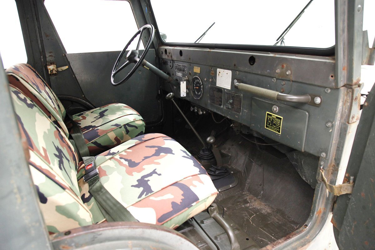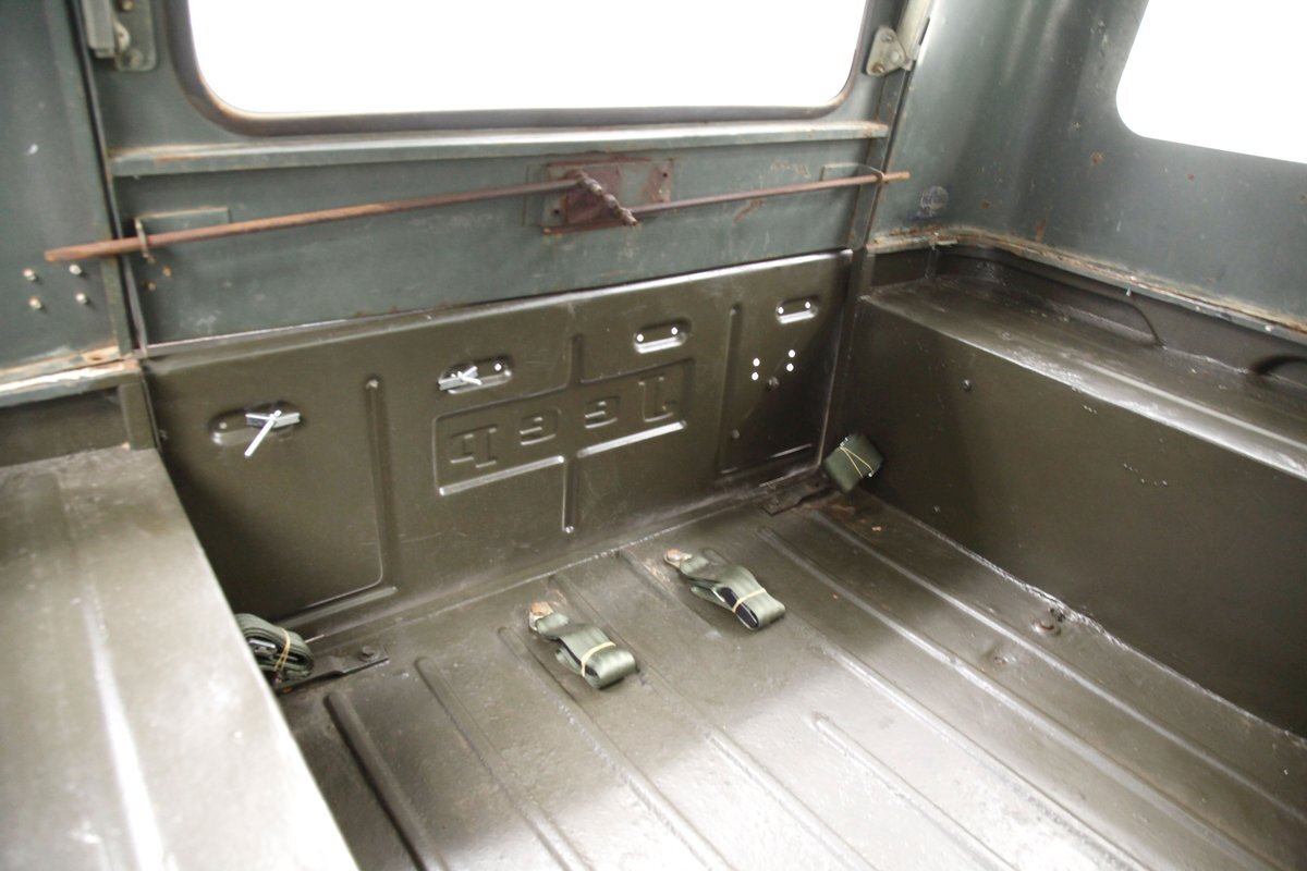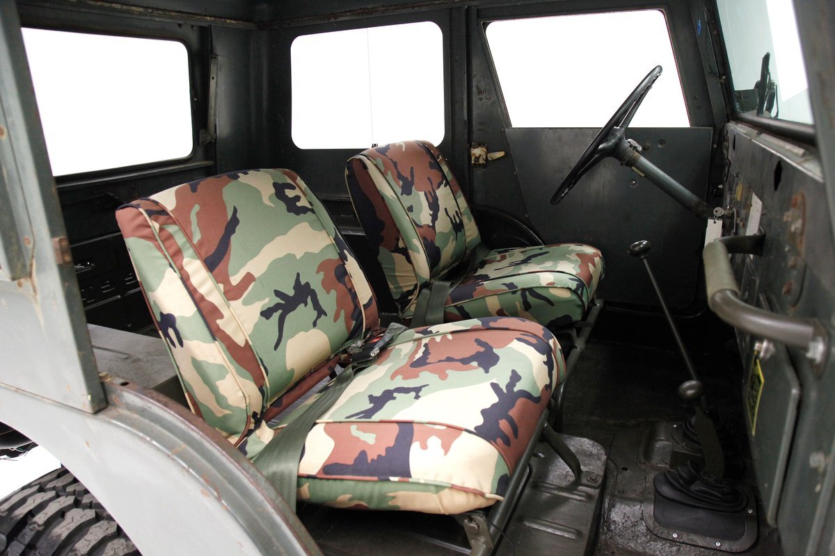 I don't know but I've been told, a frog man's money is as good as gold. Slipping past utilitarian metal doors in...olive drab! We see 2 low back buckets covered in camo seat coverings. In fact, it took me a while to find them they are so well camouflaged! Upfront is a simple metal dash with a large circular gauge cluster, knobs and buttons. Floors are black rubber, and in back is a fabricated metal bed with metal bench seats on opposing sides running the length of the bed. All metal insides, even the headliner is metal, and all surfaces showing some wear and scratches, with dents and dings, mostly normal use. Sound off..1..2, Sound off..3...4 Sound off 1...2...3...4!