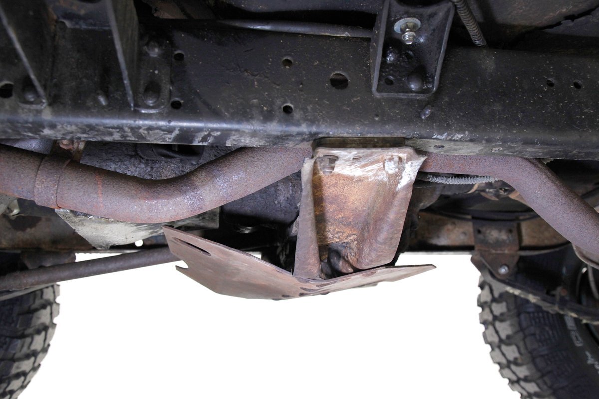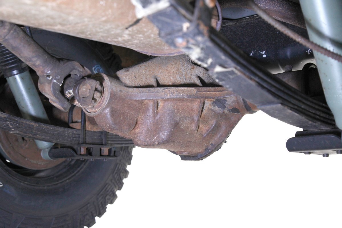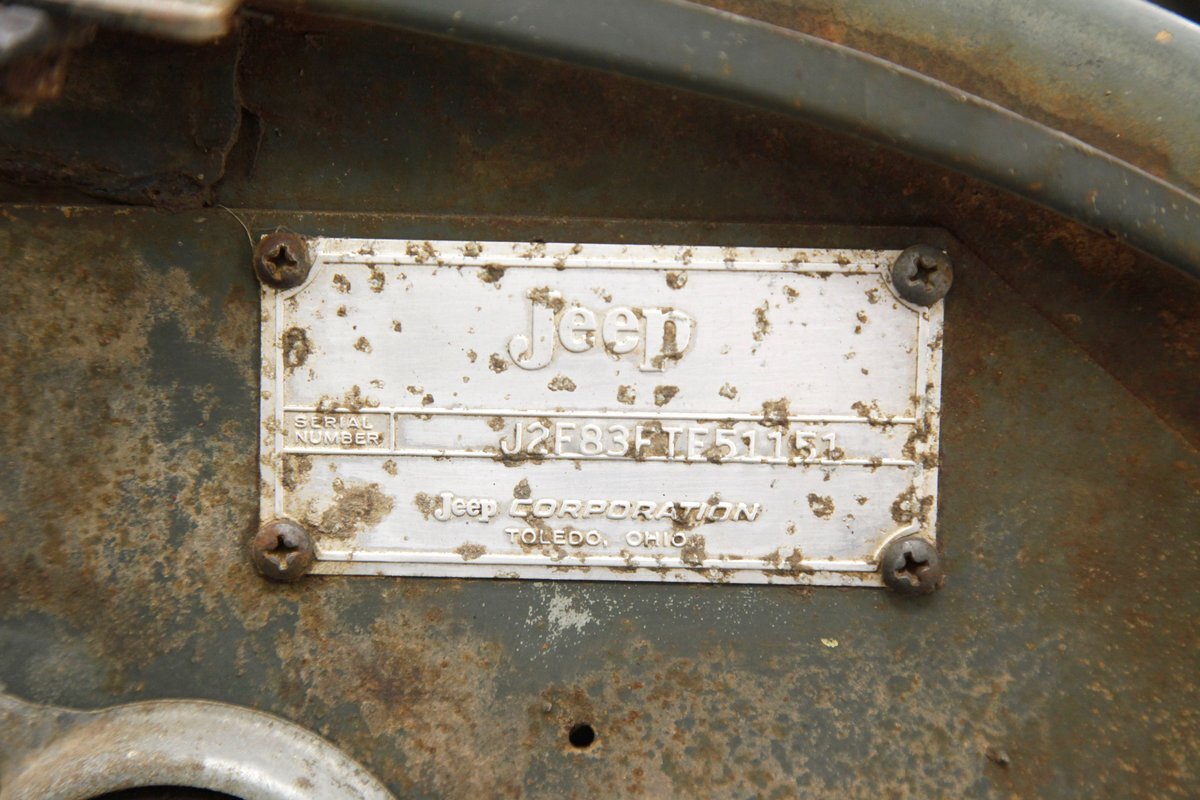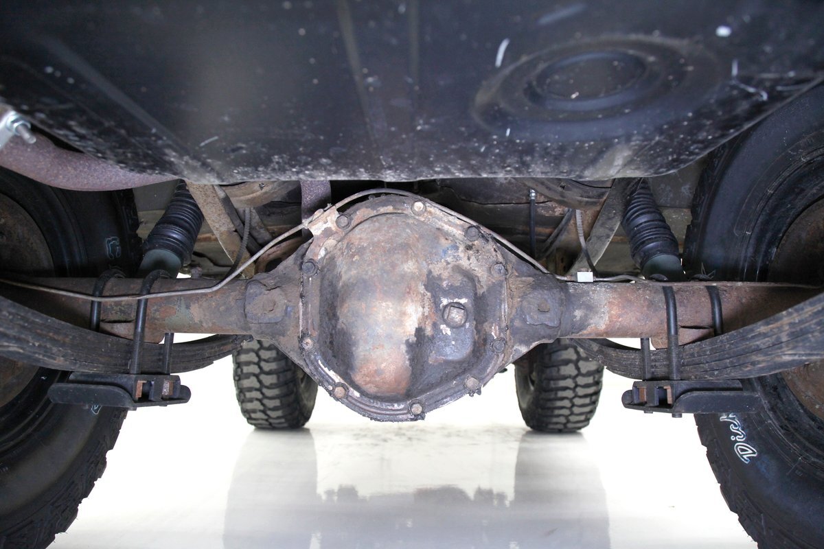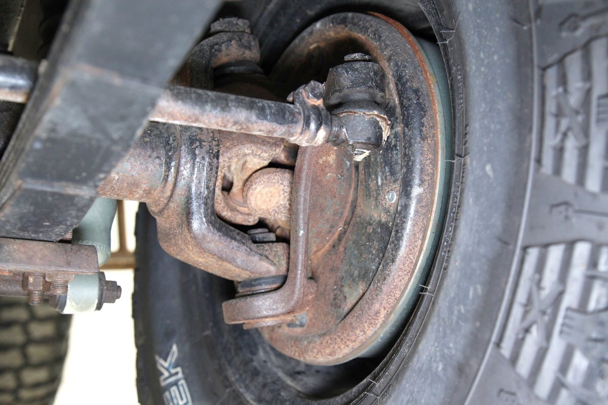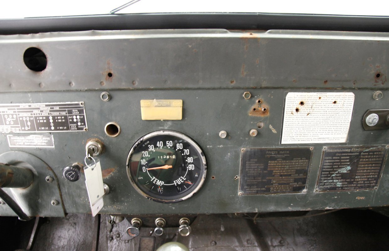 Lifting that white star to the windshield, reveals an unrestored engine bay. Within its confines is a 232ci inline 6 cylinder with a 1-barrel carburetor. Borg Warner is providing the transmission in the form of a 3-speed manual on back. A Dana 30 front axle and a Dana 40 rear axle completes the 4-wheel drive. What you lookin' at May-o-naise??