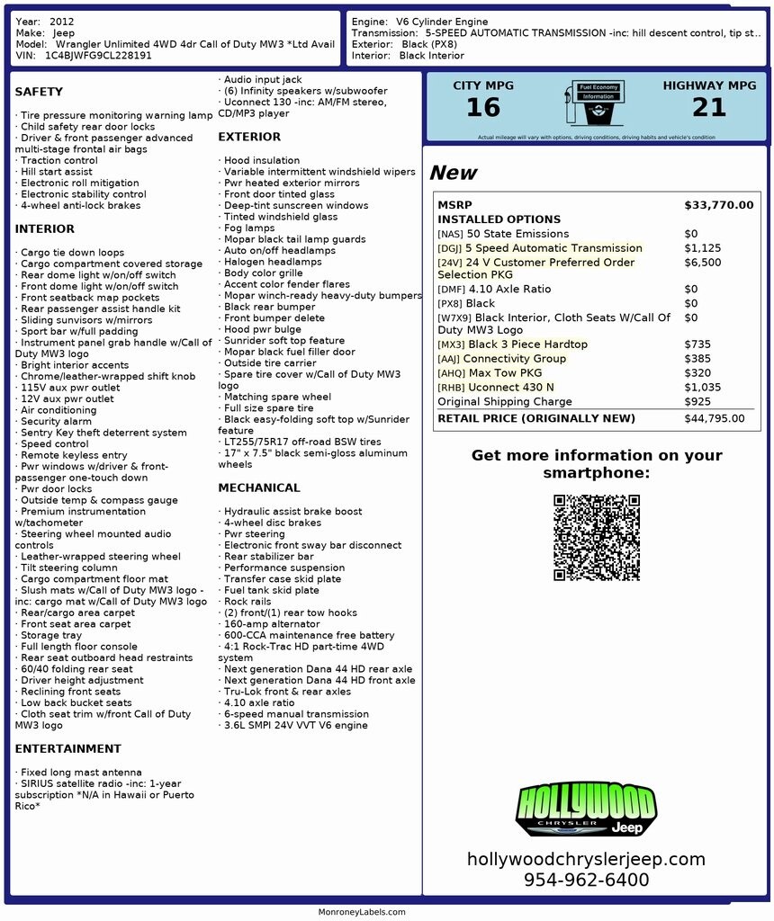 At Hollywood Chrysler Jeep, we specialize in accepting trade-ins and providing video walkarounds, ensuring a convenient car buying process. All prices exclude taxes, tags, registration, $999.99 Pre-Delivery Fee, $399.99 Electronic Filing Fee, and Pre-Installed LoJack, Appearance Protection, and Etch Theft Deterrent totaling $1,397.00. See dealer for details.