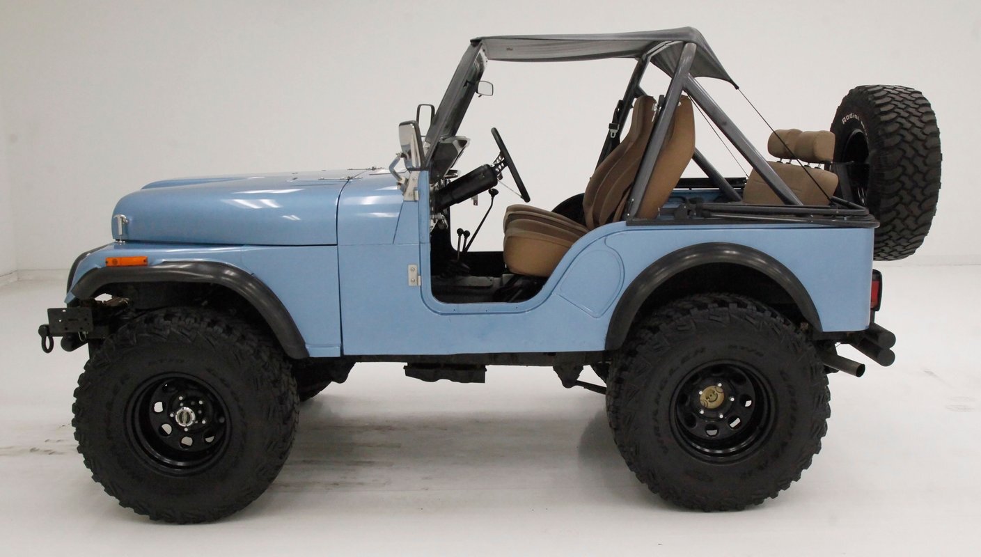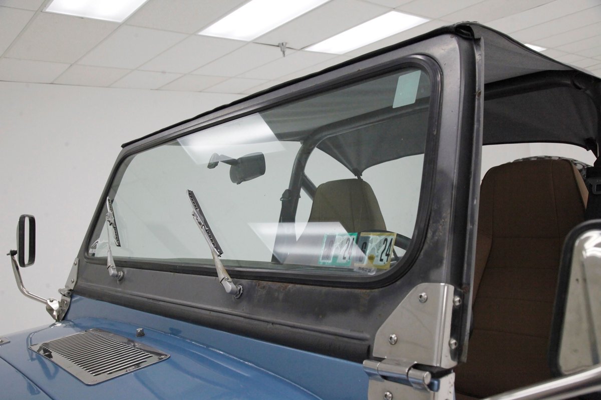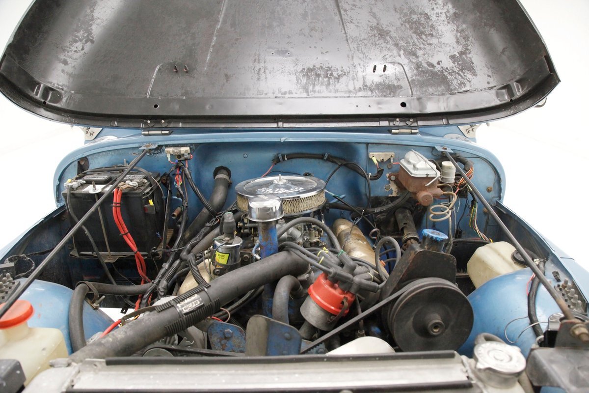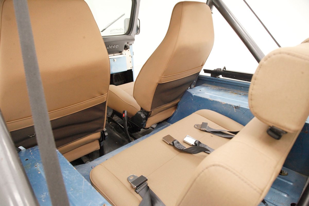 Under the flip up externally latched hood is a non original AMC engine in 304ci form. It has a Holley 2-barrel carburetor bolted on and on the back is a 3-speed manual transmission. Way out back is a 3.54 axle courtesy of Dana and a pull of the transfer case level engages the front axle for some serious off-roading.