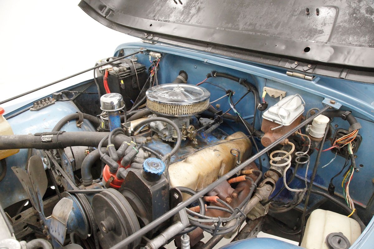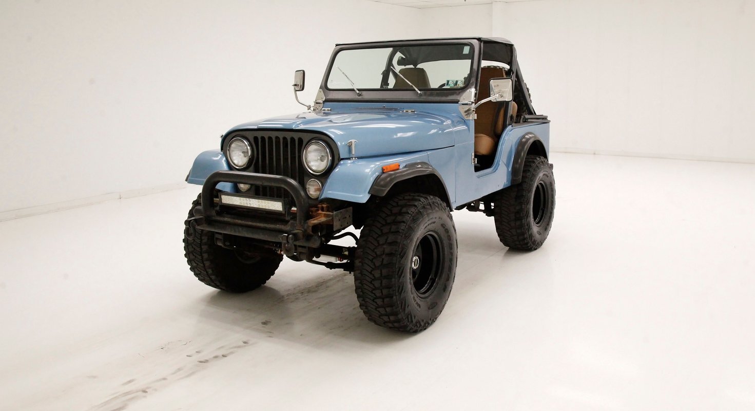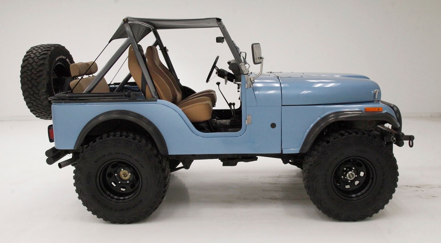 Under the flip up externally latched hood is a non original AMC engine in 304ci form. It has a Holley 2-barrel carburetor bolted on and on the back is a 3-speed manual transmission. Way out back is a 3.54 axle courtesy of Dana and a pull of the transfer case level engages the front axle for some serious off-roading.