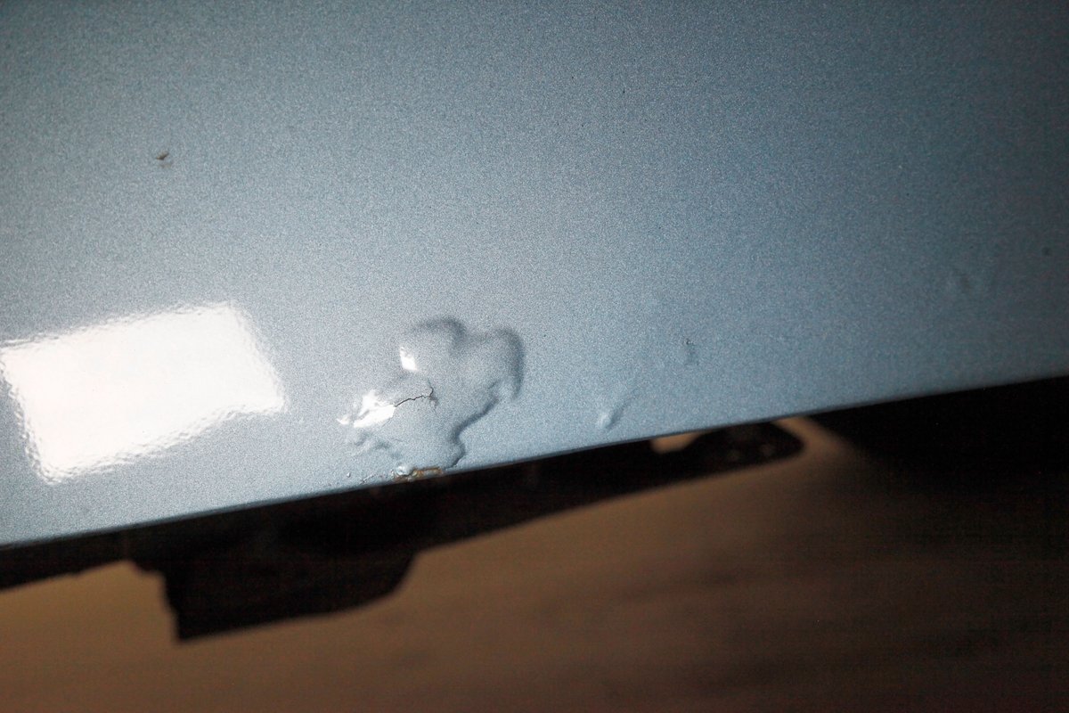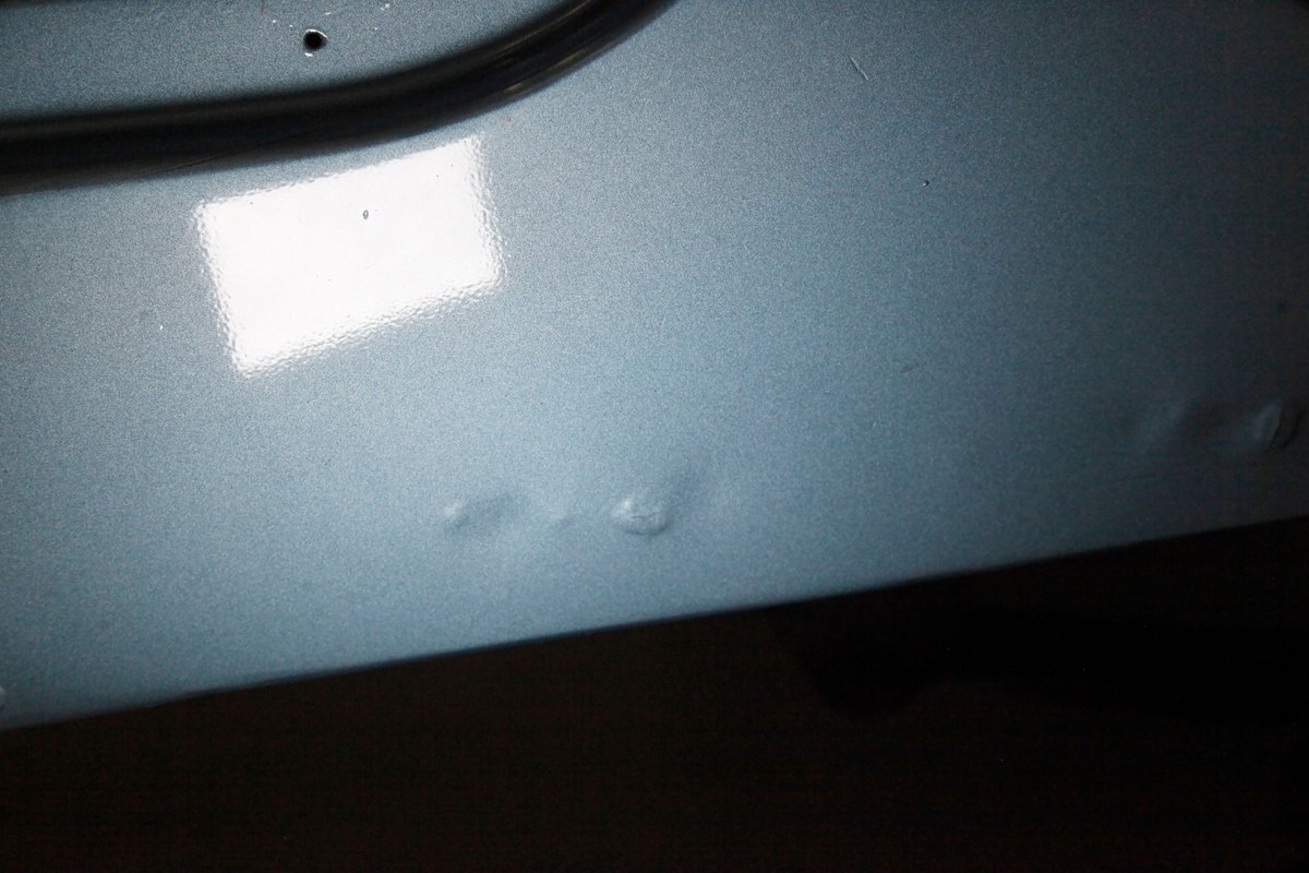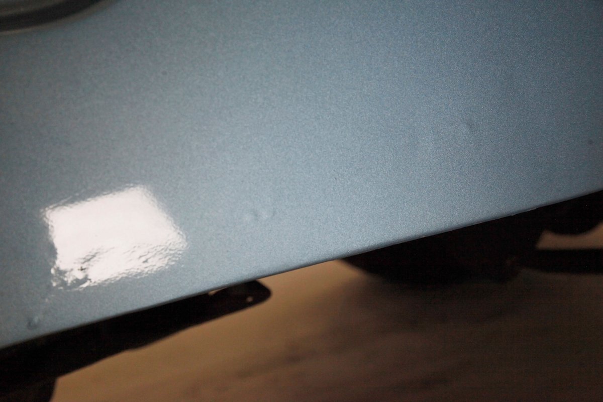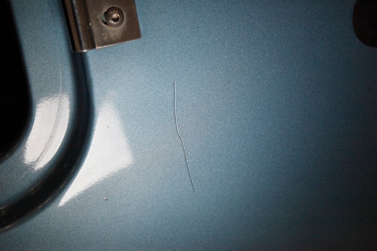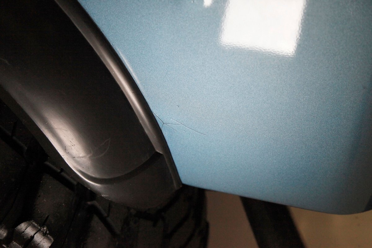 All straight and turn, all tricked out with extra LED lighting, a tubular off road front bumper, a newer Bikini top, 15-inch glossy black wheels and Goodyear tires in the form of 35x12.5R15LT mudders including the BF Goodrich spare. The light blue painted steel is all good with just a few areas of bubbling, prior body repairs, and just a few war scars, but they are minor. A black bikini top is on to protect you and your passengers from the elements, although without doors you may get a little wet or even sunburnt. Black lightweight plastic fenders are bolted onto the blue body and keep the mudslinging to a minimum and in back, a hitch mount is on the tubular bumper with the full size spare mounted above on a swing out mount allowing access to the small rear storage area. We are hearing the call of the wild! Wahoooo wahoooo.... wahoooo whaooo whaooo! (Think Mandalorian)