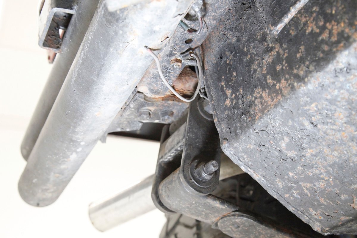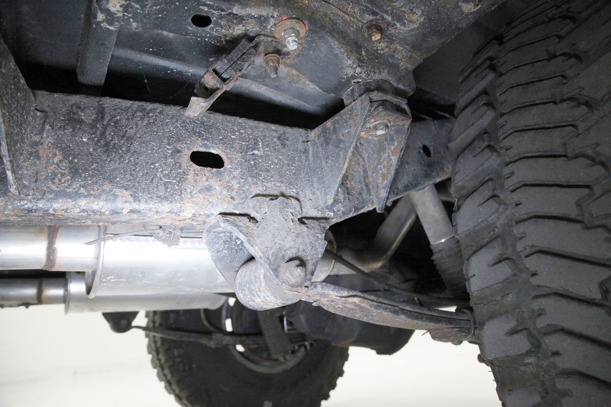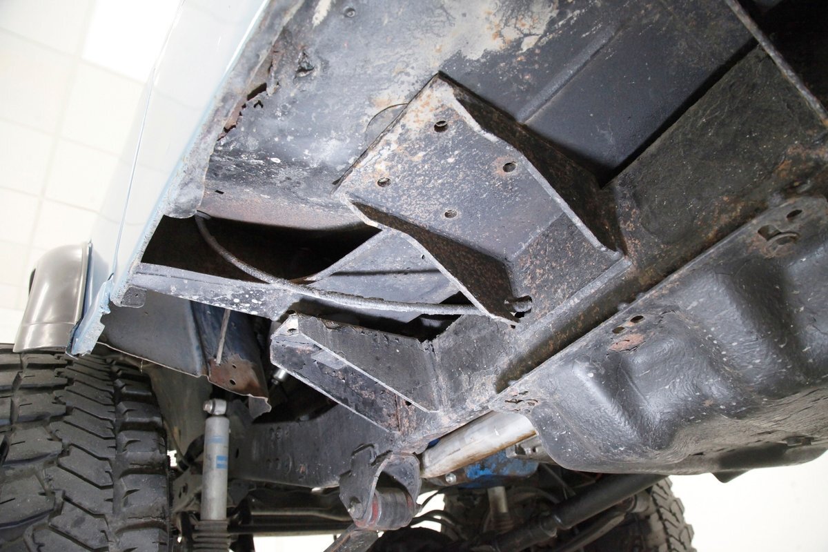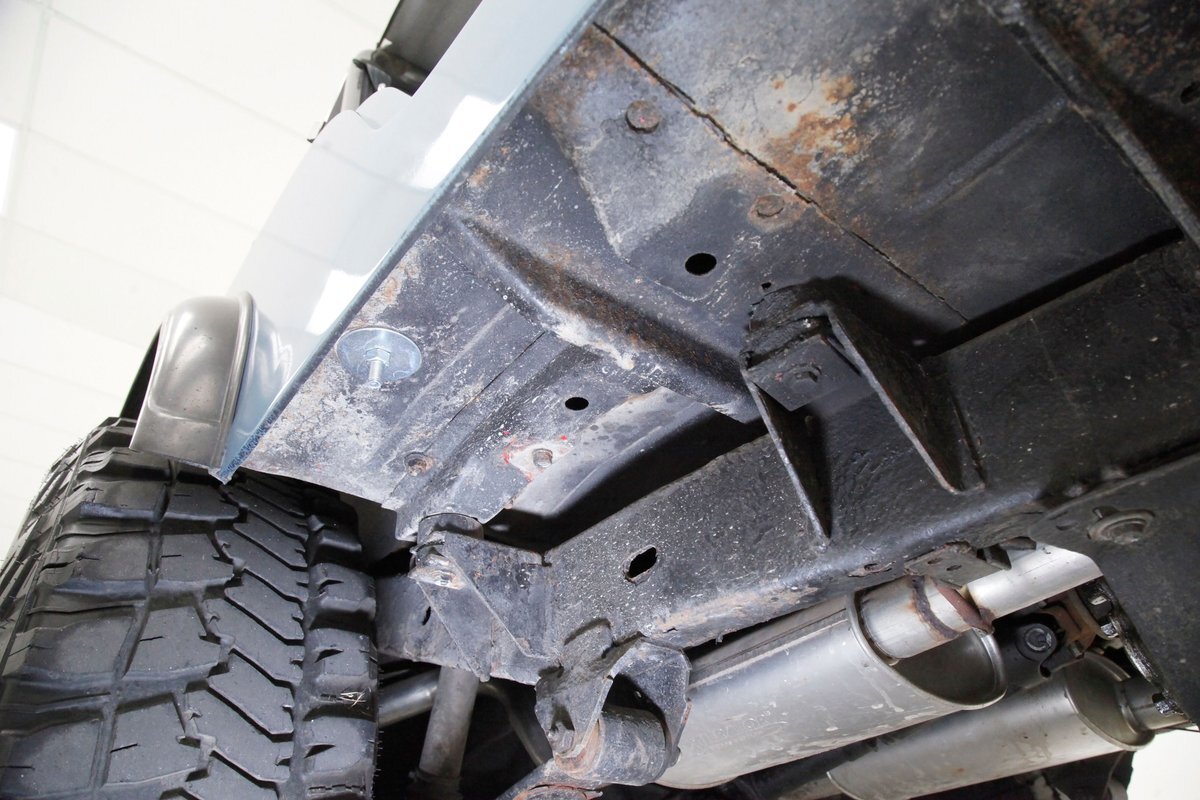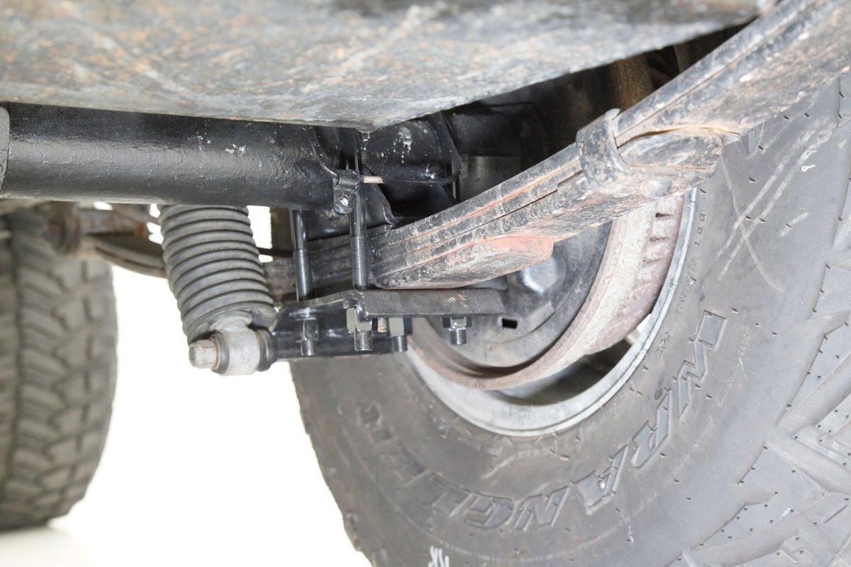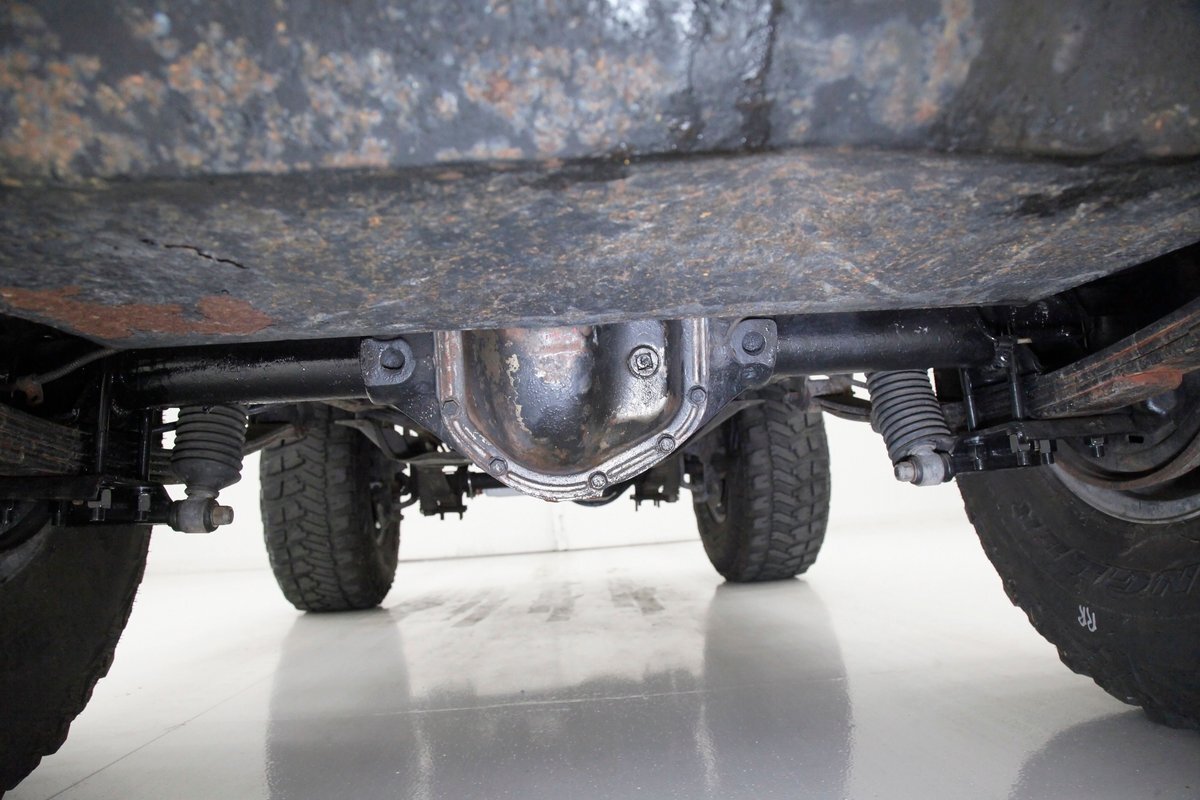 Black paint everywhere for the floor pans with some slight surface rust and some invasive rust to note in the left rear wheelhouse. 4-wheel leaf spring suspension has been treated to new rear springs and shackles with a slight lift installed along with a small body lift provide ample ground clearance for you off road adventures. Disc brakes are reserved for the front and drums are in the rear. Dual exhaust, sans catalytic converters, snakes its way rearward and is equipped with stock replacement style mufflers.