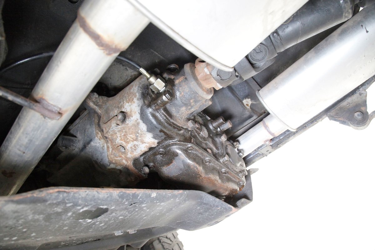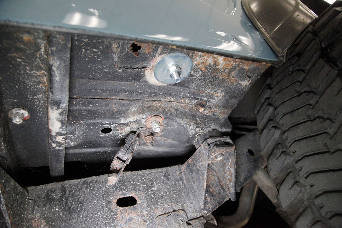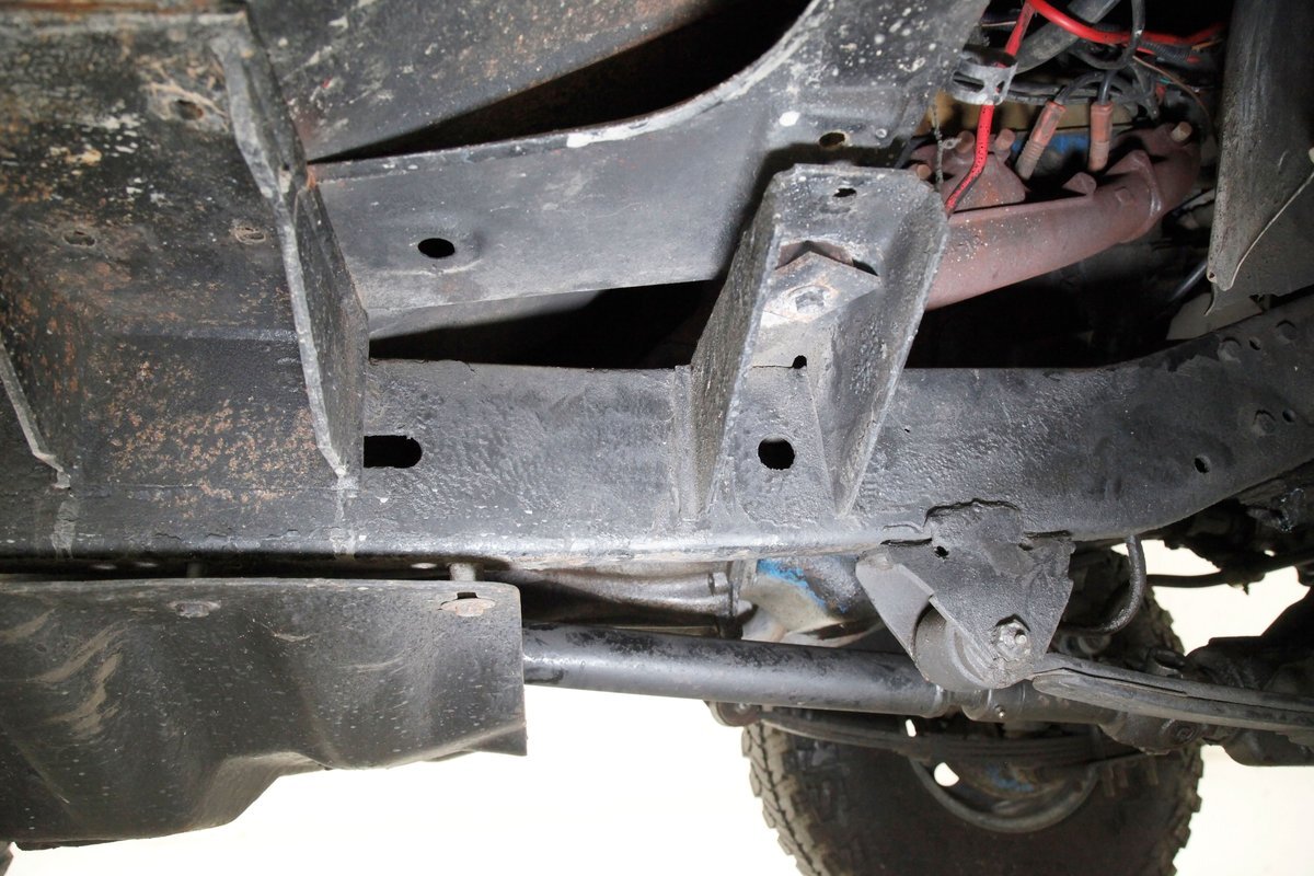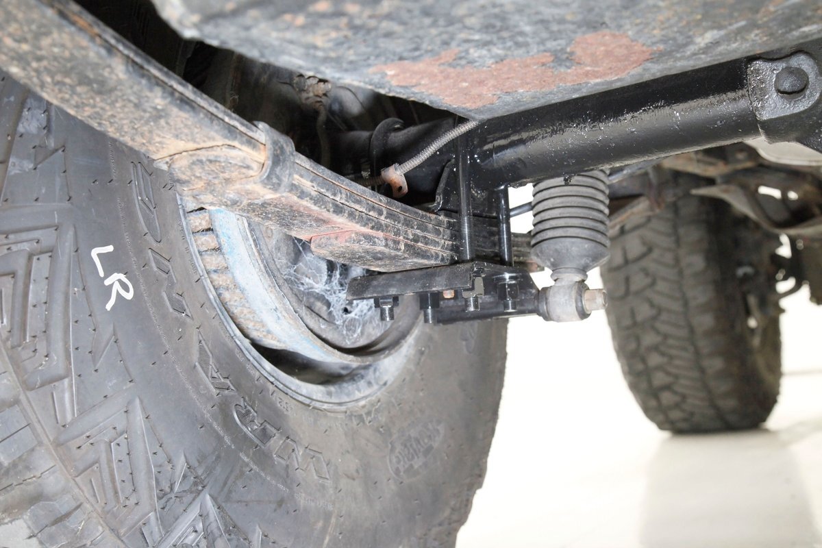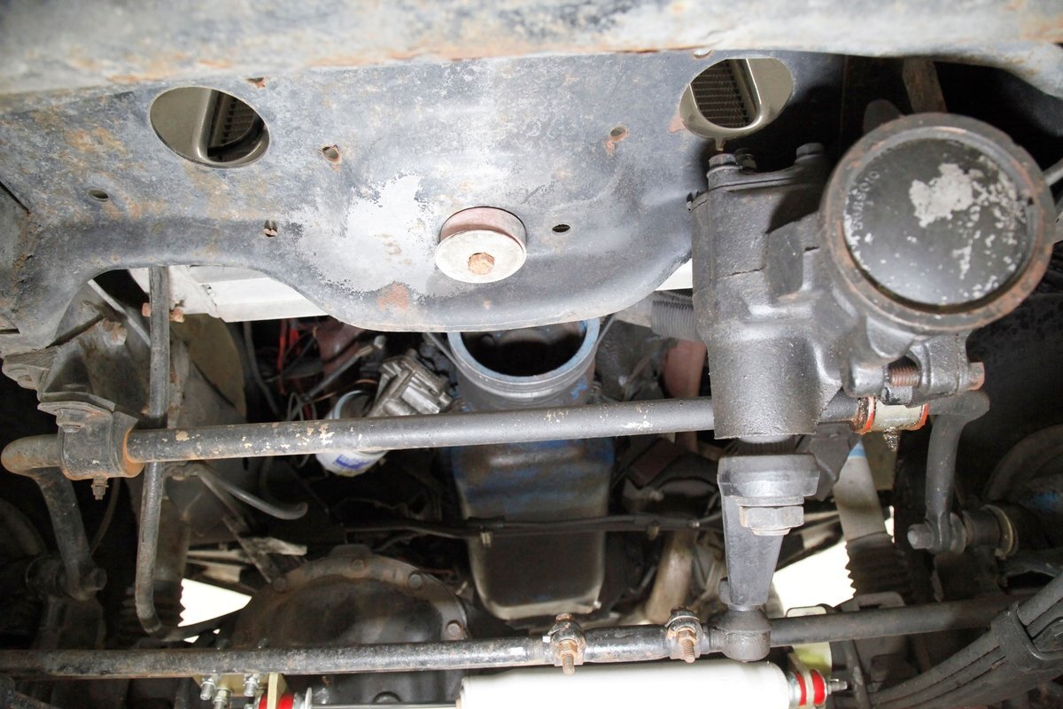 Black paint everywhere for the floor pans with some slight surface rust and some invasive rust to note in the left rear wheelhouse. 4-wheel leaf spring suspension has been treated to new rear springs and shackles with a slight lift installed along with a small body lift provide ample ground clearance for you off road adventures. Disc brakes are reserved for the front and drums are in the rear. Dual exhaust, sans catalytic converters, snakes its way rearward and is equipped with stock replacement style mufflers.