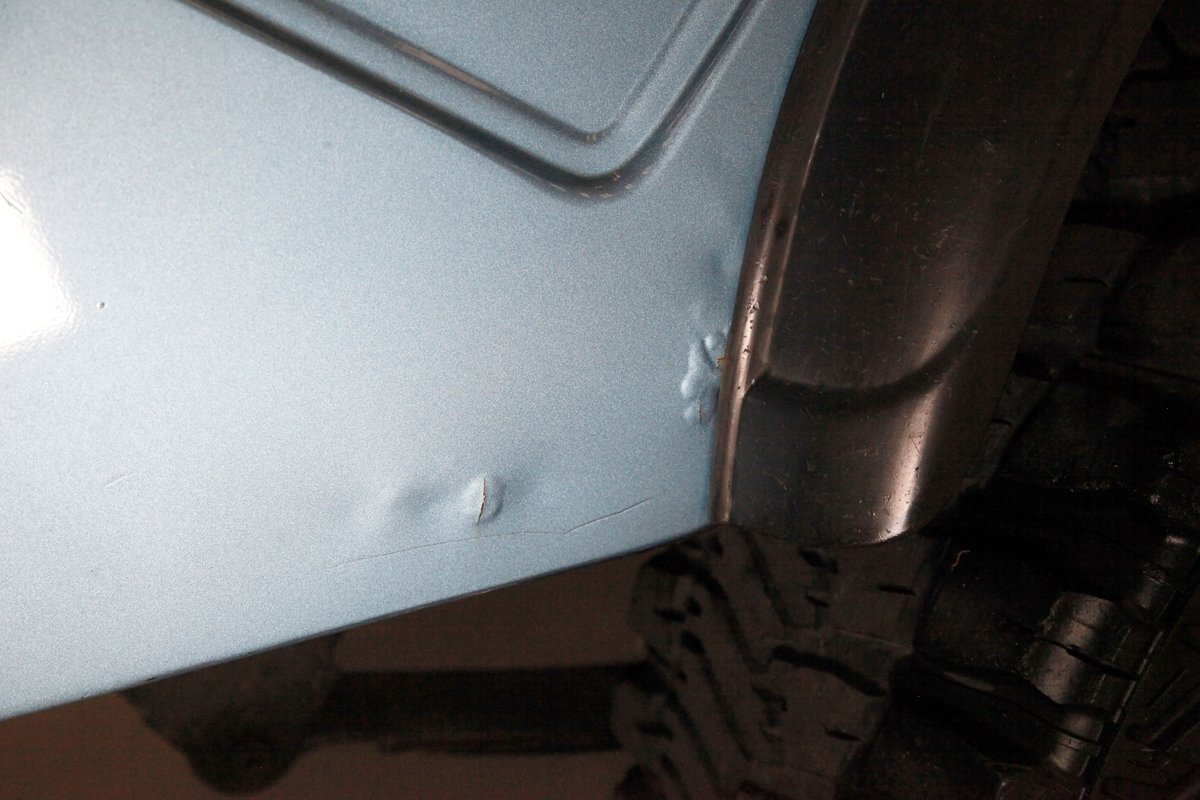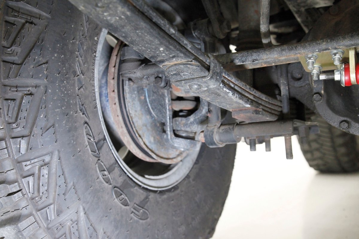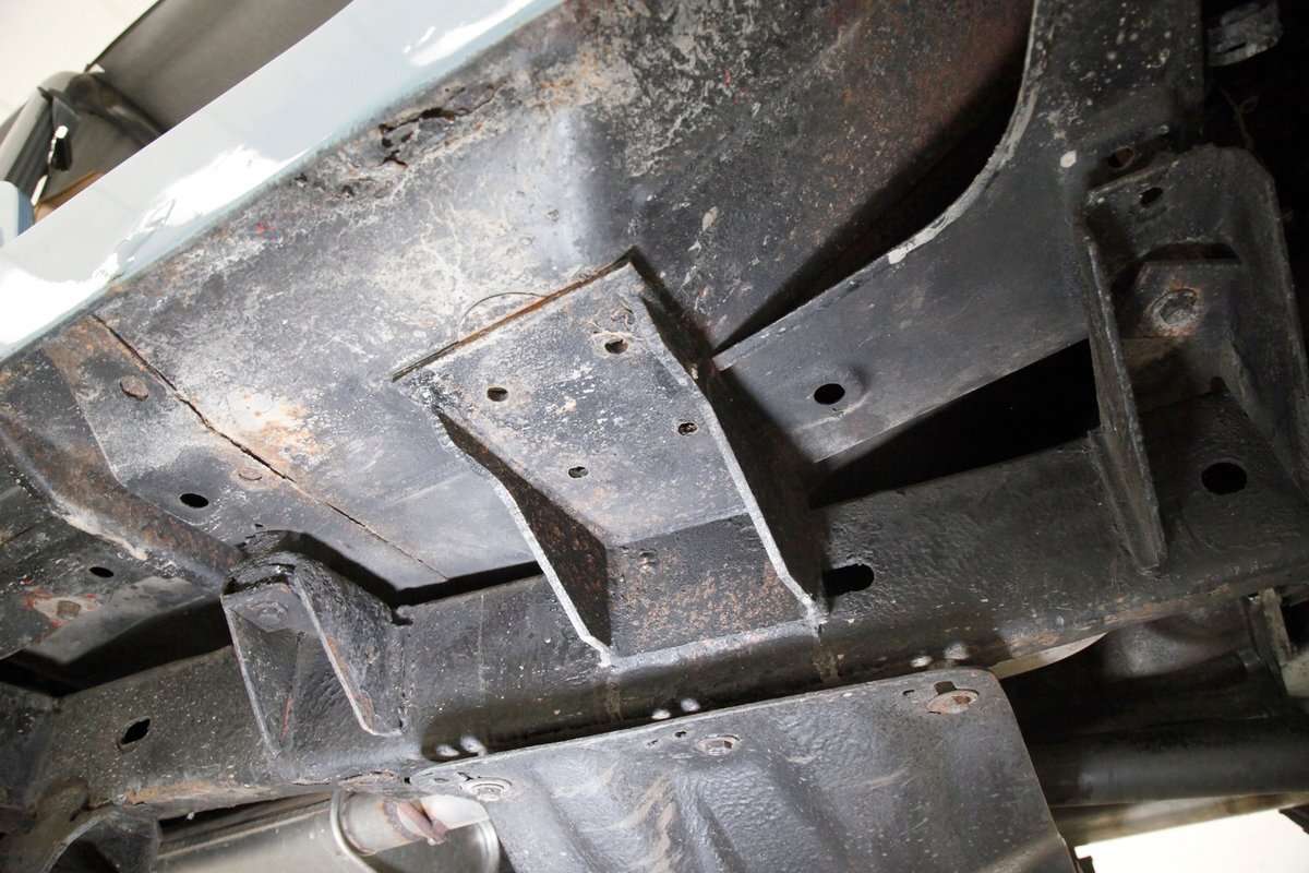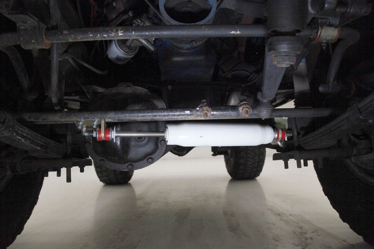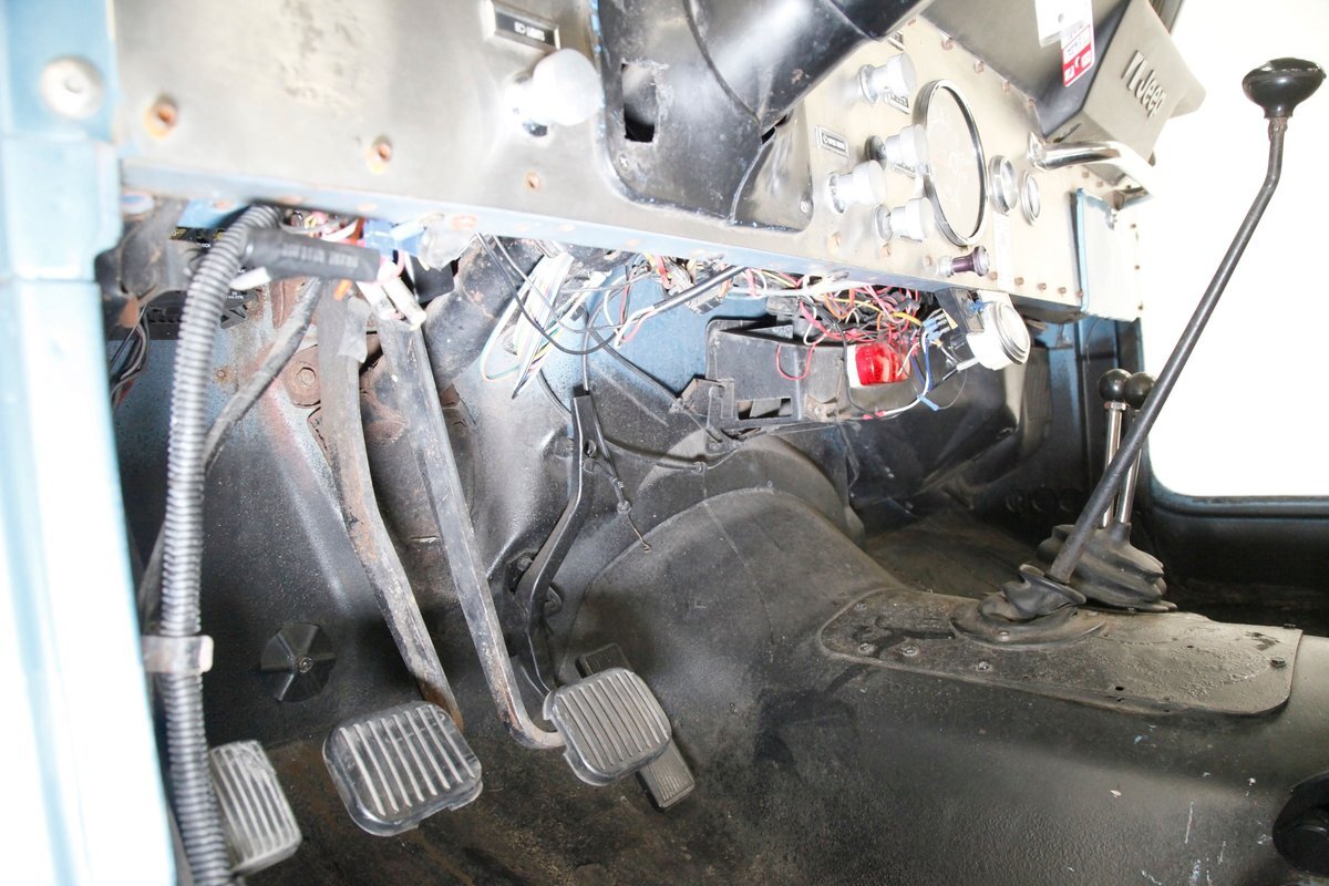 Black paint everywhere for the floor pans with some slight surface rust and some invasive rust to note in the left rear wheelhouse. 4-wheel leaf spring suspension has been treated to new rear springs and shackles with a slight lift installed along with a small body lift provide ample ground clearance for you off road adventures. Disc brakes are reserved for the front and drums are in the rear. Dual exhaust, sans catalytic converters, snakes its way rearward and is equipped with stock replacement style mufflers.