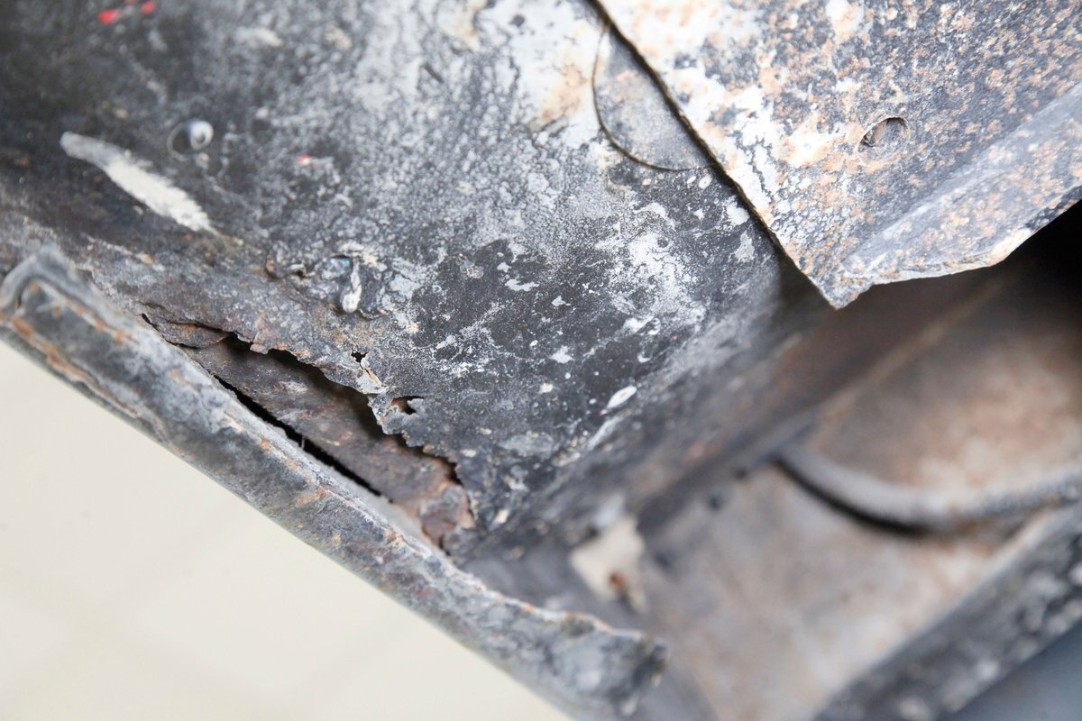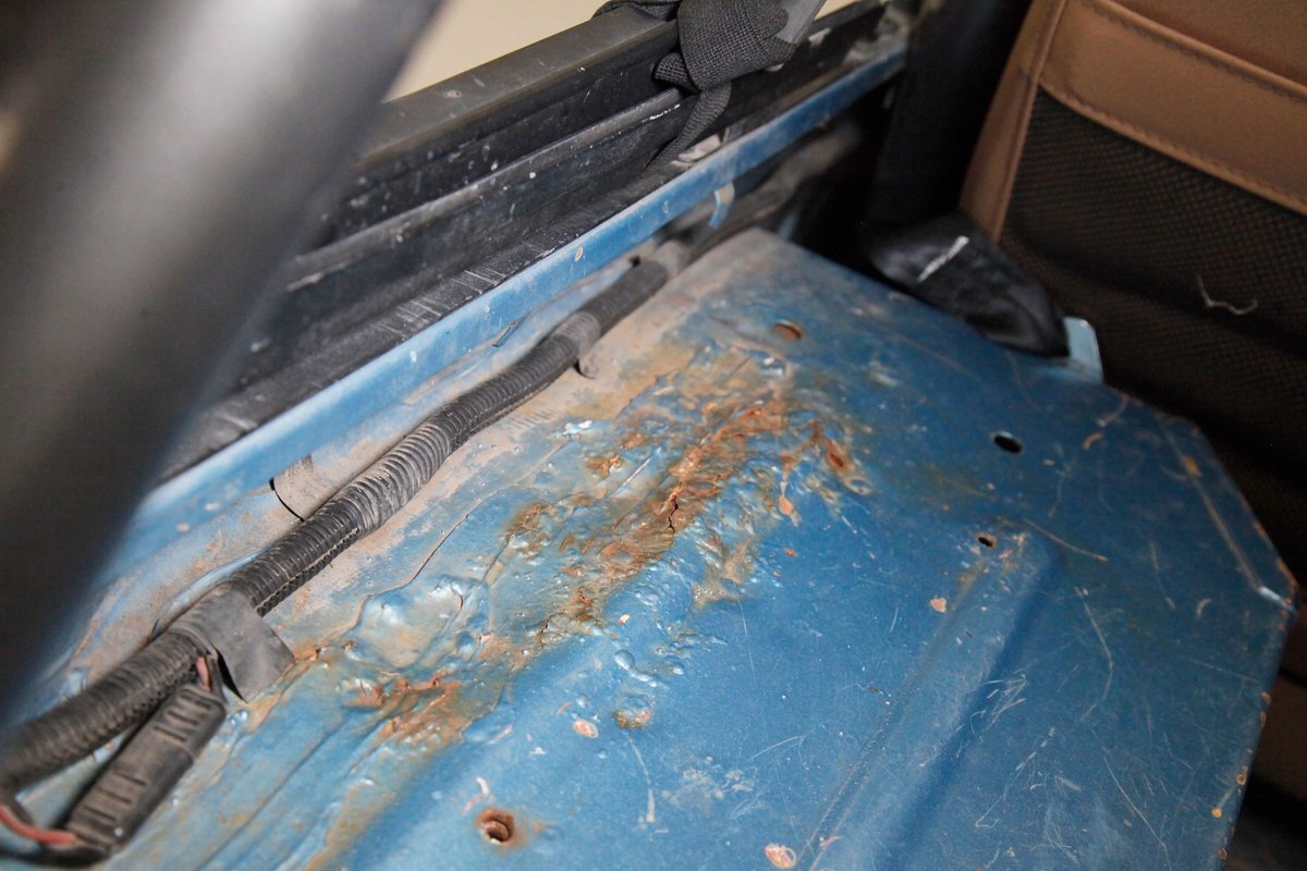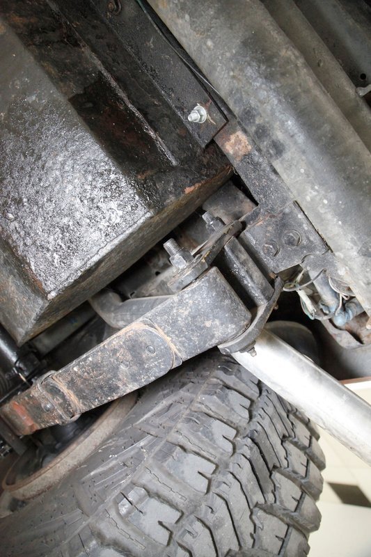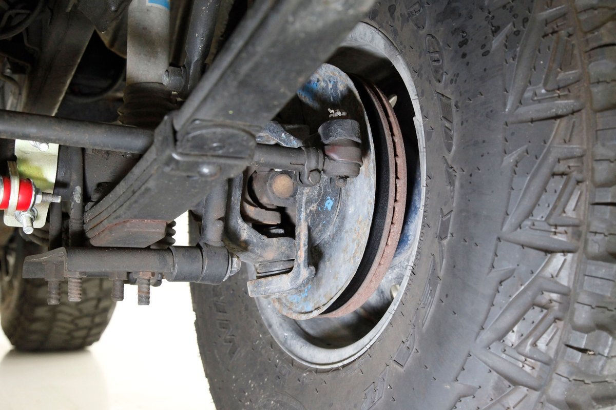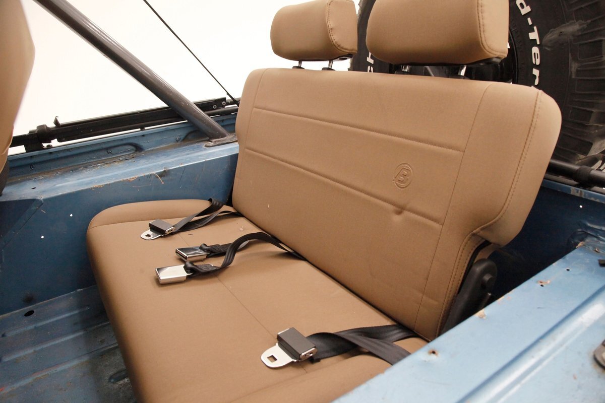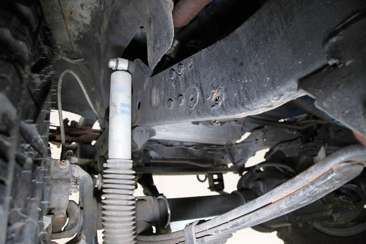 Black paint everywhere for the floor pans with some slight surface rust and some invasive rust to note in the left rear wheelhouse. 4-wheel leaf spring suspension has been treated to new rear springs and shackles with a slight lift installed along with a small body lift provide ample ground clearance for you off road adventures. Disc brakes are reserved for the front and drums are in the rear. Dual exhaust, sans catalytic converters, snakes its way rearward and is equipped with stock replacement style mufflers.