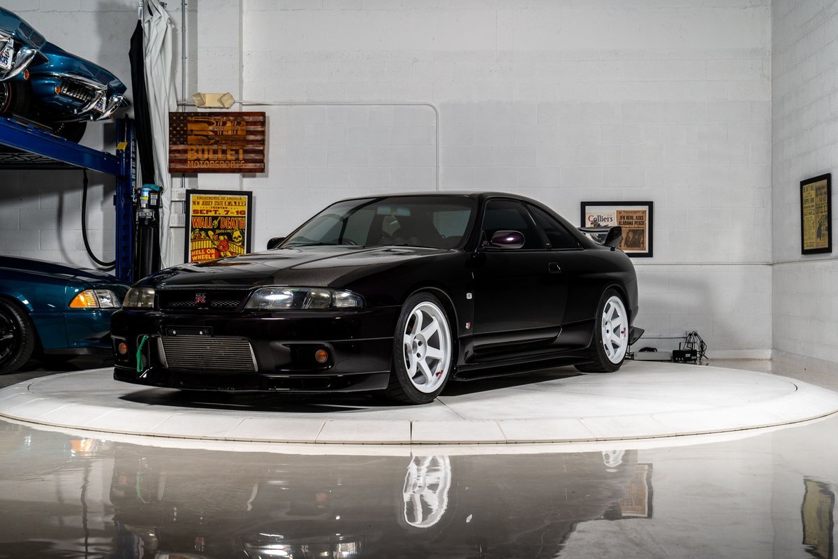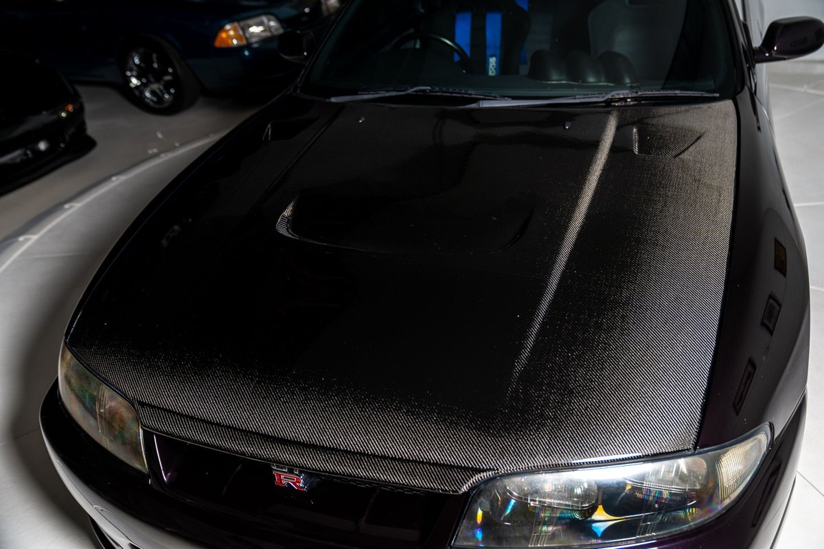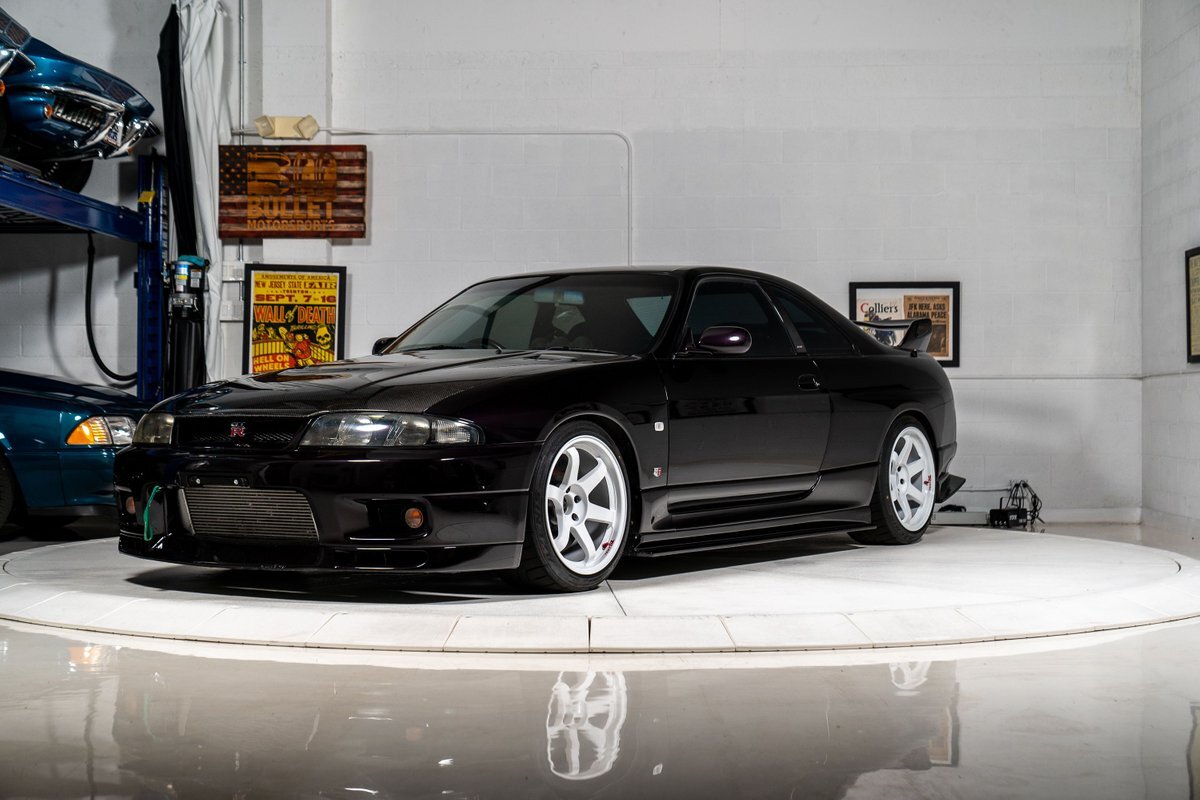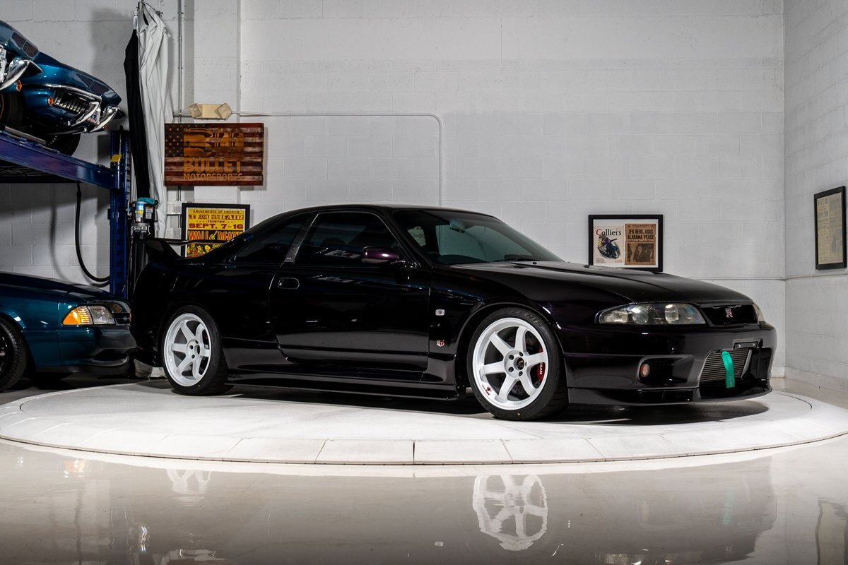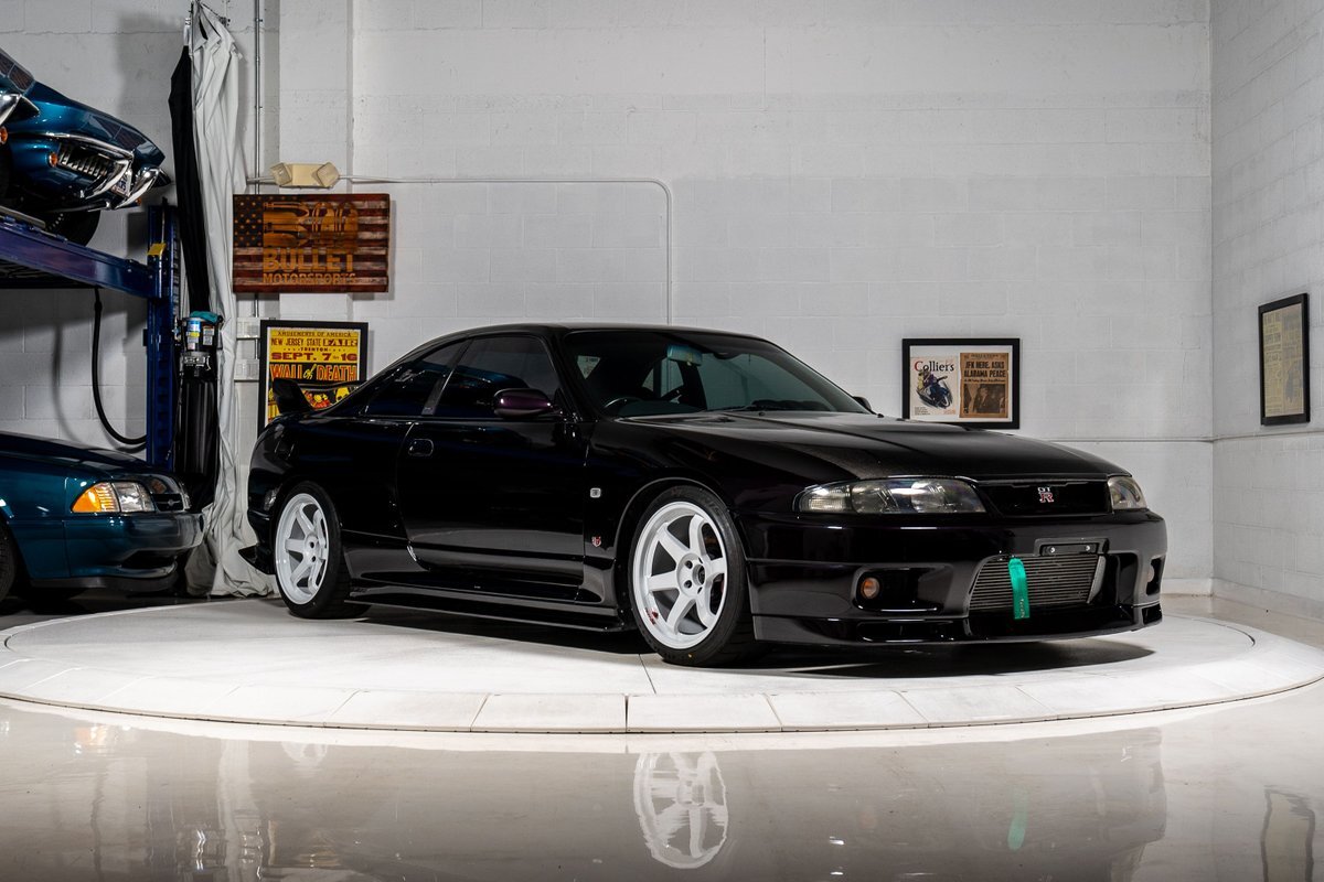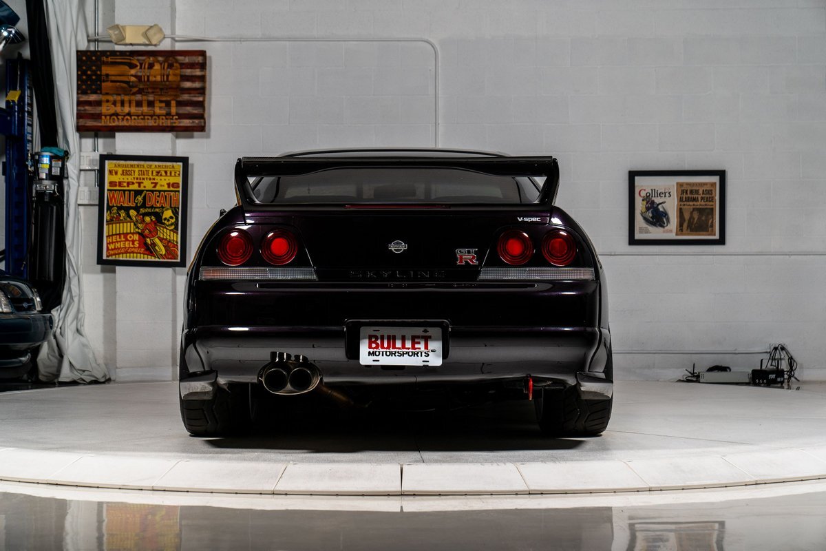 This 1995 Nissan Skyline GT-R is a V-Spec example has been modified with a rebuilt RB26DETT inline-six that was fitted with a Brian Crower 2.85-liter stroker kit and converted to a single turbocharger. A Tomei oil pump, CP pistons, and Supertech valve components were installed at this time, and supporting modifications include a Haltech ECU and a Hypertune intake manifold and fuel rail with 1,300cc injectors. The car is finished in Midnight Purple over black and gray cloth upholstery, and power is sent to all four wheels through a five-speed manual transmission, an ATTESA E-TS all-wheel-drive system, and an active limited-slip rear differential. Additional equipment includes 18" TE37 Wheels in Bright White, a 3" exhaust system, front and rear shock tower braces, a carbon fiber hood, Hasemi Sport body kit, a rear wing, a Bride driver's seat with four-point harnesses, cold air conditioning, and an Alpine CD stereo linked with a subwoofer. Modifications will be listed in gallery and below.