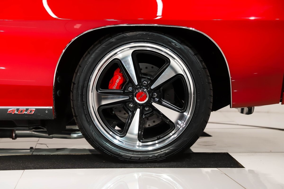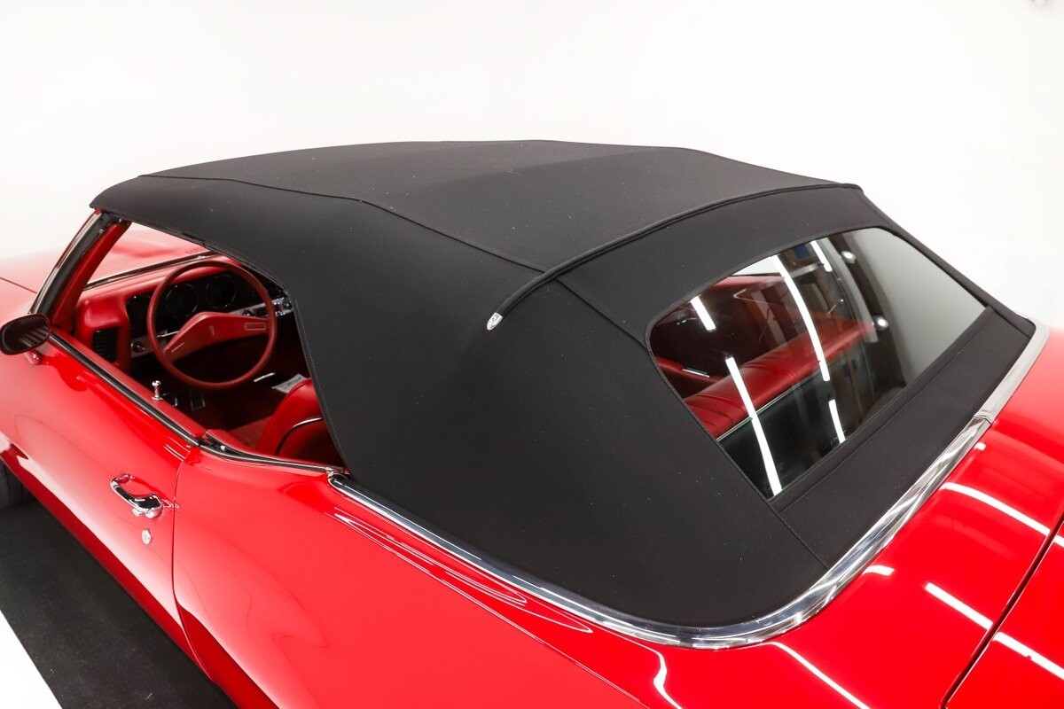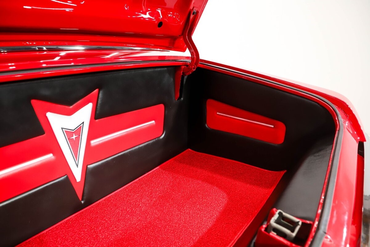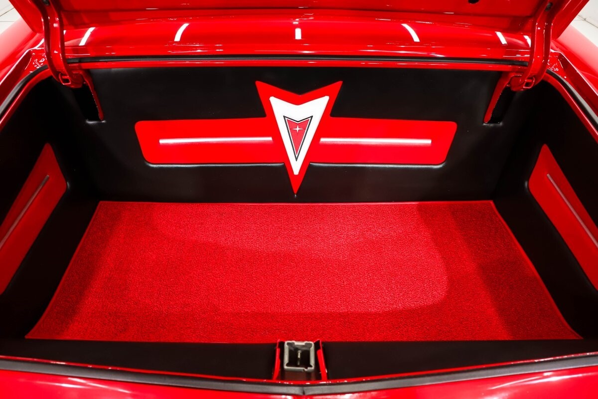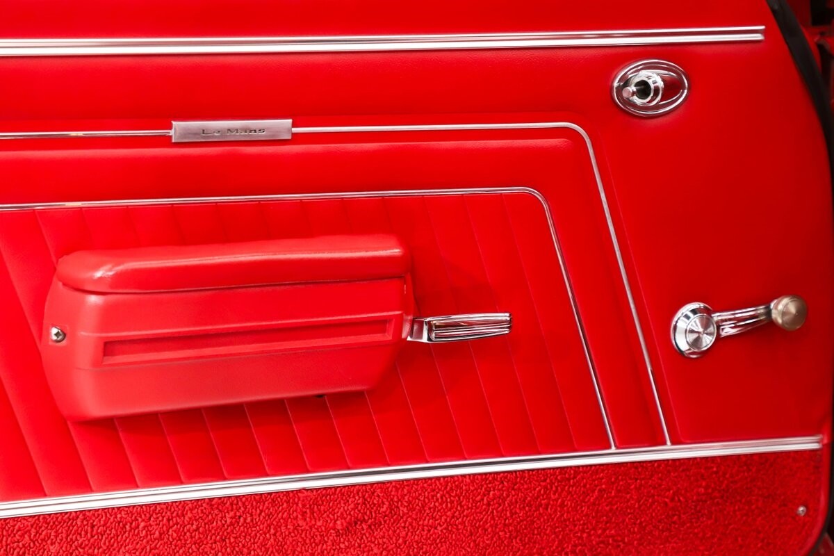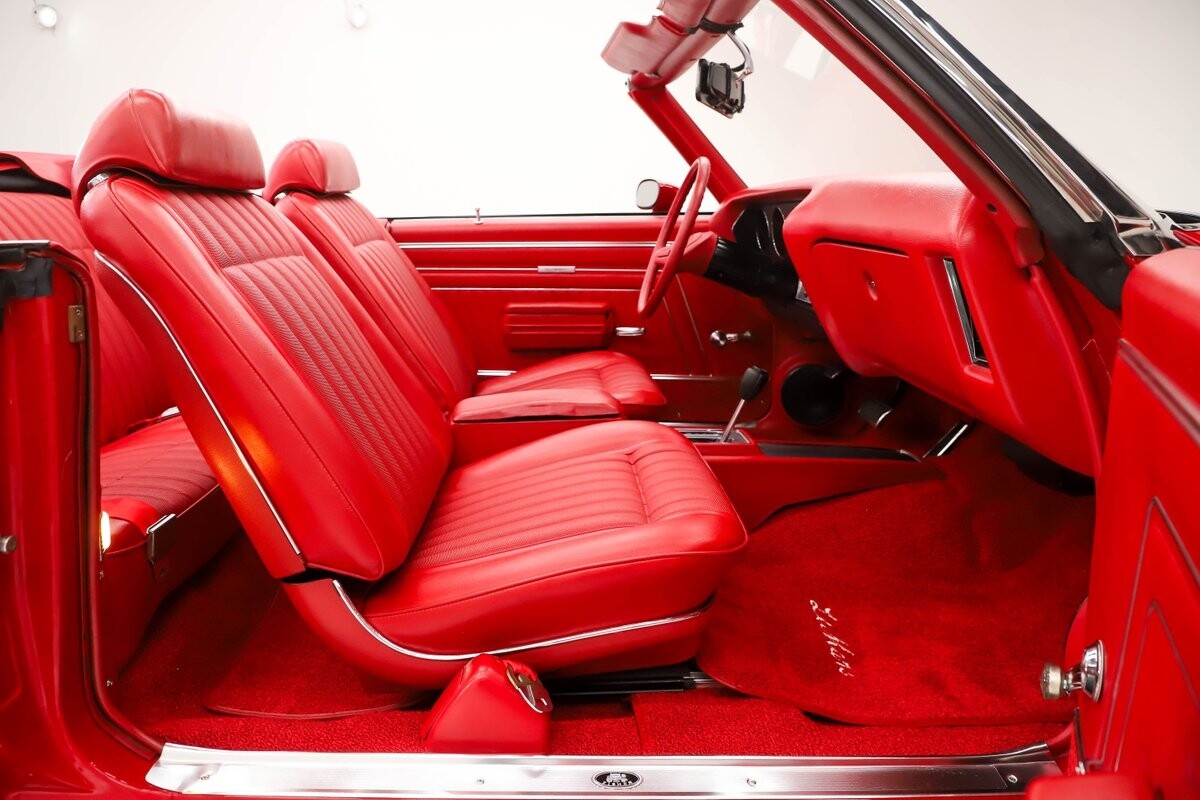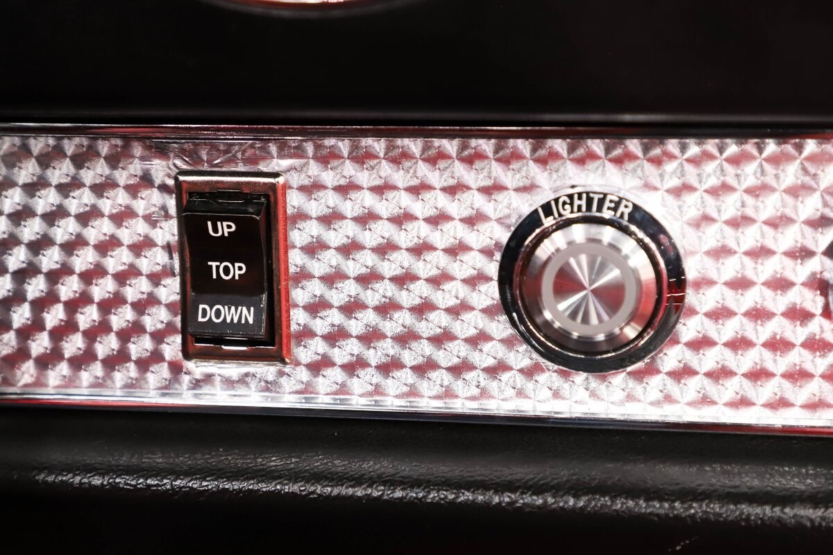 EXTERIOR: Incredible body and paint, better than new! Laser straight with body gaps like a Mercedes. Fitted with a GTO scooped hood and dual sport mirrors. Power top upgraded with a rich black cloth and glass window. The framework was completely prepped and painted. All the weatherstrips and seals were replaced. All new chrome and trim. The windshield was replaced. Upgraded with bright HID headlights. Sitting proud on a new modern version of the rally II wheels. They are billet 18x8s in front, 18x9s in back and are wrapped in performance tires.