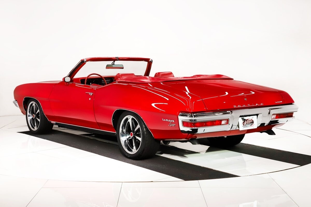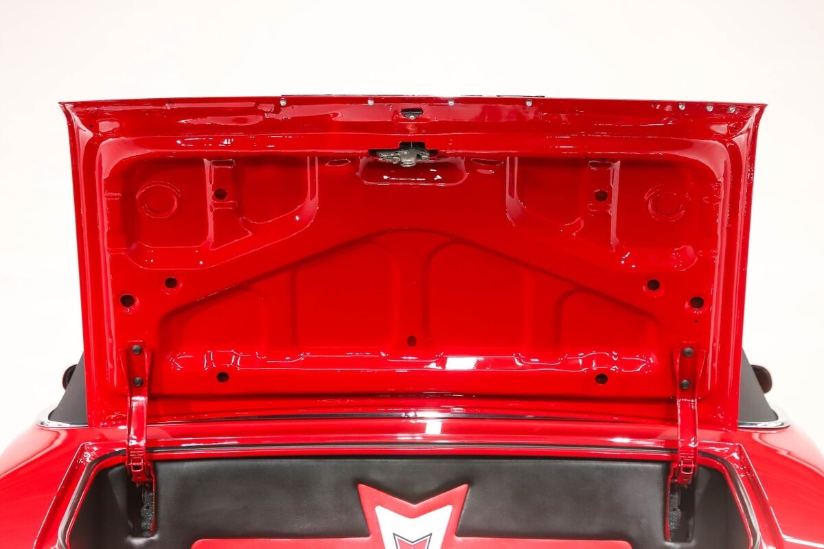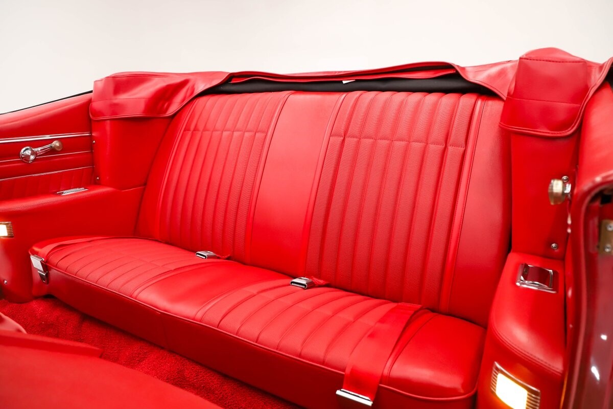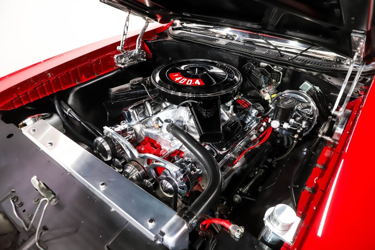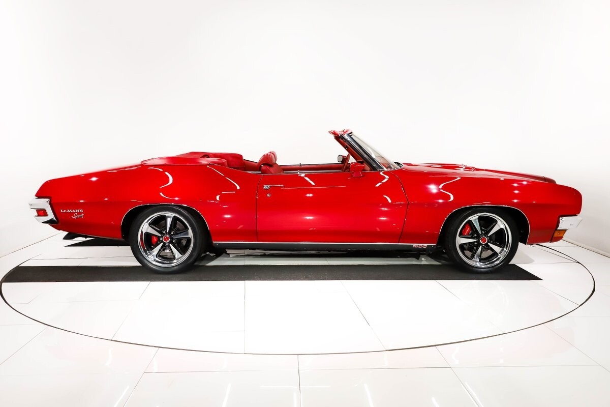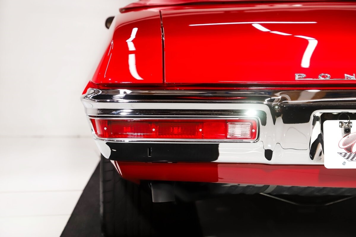 EXTERIOR: Incredible body and paint, better than new! Laser straight with body gaps like a Mercedes. Fitted with a GTO scooped hood and dual sport mirrors. Power top upgraded with a rich black cloth and glass window. The framework was completely prepped and painted. All the weatherstrips and seals were replaced. All new chrome and trim. The windshield was replaced. Upgraded with bright HID headlights. Sitting proud on a new modern version of the rally II wheels. They are billet 18x8s in front, 18x9s in back and are wrapped in performance tires.
