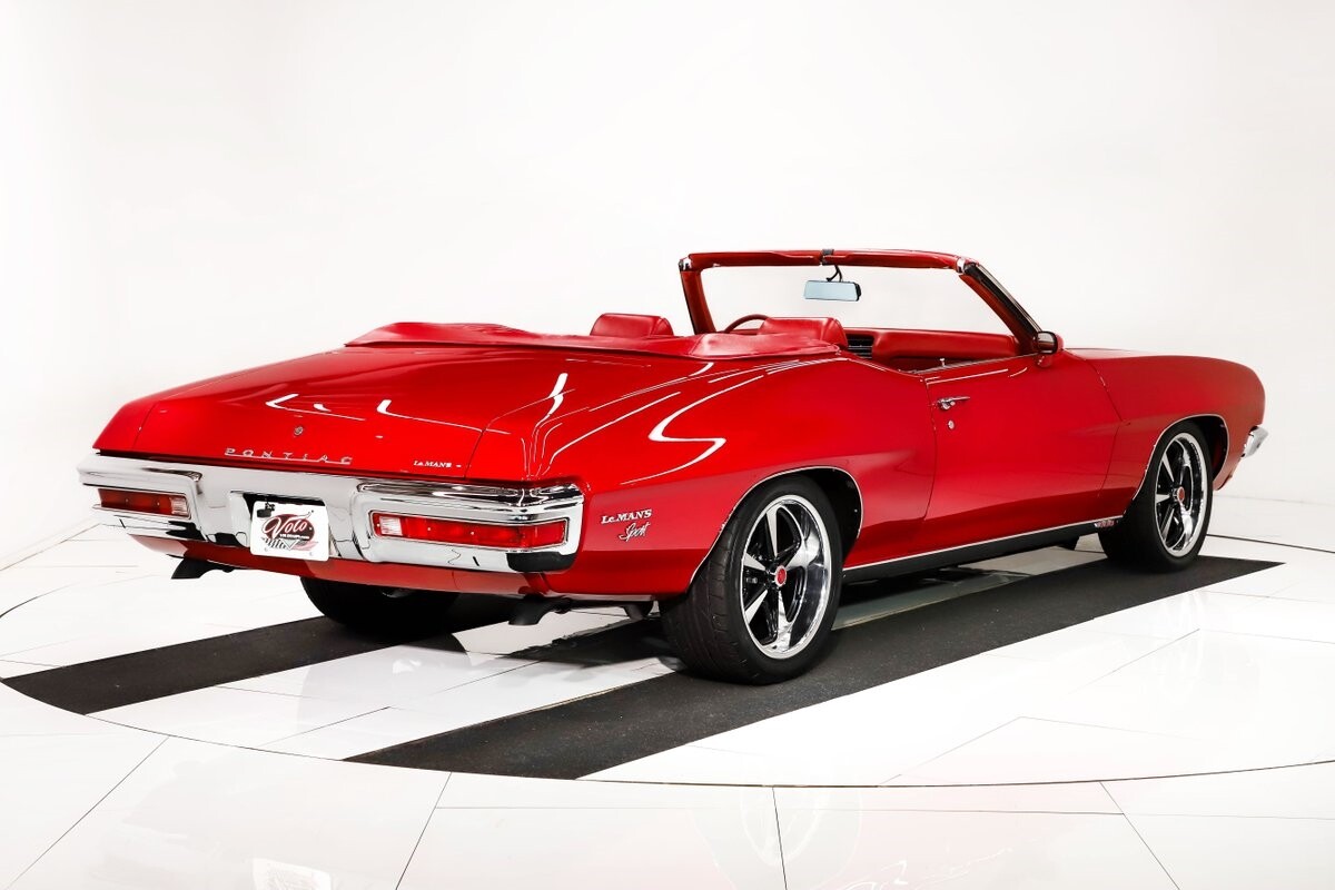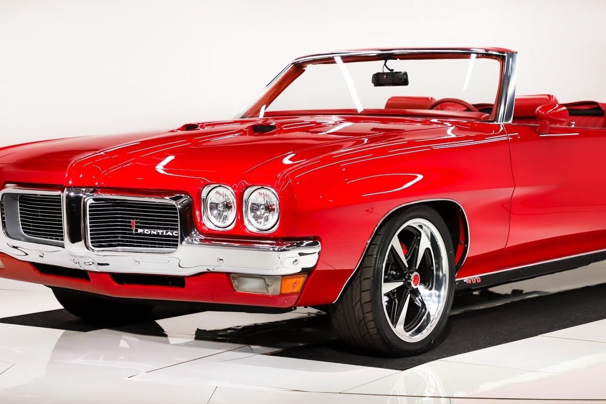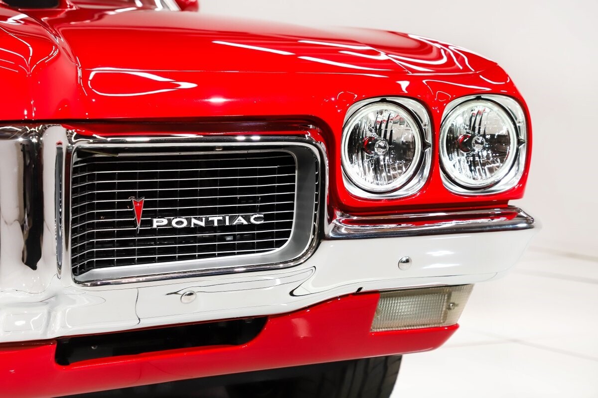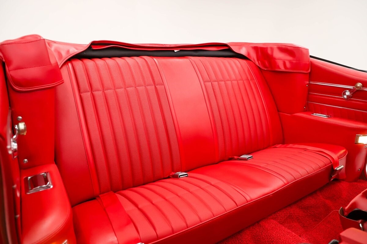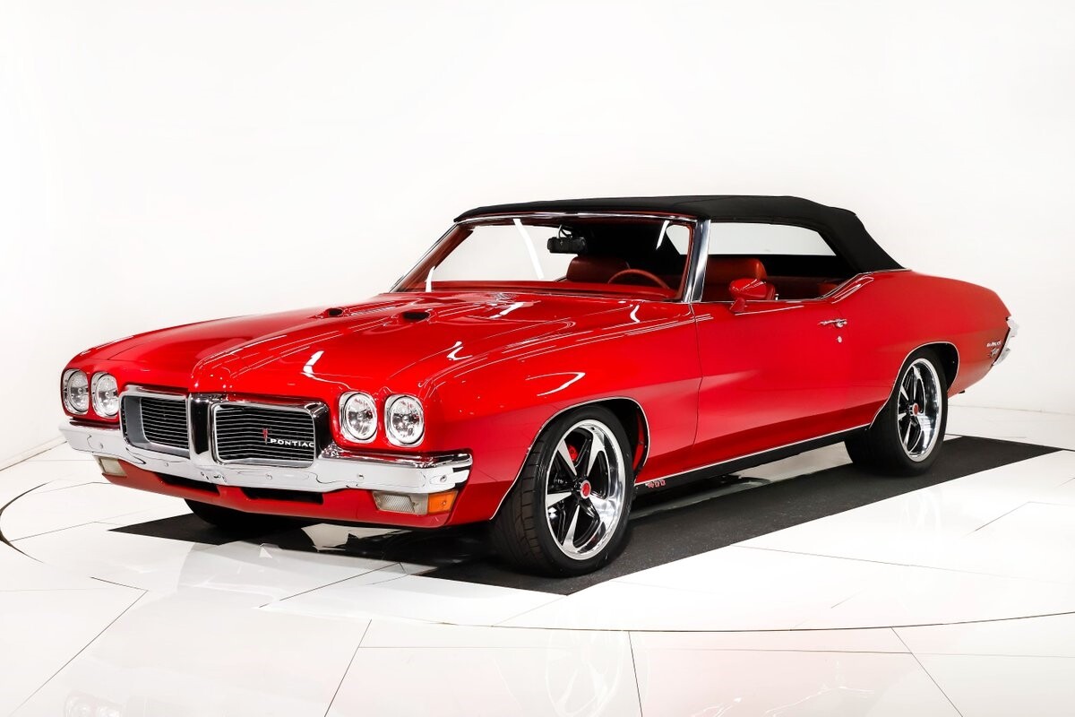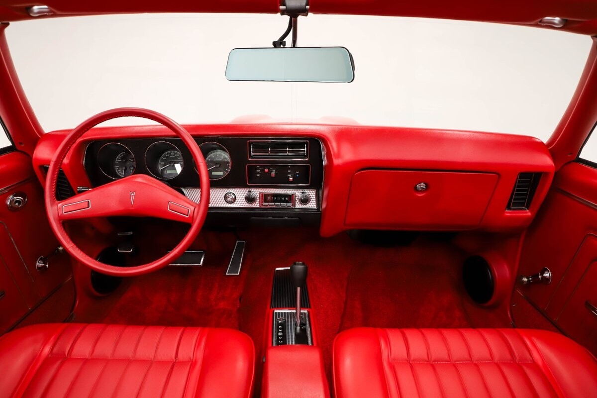 EXTERIOR: Incredible body and paint, better than new! Laser straight with body gaps like a Mercedes. Fitted with a GTO scooped hood and dual sport mirrors. Power top upgraded with a rich black cloth and glass window. The framework was completely prepped and painted. All the weatherstrips and seals were replaced. All new chrome and trim. The windshield was replaced. Upgraded with bright HID headlights. Sitting proud on a new modern version of the rally II wheels. They are billet 18x8s in front, 18x9s in back and are wrapped in performance tires.