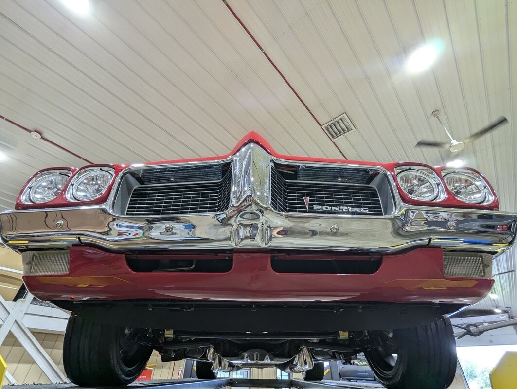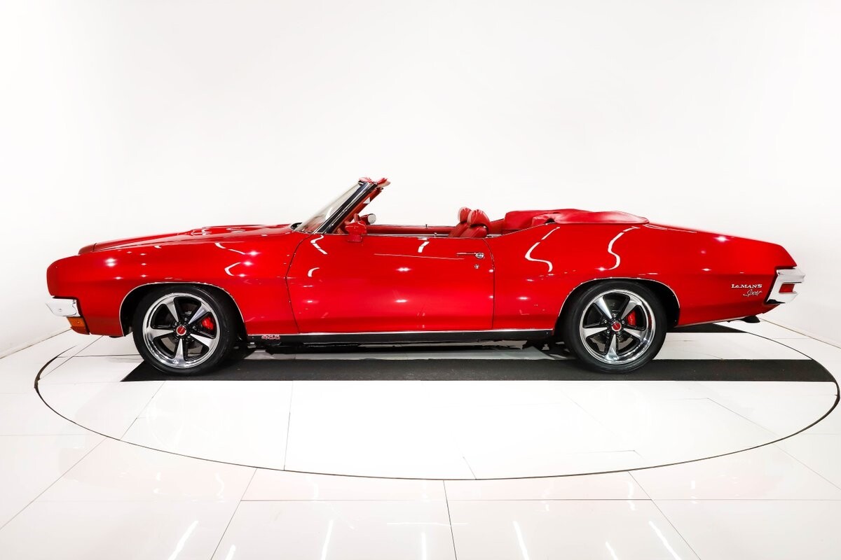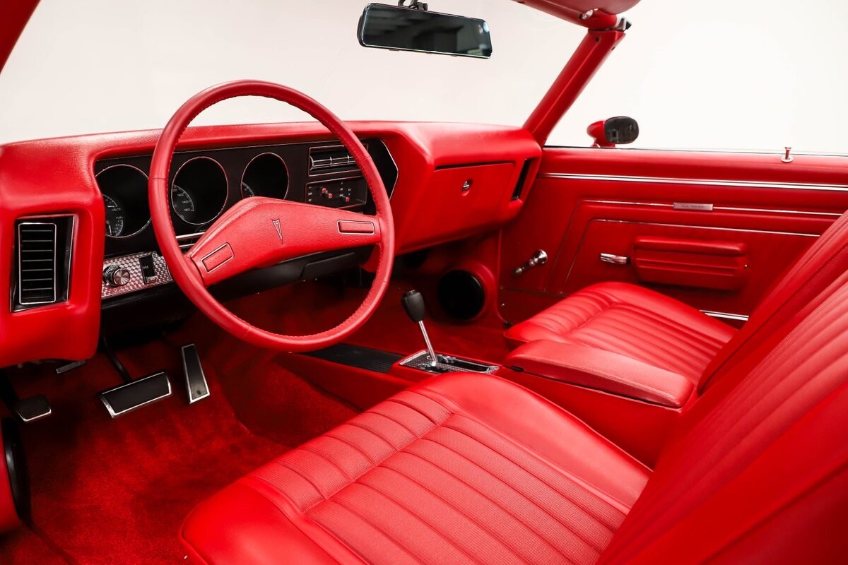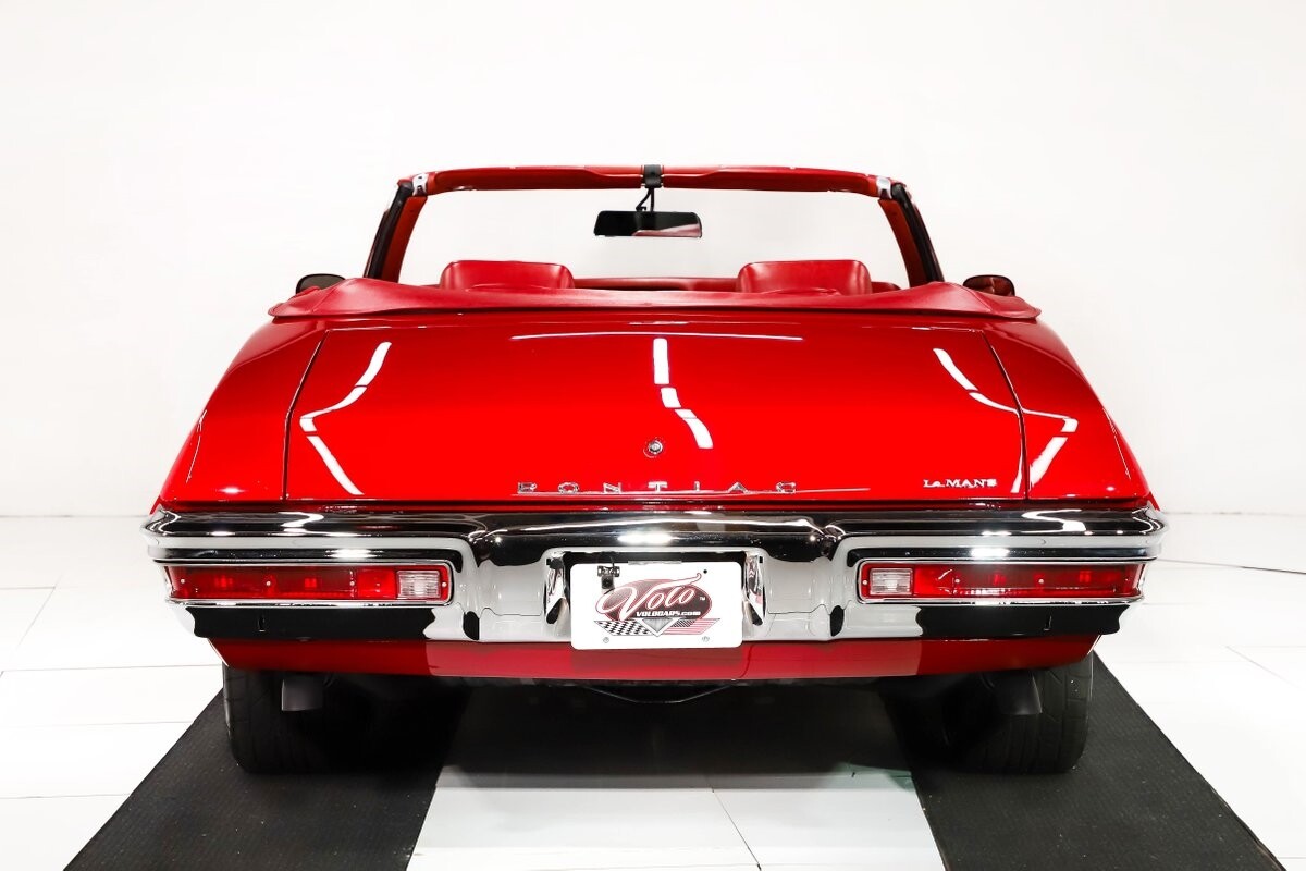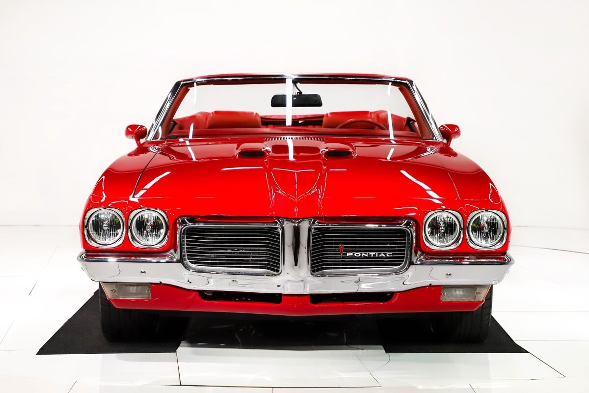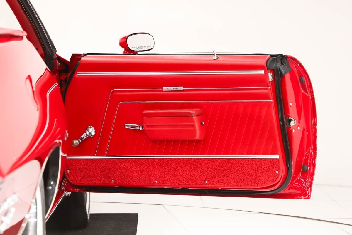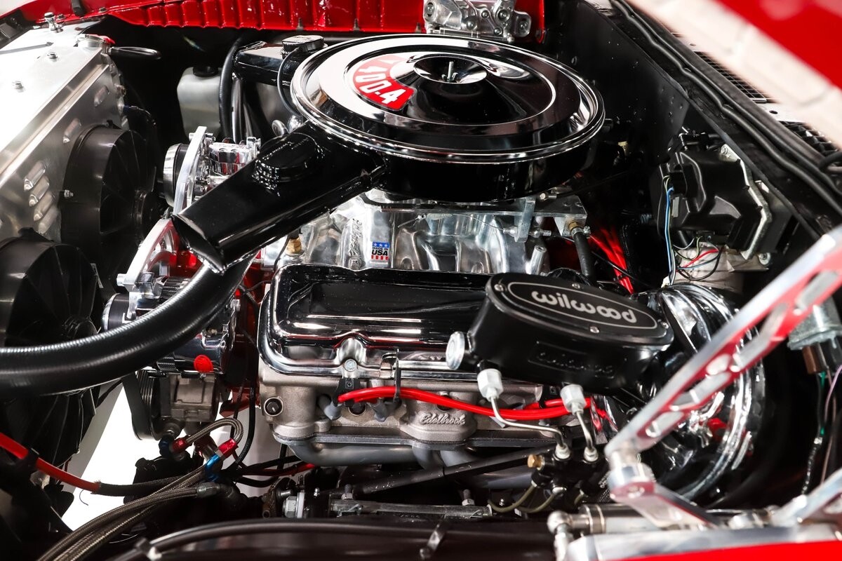 EXTERIOR: Incredible body and paint, better than new! Laser straight with body gaps like a Mercedes. Fitted with a GTO scooped hood and dual sport mirrors. Power top upgraded with a rich black cloth and glass window. The framework was completely prepped and painted. All the weatherstrips and seals were replaced. All new chrome and trim. The windshield was replaced. Upgraded with bright HID headlights. Sitting proud on a new modern version of the rally II wheels. They are billet 18x8s in front, 18x9s in back and are wrapped in performance tires.