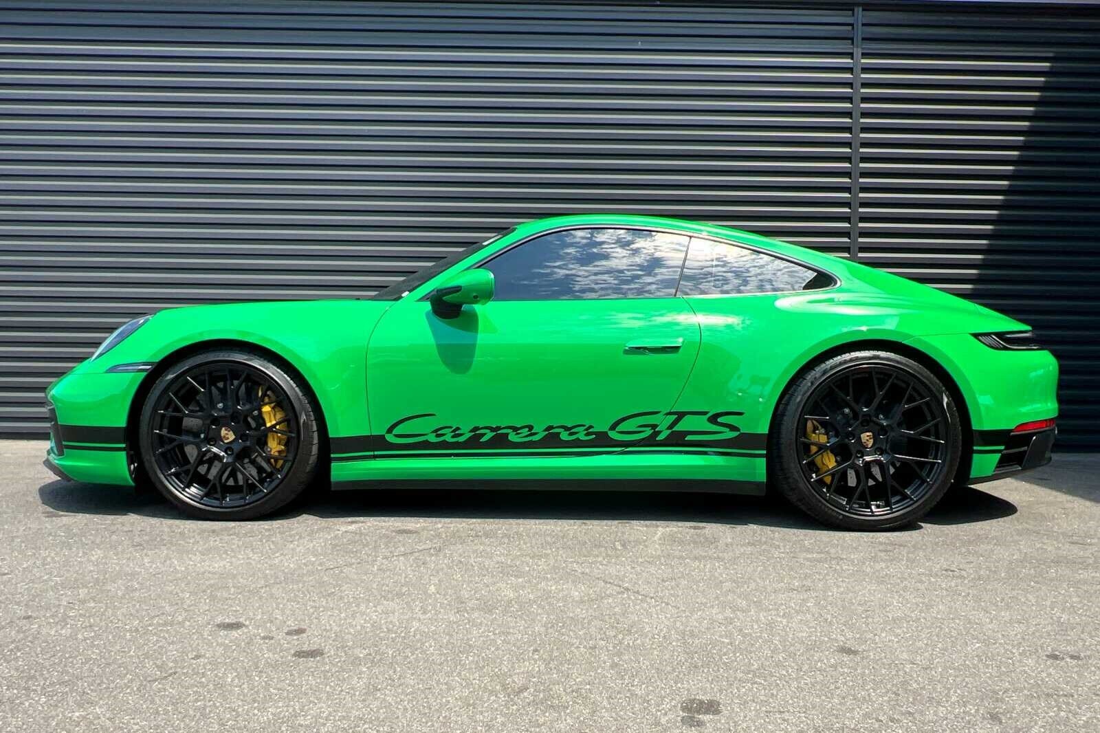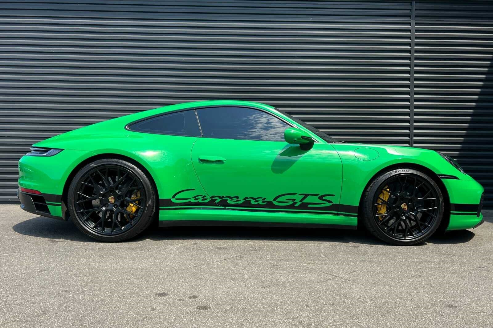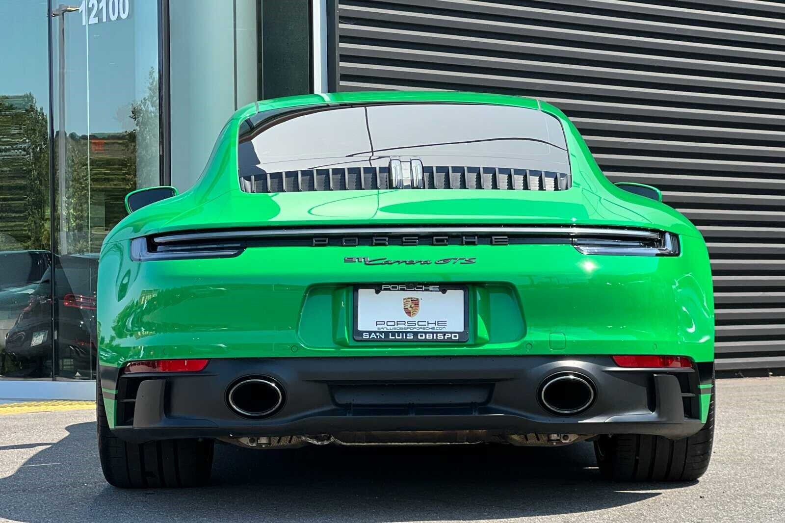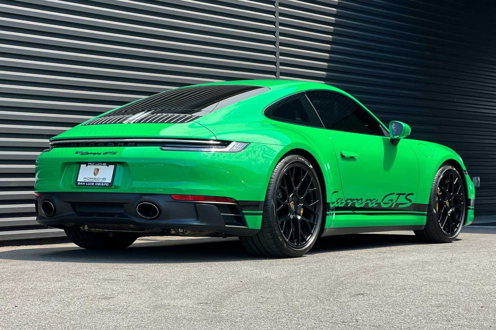 This Porsche San Luis Obispo 2022 Python Green Porsche 911 Carrera GTS is well equipped and includes these features and benefits: 18-Way Adaptive Sport Seats Plus w/Memory Package, Premium Package (Ambient Lighting, BOSE Surround Sound System, Lane Change Assist (LCA), Power Folding Exterior Mirrors, and Surround View), Storage Package, 23.7 Gal. Extended Range Fuel Tank, Porsche Ceramic Composite Brakes (PCCB) in Yellow, Power Steering Plus, Rear Axle Steering, Wheels: 20 Front/21 Rear RS Spyder Design, 4-Wheel Disc Brakes, 8 Speakers, ABS brakes, Adaptive suspension, Air Conditioning, Alloy wheels, Auto-dimming door mirrors, Auto-dimming Rear-View mirror, Automatic temperature control, Brake assist, Bumpers: body-color, Delay-off headlights, Driver door bin, Driver vanity mirror, Dual front impact airbags, Dual front side impact airbags, Electronic Stability Control, Exterior Parking Camera Rear, Four wheel independent suspension, Front anti-roll bar, Front Bucket Seats, Front Center Armrest, Front dual zone A/C, Front reading lights, Fully automatic headlights, Garage door transmitter: HomeLink, Heated door mirrors, Heated front seats, Illuminated entry, Low tire pressure warning, Navigation system: Porsche Communication Management (PCM), Occupant sensing airbag, Outside temperature display, Overhead airbag, Overhead console, Passenger door bin, Passenger vanity mirror, Porsche Communication Management, Power door mirrors, Power driver seat, Power passenger seat, Power steering, Power windows, Radio data system, Rain sensing wipers, Rear anti-roll bar, Rear fog lights, Rear window defroster, Remote keyless entry, Security system, Speed control, Split folding rear seat, Spoiler, Sport steering wheel, Steering wheel mounted audio controls, Tachometer, Telescoping steering wheel, Tilt steering wheel, Traction control, Trip computer, and Variably intermittent wipers. 18-Way Adaptive Sport Seats Plus w/Memory Package, 23.7 Gal. Extended Range Fuel Tank, Ambient Lighting, BOSE Surround Sound System, Lane Change Assist (LCA), Porsche Ceramic Composite Brakes (PCCB) in Yellow, Power Folding Exterior Mirrors, Power Steering Plus, Premium Package, Rear Axle Steering, Storage Package, Surround View, Wheels: 20 Front/21 Rear RS Spyder Design.