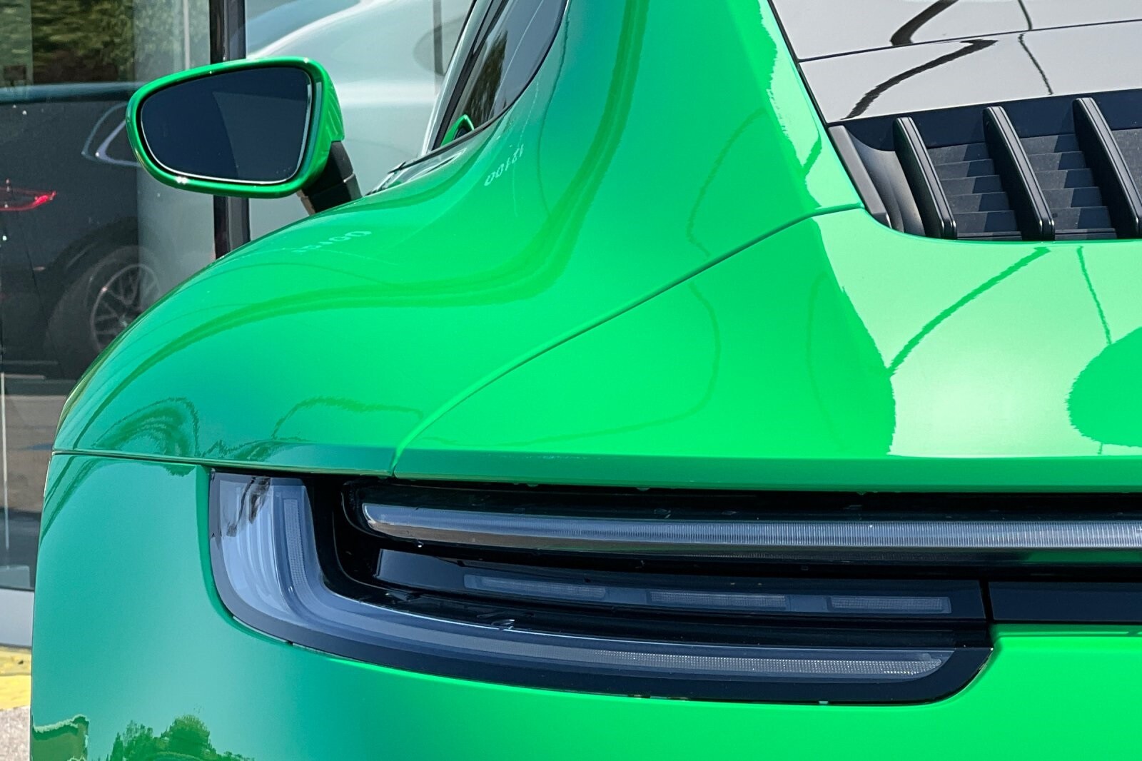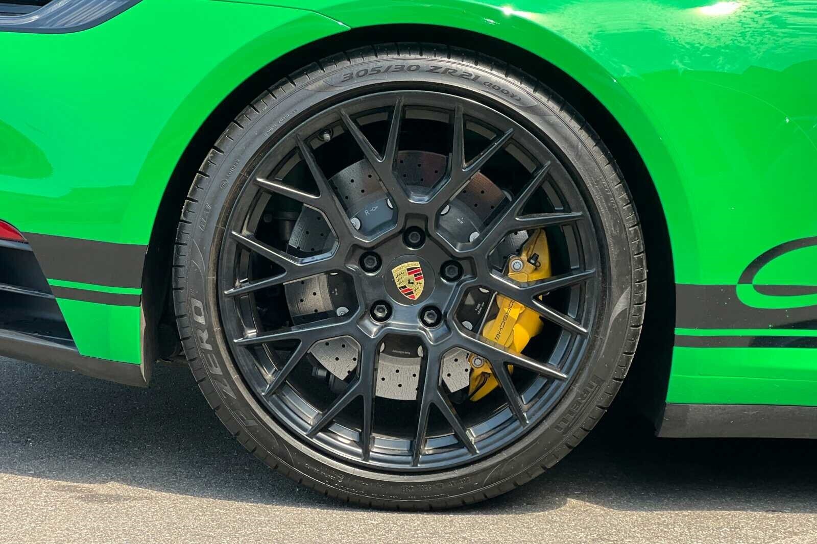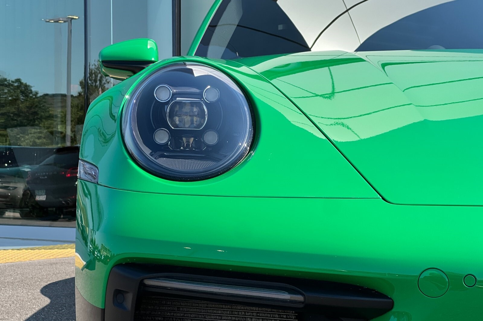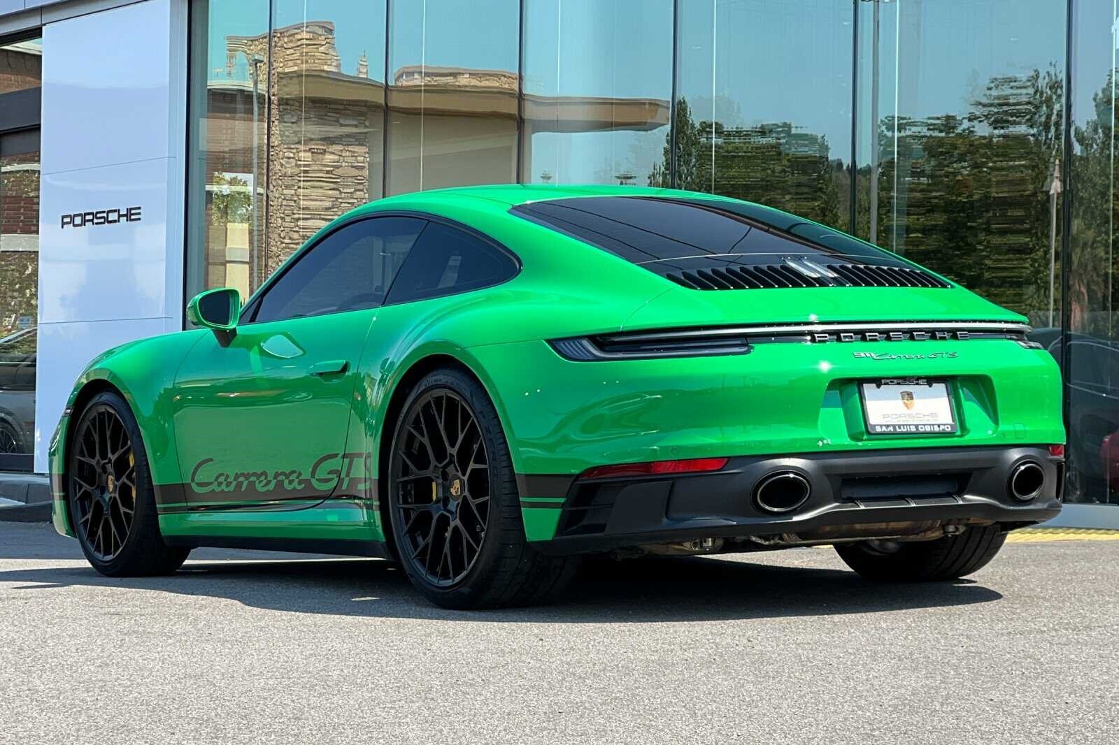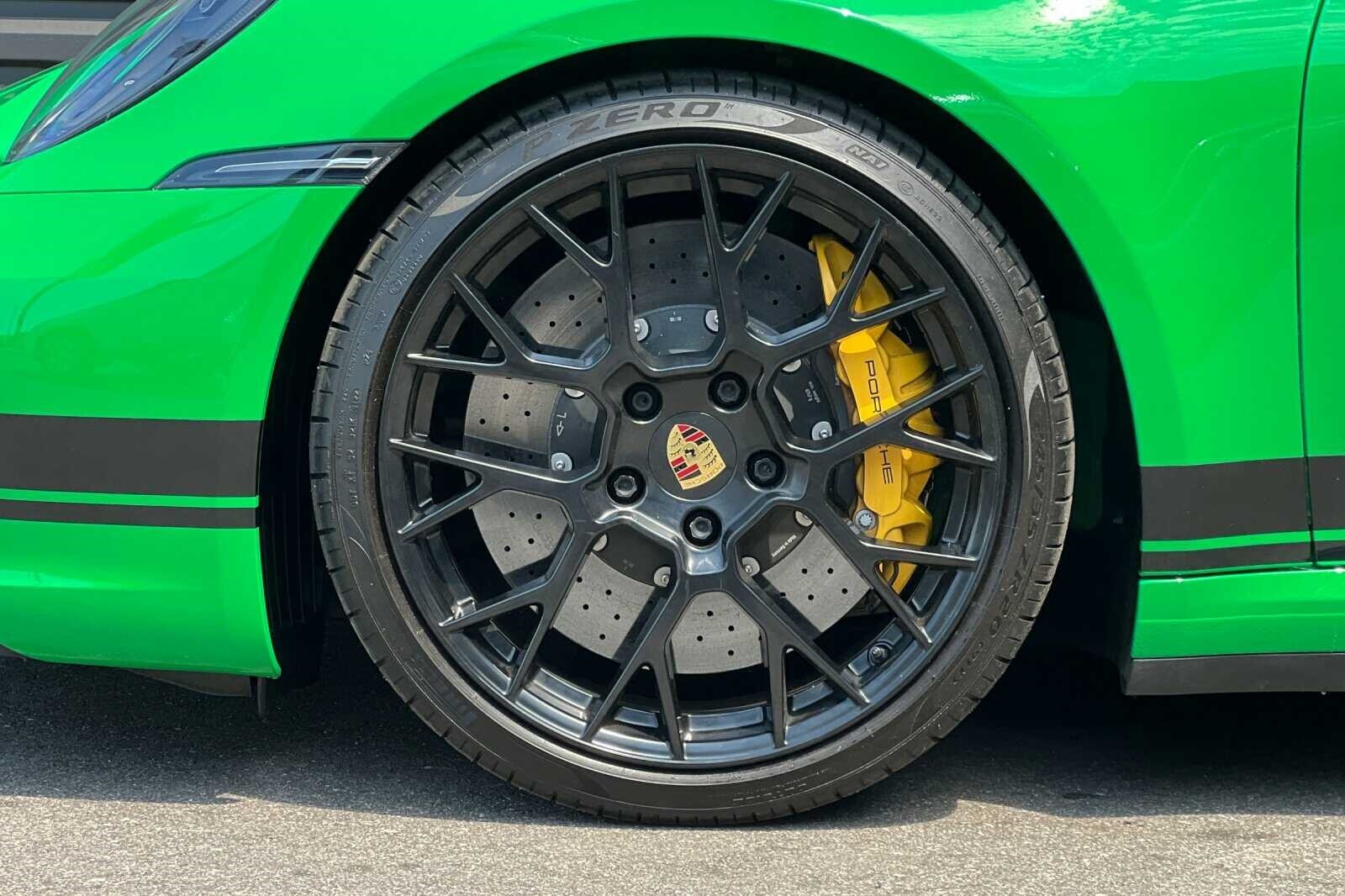 This Porsche San Luis Obispo 2022 Python Green Porsche 911 Carrera GTS is well equipped and includes these features and benefits: 18-Way Adaptive Sport Seats Plus w/Memory Package, Premium Package (Ambient Lighting, BOSE Surround Sound System, Lane Change Assist (LCA), Power Folding Exterior Mirrors, and Surround View), Storage Package, 23.7 Gal. Extended Range Fuel Tank, Porsche Ceramic Composite Brakes (PCCB) in Yellow, Power Steering Plus, Rear Axle Steering, Wheels: 20 Front/21 Rear RS Spyder Design, 4-Wheel Disc Brakes, 8 Speakers, ABS brakes, Adaptive suspension, Air Conditioning, Alloy wheels, Auto-dimming door mirrors, Auto-dimming Rear-View mirror, Automatic temperature control, Brake assist, Bumpers: body-color, Delay-off headlights, Driver door bin, Driver vanity mirror, Dual front impact airbags, Dual front side impact airbags, Electronic Stability Control, Exterior Parking Camera Rear, Four wheel independent suspension, Front anti-roll bar, Front Bucket Seats, Front Center Armrest, Front dual zone A/C, Front reading lights, Fully automatic headlights, Garage door transmitter: HomeLink, Heated door mirrors, Heated front seats, Illuminated entry, Low tire pressure warning, Navigation system: Porsche Communication Management (PCM), Occupant sensing airbag, Outside temperature display, Overhead airbag, Overhead console, Passenger door bin, Passenger vanity mirror, Porsche Communication Management, Power door mirrors, Power driver seat, Power passenger seat, Power steering, Power windows, Radio data system, Rain sensing wipers, Rear anti-roll bar, Rear fog lights, Rear window defroster, Remote keyless entry, Security system, Speed control, Split folding rear seat, Spoiler, Sport steering wheel, Steering wheel mounted audio controls, Tachometer, Telescoping steering wheel, Tilt steering wheel, Traction control, Trip computer, and Variably intermittent wipers. 18-Way Adaptive Sport Seats Plus w/Memory Package, 23.7 Gal. Extended Range Fuel Tank, Ambient Lighting, BOSE Surround Sound System, Lane Change Assist (LCA), Porsche Ceramic Composite Brakes (PCCB) in Yellow, Power Folding Exterior Mirrors, Power Steering Plus, Premium Package, Rear Axle Steering, Storage Package, Surround View, Wheels: 20 Front/21 Rear RS Spyder Design.