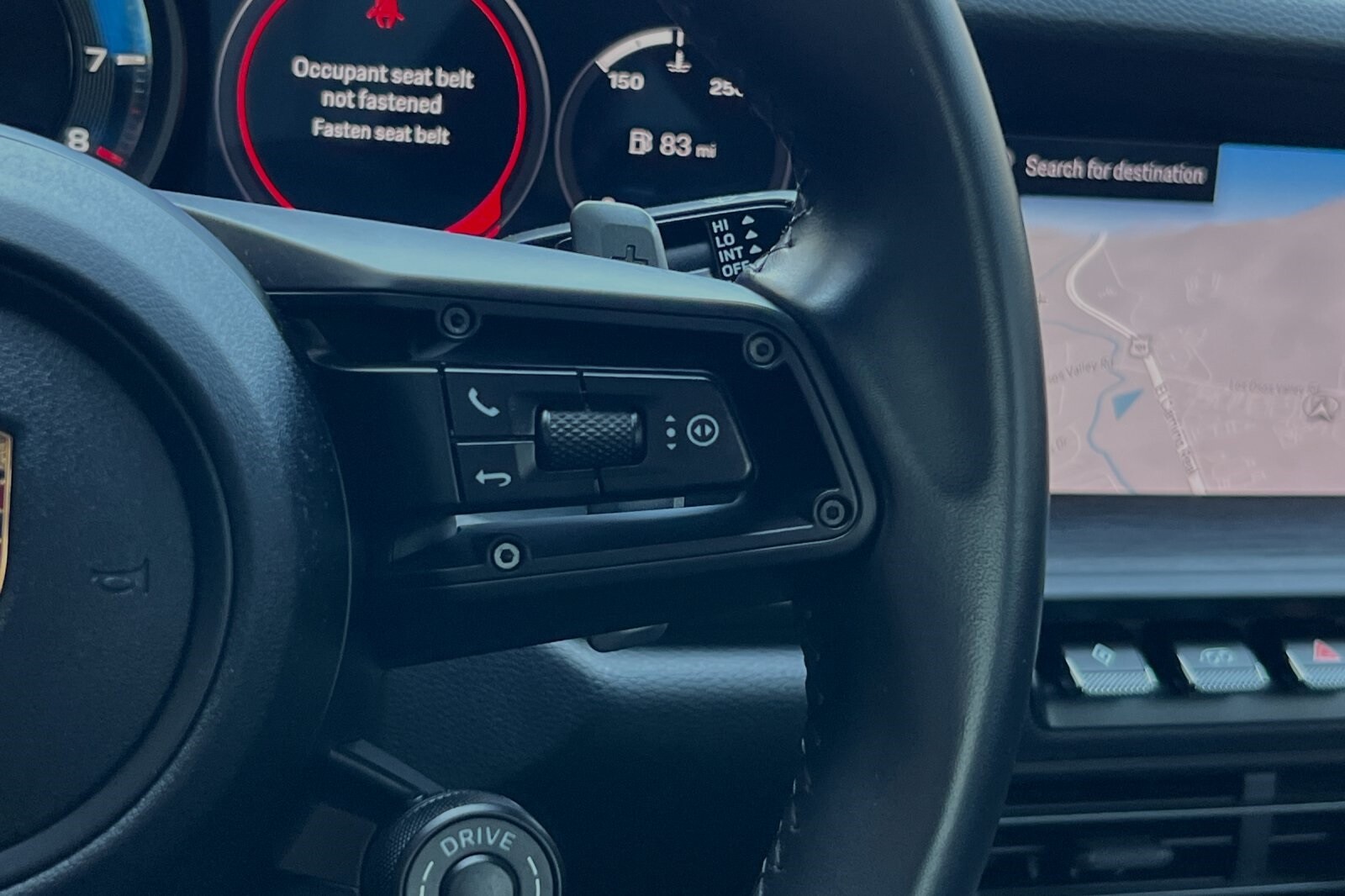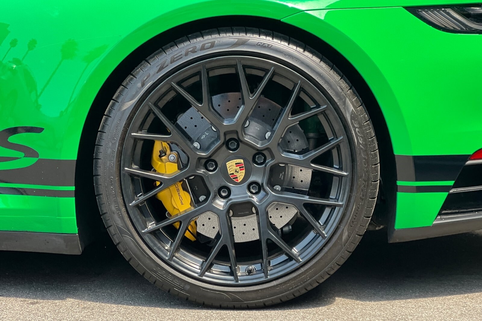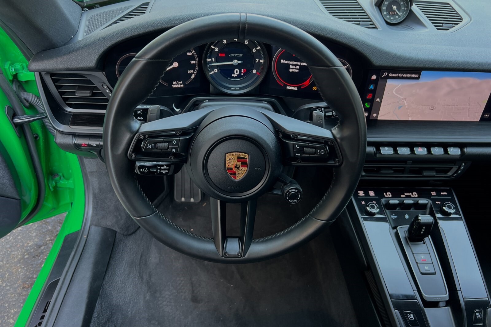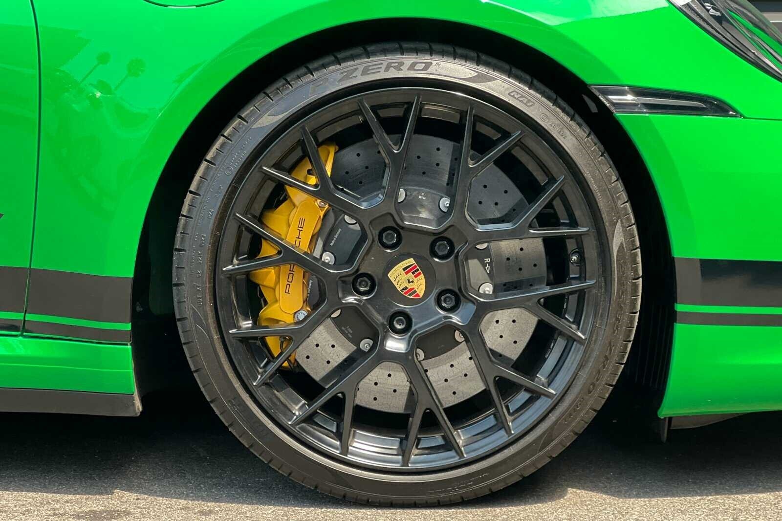 This Porsche San Luis Obispo 2022 Python Green Porsche 911 Carrera GTS is well equipped and includes these features and benefits: 18-Way Adaptive Sport Seats Plus w/Memory Package, Premium Package (Ambient Lighting, BOSE Surround Sound System, Lane Change Assist (LCA), Power Folding Exterior Mirrors, and Surround View), Storage Package, 23.7 Gal. Extended Range Fuel Tank, Porsche Ceramic Composite Brakes (PCCB) in Yellow, Power Steering Plus, Rear Axle Steering, Wheels: 20 Front/21 Rear RS Spyder Design, 4-Wheel Disc Brakes, 8 Speakers, ABS brakes, Adaptive suspension, Air Conditioning, Alloy wheels, Auto-dimming door mirrors, Auto-dimming Rear-View mirror, Automatic temperature control, Brake assist, Bumpers: body-color, Delay-off headlights, Driver door bin, Driver vanity mirror, Dual front impact airbags, Dual front side impact airbags, Electronic Stability Control, Exterior Parking Camera Rear, Four wheel independent suspension, Front anti-roll bar, Front Bucket Seats, Front Center Armrest, Front dual zone A/C, Front reading lights, Fully automatic headlights, Garage door transmitter: HomeLink, Heated door mirrors, Heated front seats, Illuminated entry, Low tire pressure warning, Navigation system: Porsche Communication Management (PCM), Occupant sensing airbag, Outside temperature display, Overhead airbag, Overhead console, Passenger door bin, Passenger vanity mirror, Porsche Communication Management, Power door mirrors, Power driver seat, Power passenger seat, Power steering, Power windows, Radio data system, Rain sensing wipers, Rear anti-roll bar, Rear fog lights, Rear window defroster, Remote keyless entry, Security system, Speed control, Split folding rear seat, Spoiler, Sport steering wheel, Steering wheel mounted audio controls, Tachometer, Telescoping steering wheel, Tilt steering wheel, Traction control, Trip computer, and Variably intermittent wipers. 18-Way Adaptive Sport Seats Plus w/Memory Package, 23.7 Gal. Extended Range Fuel Tank, Ambient Lighting, BOSE Surround Sound System, Lane Change Assist (LCA), Porsche Ceramic Composite Brakes (PCCB) in Yellow, Power Folding Exterior Mirrors, Power Steering Plus, Premium Package, Rear Axle Steering, Storage Package, Surround View, Wheels: 20 Front/21 Rear RS Spyder Design.