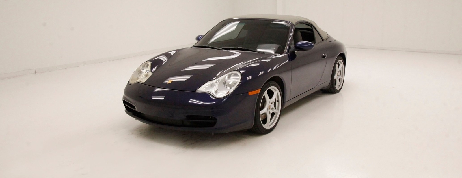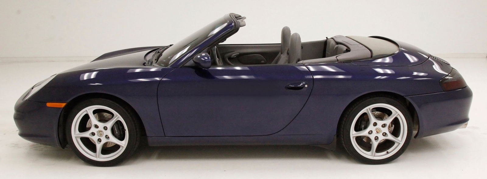 For your consideration, a very special Porsche Carrera Cabriolet, 996 V2 pampered, but not afraid to be driven daily commuter or track day superstar and yes it goes like hell! Gorgeous Graphite Gray interior full leather jackets, a Midnight Blue Metallic exterior and the drop topper, and life is very good for a great value, you can be in the seat of a 911.