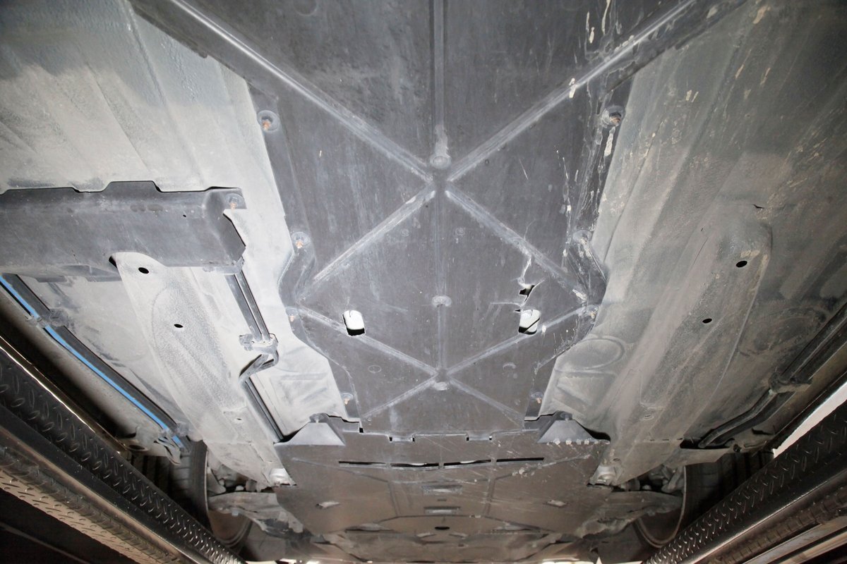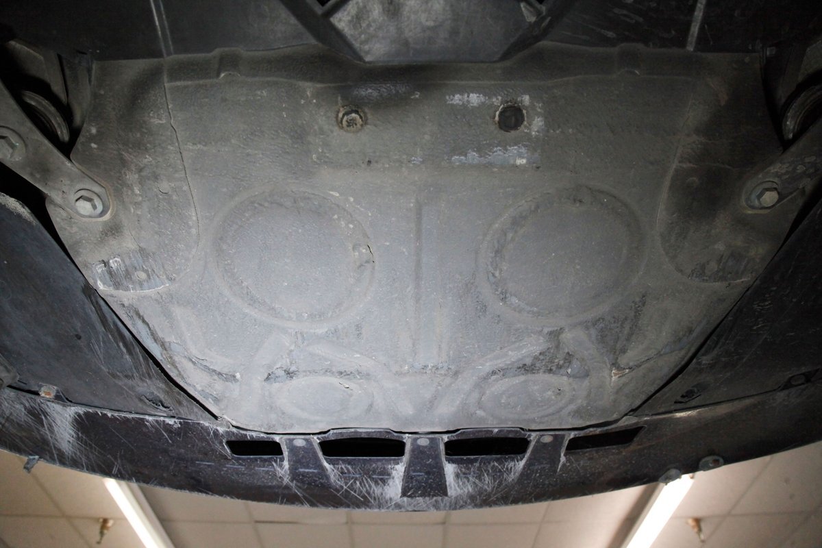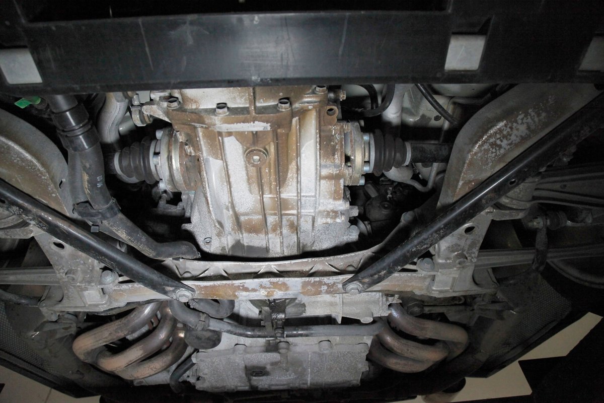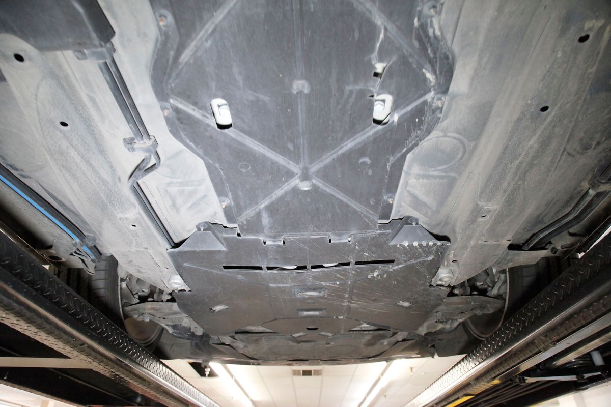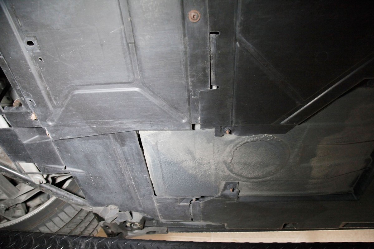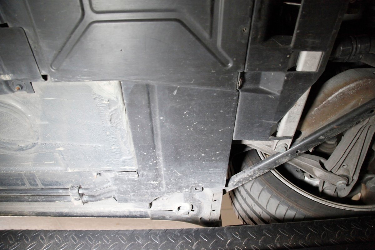 With a 95 percent coverage of ground effects panels, only the wheels are visible from the bottom. The panels are in very good condition with slight road dirt and some scrapes on the lower front cowl of the bodywork. Rockers are solid, and big 4-wheel disc brakes are present along with 4 wheel independent suspension.