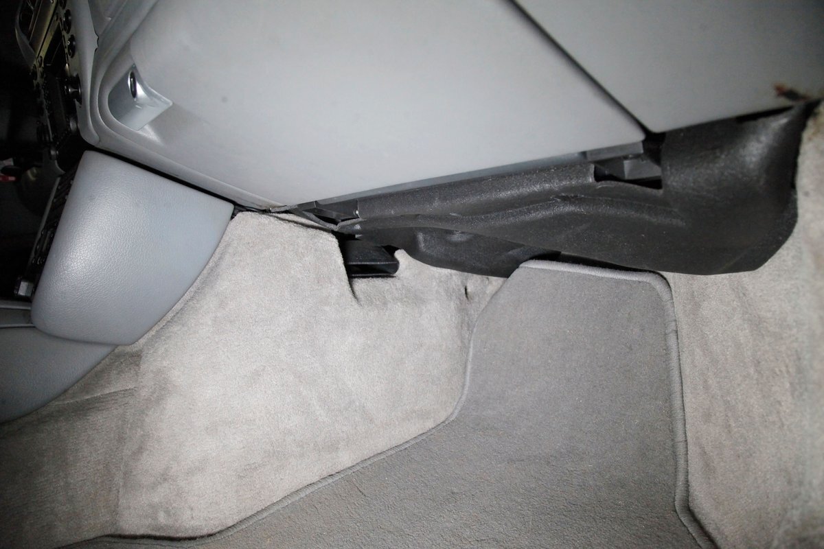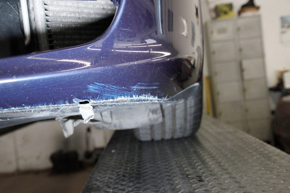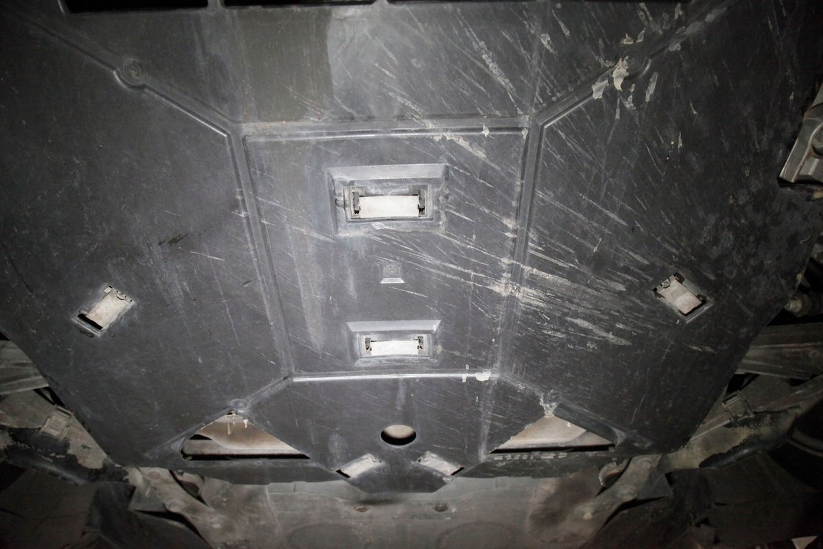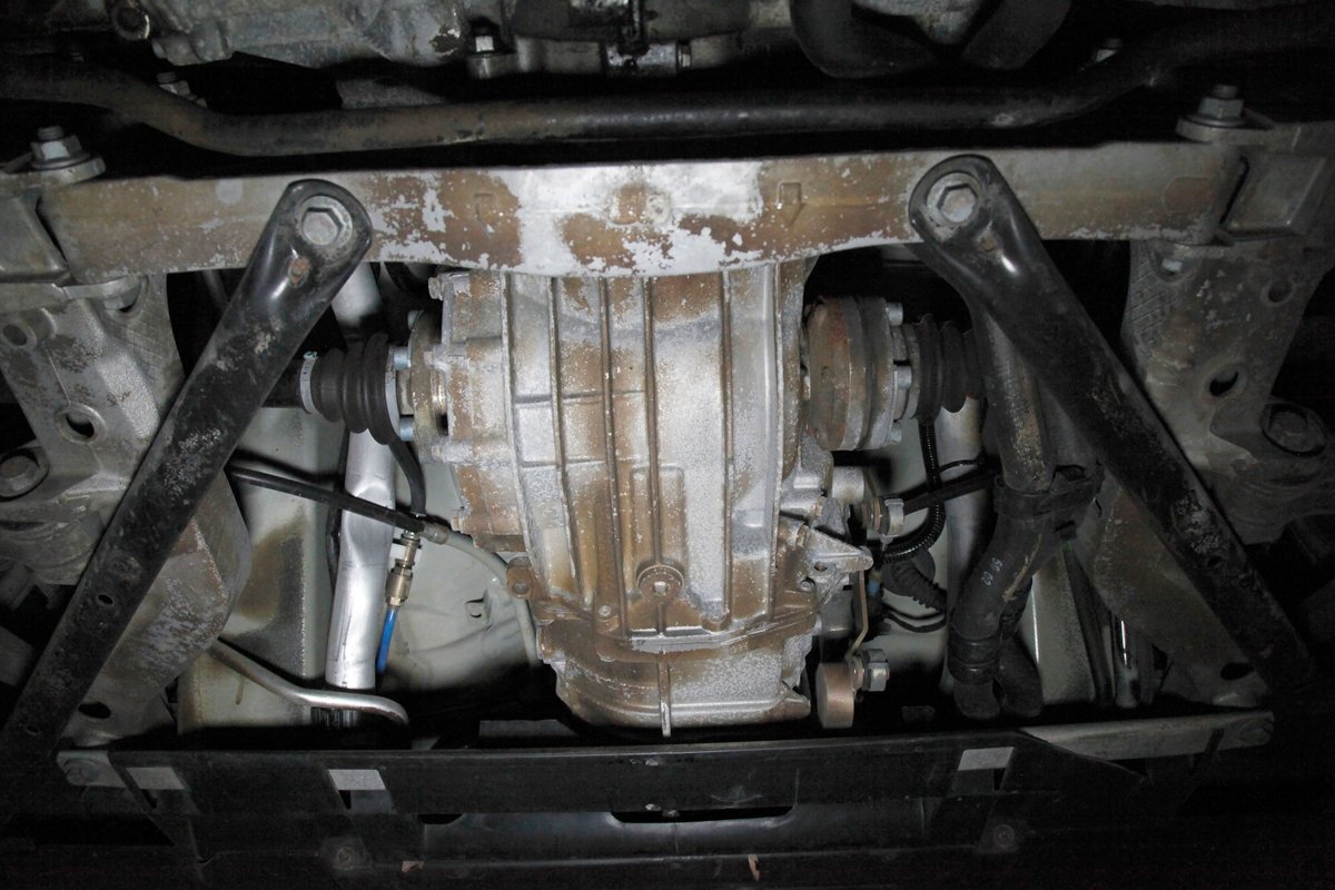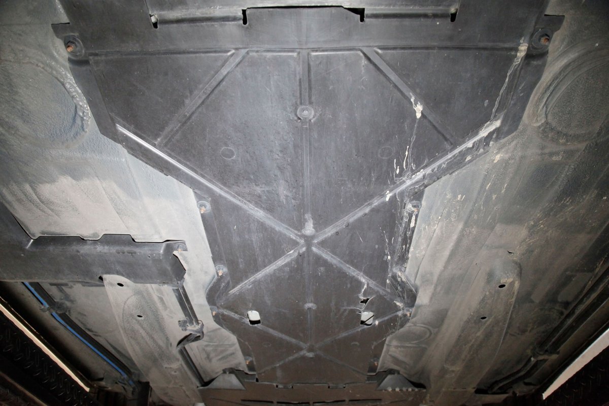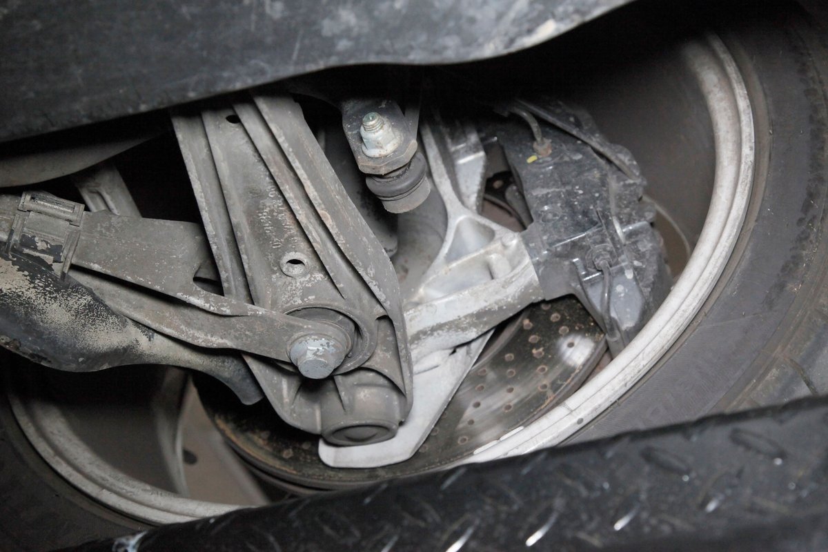With a 95 percent coverage of ground effects panels, only the wheels are visible from the bottom. The panels are in very good condition with slight road dirt and some scrapes on the lower front cowl of the bodywork. Rockers are solid, and big 4-wheel disc brakes are present along with 4 wheel independent suspension.