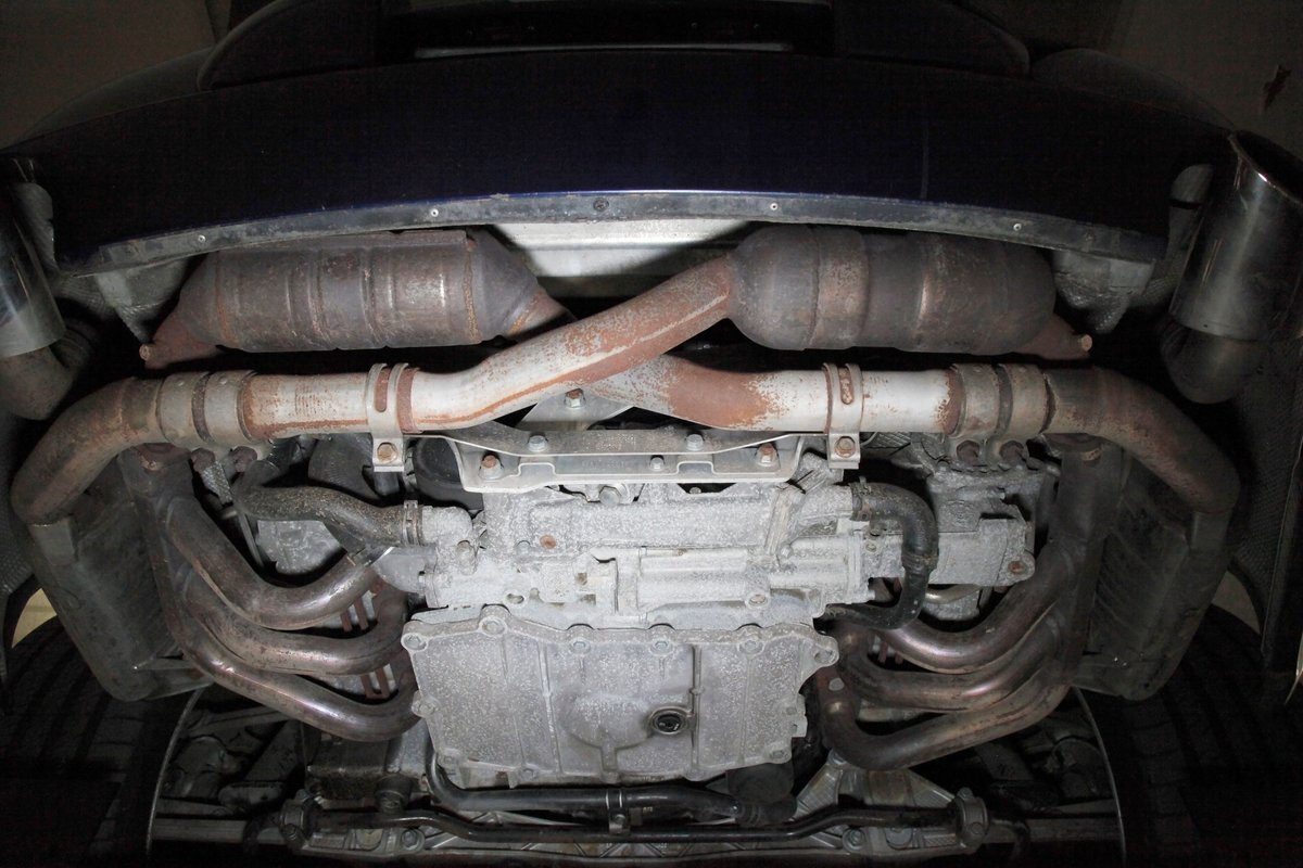 Shoehorned into the rear of the car is a 3.6 liter flat 6 cylinder which has the capability of producing 315 peak horsepower. Chiseled stainless steel exhaust snakes its way to the rear bottom of the sportscar. A 6-speed manual transmission is bolted on, and this is a naturally aspirated car with a 3.44 geared rear axle.