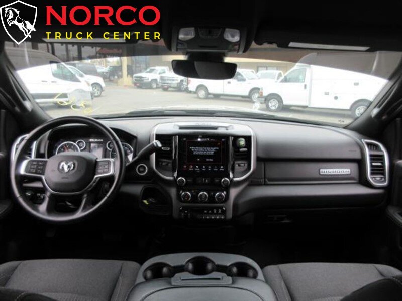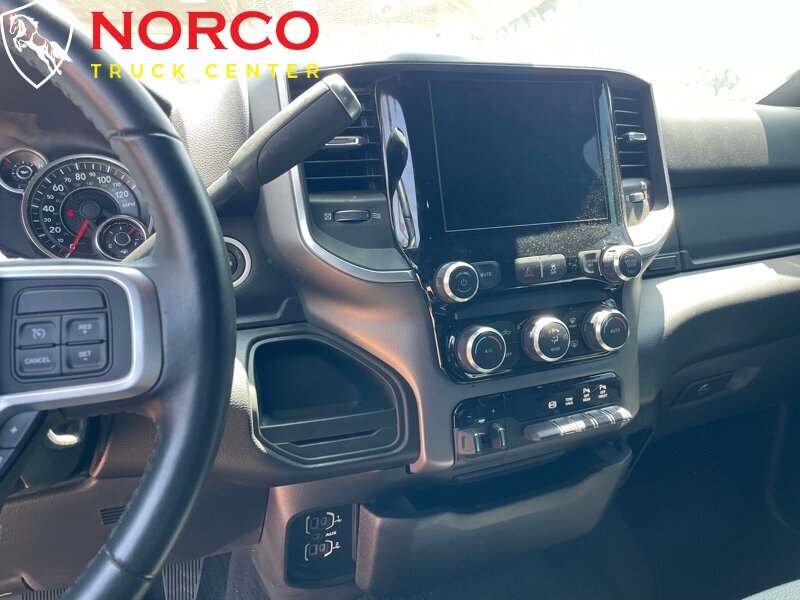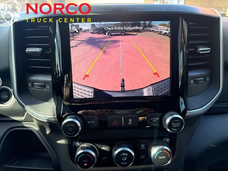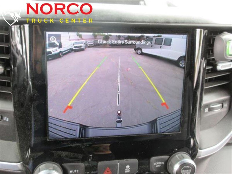 INSTALLED FEATURES: Front air conditioning, Front air conditioning zones: single, Rear vents: second row, Airbag deactivation: occupant sensing passenger, Front airbags: dual, Side airbags: front, Side curtain airbags: front / rear, Side-curtain airbag rollover sensor, Antenna type: mast, Auxiliary audio input: Bluetooth / USB / jack, Radio: AM/FM / touch screen display / voice operated, Radio data system, Speed sensitive volume control, Total speakers: 6, ABS: 4-wheel, Brake drying, Braking assist, Electronic brakeforce distribution, Emergency braking preparation, Front brake diameter: 14.2, Front brake type: ventilated disc, Front brake width: 1.54, Power brakes, Rear brake diameter: 14.1, Rear brake type: ventilated disc, Rear brake width: 1.34, Armrests: front center, Dash trim: alloy, Door sill trim: scuff plate, Door trim: alloy, Floor mat material: rubber/vinyl, Floor material: carpet, Floor mats: front / rear, Steering wheel trim: urethane, Assist handle: front / rear, Cruise control, Cupholders: front, Multi-function remote: keyless entry / panic alarm, One-touch windows: 2, Overhead console: front, Power outlet(s): 12V front, Power steering, Power windows: lockout button, Push-button start, Reading lights: front, Rearview mirror: manual day/night, Retained accessory power, Steering wheel: tilt, Steering wheel mounted controls: cruise control / multi-function / phone / voice control, Storage: accessory hook / cargo tray / door pockets / under rear seats, Vanity mirrors: passenger illuminating, Axle ratio: 3.73, Alternator: 180 amps, Auxiliary oil cooler, Battery: maintenance-free, Battery rating: 730 CCA, Battery saver, Emissions: 50 state, Active grille shutters, Door handle color: body-color with chrome accents, Front bumper color: chrome, Grille color: black / chrome surround, Headlight bezel color: chrome, License plate bracket: front, Mirror color: black, Pickup bed light, Rear bumper color: chrome, Tailgate: power locking / removable, Window trim: black, Infotainment: Uconnect, Infotainment screen size: 5 in., Clock, Compass, Digital odometer, Engine hour meter, External temperature display, Fuel economy display: MPG / range, Gauge: tachometer, Instrument cluster screen size: 3.5 in., Multi-function display, Trip odometer, Warnings and reminders: low fuel level / low oil level / maintenance due / tire fill alert, Daytime running lights, Exterior entry lights: approach lamps / puddle lamps, Headlights: auto delay off / auto on/off / halogen / quad headlights, Side mirror adjustments: manual folding / manual telescoping / power, Side mirror type: spotter mirror / towing, Side mirrors: heated / integrated turn signals, Body side reinforcements: side impact door beams, Camera system: rearview, Child safety door locks, Child seat anchors: LATCH system, Crumple zones: front, Energy absorbing steering column, Rearview monitor: in dash, Emergency locking retractors: front / rear, Front seatbelts: 3-point, Rear seatbelts: 3-point, Seatbelt force limiters: front, Seatbelt pretensioners: front, Seatbelt warning sensor: front, Driver seat manual adjustments: reclining / 4, Front headrests: adjustable / 2, Front seat type: 40-20-40 split bench, Passenger seat manual adjustments: reclining / 4, Rear headrests: adjustable / 3, Rear seat folding: folds up, Rear seat type: bench, Upholstery: cloth, 2-stage unlocking doors, Anti-theft system: engine immobilizer, Power door locks: auto-locking, Rolling code security: key, Hill holder control, Roll stability control, Stability control, Traction control, Trailer stability control, Front shock type: gas, Front spring type: coil, Front stabilizer bar, Front suspension classification: solid axle, Front suspension type: multi-link, Rear shock type: gas, Rear spring type: coil, Rear stabilizer bar, Rear suspension classification: solid live axle, Rear suspension type: multi-link, Suspension control: frequency selective, Electronic messaging assistance: voice operated / with read function, Phone: voice operated, Wireless data link: Bluetooth, Spare tire mount location: underbody, Spare tire size: full-size, Spare wheel type: steel, Tire Pressure Monitoring System, Tire type: all season, Wheels: chrome clad, Auxiliary transmission fluid cooler, Cargo tie downs, Integrated trailer brake controller, Trailer hitch: Class V, Trailer wiring: 4-pin / 7-pin, Front wipers: variable intermittent, Laminated glass: acoustic, Power windows: safety reverse, Rear privacy glass, Solar-tinted glass