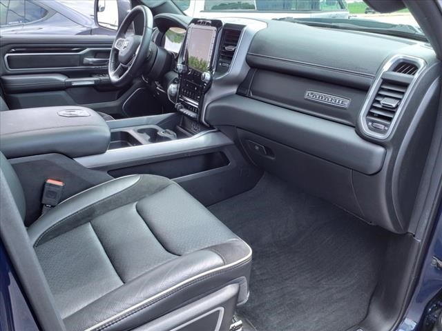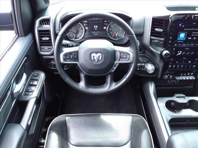 10 Speakers, 48V Belt Starter Generator, 8.4 Touchscreen Display, Adjustable pedals, Air Conditioning, AM/FM radio: SiriusXM, Auto Dimming Exterior Passenger Mirror, Auto High Beam Headlamp Control, Automatic temperature control, Bed Utility Group, Black Interior Accents, Blind Spot & Cross Path Detection, Body Color Door Handles, Body Color Exterior Mirrors, Body Color Front Bumper, Body Color Premium Power Mirrors, Body Color Rear Bumper w/Step Pads, Chrome Exterior Mirrors, Delay-off headlights, Dome Dual LED Reading Lamp, Driver Seat Memory, Dual front side impact airbags, Dual-Pane Panoramic Sunroof, Electronic Stability Control, Foam Bottle Insert (Door Trim Panel), Front Center Armrest w/Storage, Front wheel independent suspension, Fully automatic headlights, Garage door transmitter, GPS Antenna Input, Grille Surround 3 Body Color Tex 2 Black, Heated door mirrors, Heated Steering Wheel, Heated steering wheel, Integrated Center Stack Radio, LED Dome/Reading Lamp, Low tire pressure warning, Memory seat, MOPAR 4 Adjustable Cargo Tie-Down Hooks, MOPAR Deployable Bed Step, MOPAR Spray In Bedliner, Navigation System, Outside temperature display, Overhead airbag, Panic alarm, ParkSense Front/Rear Park Assist w/Stop, ParkView Rear Back-Up Camera, Pedal memory, Pick-Up Box Lighting, Power 4-Way Driver Lumbar Adjust, Power 8-Way Driver & Passenger Seats, Power door mirrors, Power steering, Radio: Uconnect 4 w/8.4 Display, Rain Sensitive Windshield Wipers, Rear 60/40 Folding Split Recline Seat, Rear step bumper, Rear window defroster, Remote Tailgate Release, SiriusXM Radio Service, Speed control, Sport Decal, Sport Performance Hood, Steering wheel mounted audio controls, Tachometer, Tailgate Ajar Warning Lamp, Tilt steering wheel, Tow Hooks, Traction control, Ventilated Front Seats, Voltmeter, Wheels: 20 x 9 Premium Painted w/Inserts. CARFAX One-Owner. Clean CARFAX.