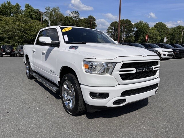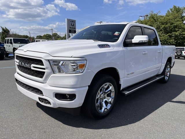 2022 Ram 1500 Big Horn/Lone Star 1500 Big Horn/Lone Star, 4D Crew Cab, EcoDiesel 3.0L V6, 8-Speed Automatic, RWD, Bright White Clearcoat, Black w/Cloth High-Back Bucket Seats, 2nd Row In Floor Storage Bins, 3 Rear Seat Head Restraints, 4 Way Front Headrests, 4G LTE Wi-Fi Hot Spot, 8.4 Touchscreen Display, All Plant-Installed Decals, Apple CarPlay, Auto-Dimming Exterior Driver Mirror, Auto-Dimming Rear-View Mirror, Big Horn Badge, Big Horn Level 1 Equipment Group, Black Exterior Mirrors, Black Interior Accents, Black Premium Power Mirrors, Bluetooth Handsfree Phone & Audio, Body Color Exterior Mirrors, Body Color Front Bumper, Body Color Premium Power Mirrors, Body Color Rear Bumper w/Step Pads, Bridgestone Brand Tires, Bucket Seats, Class IV Receiver Hitch, Cluster 3.5 TFT Color Display, Connectivity - US/Canada, Convex Wide-Angle Mirror Insert, Delete LED Lamp - Floor Console Bin, Deluxe Cloth Bucket Seats, Exterior Mirrors Courtesy Lamps, Exterior Mirrors w/Heating Element, Exterior Mirrors w/Supplemental Signals, For Details, Visit , Front Seat Back Map Pockets, Full Length Floor Console, Global Telematics Box Module (TBM), Glove Box Lamp, Google Android Auto, GPS Antenna Input, Integrated Center Stack Radio, Manual Adjust 4-Way Front Passenger Seat, Power 2-Way Driver Lumbar Adjust, Power 8-Way Driver Seat, Power Adjustable Pedals, Power-Folding Mirrors, Quick Order Package 28Z Big Horn, Radio: Uconnect 5 W w/8.4 Display, Rear 60/40 Folding Seat, Rear Center Armrest, Rear Dome w/On/Off Switch Lamp, Rear Power Sliding Window, Rear Window Defroster, SiriusXM Radio Service, SiriusXM Satellite Radio, Sport Appearance Package, Sport Decal, Sun Visors w/Illuminated Vanity Mirrors, Thermal Rear Axle, Universal Garage Door Opener, USB Host Flip. Certified. FCA US LLC Certified Pre-Owned Details: