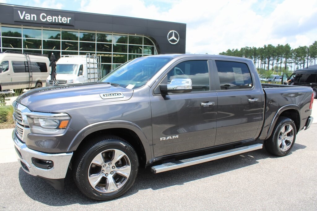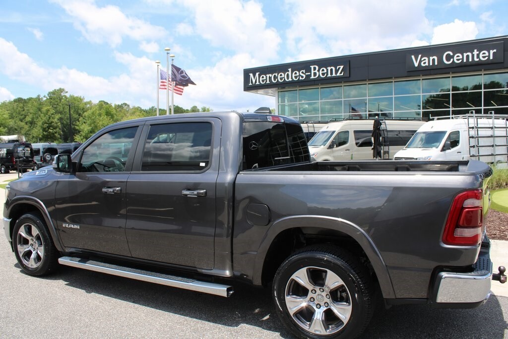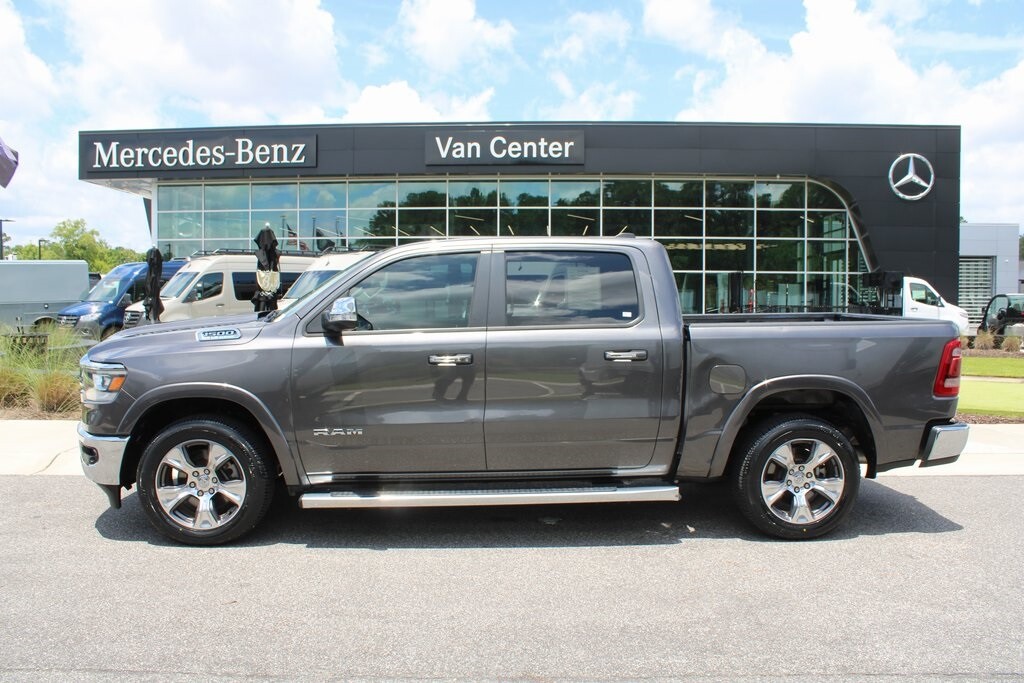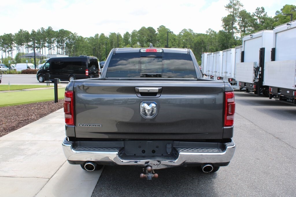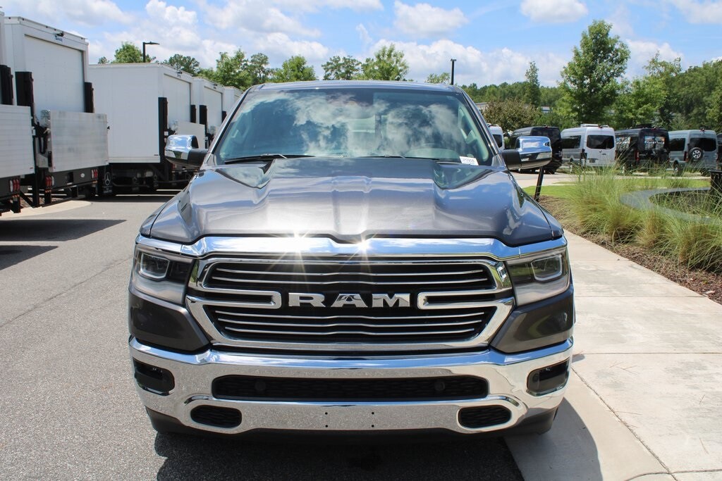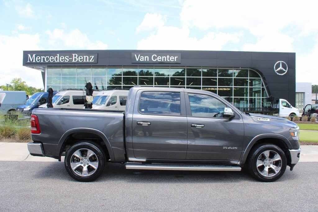 Safety is a top priority in the 2022 RAM 1500 Crew Cab Laramie. It comes equipped with a standard anti-lock braking system (ABS) and electronic stability control (ESC) to ensure optimal control and stability. Front air bags for the driver and passenger and side air bags in all rows provide comprehensive protection in the event of a collision. Advanced driver assistance technologies such as adaptive cruise control, blind-spot monitoring, and lane-keeping assist add an extra layer of security and confidence while on the road.
