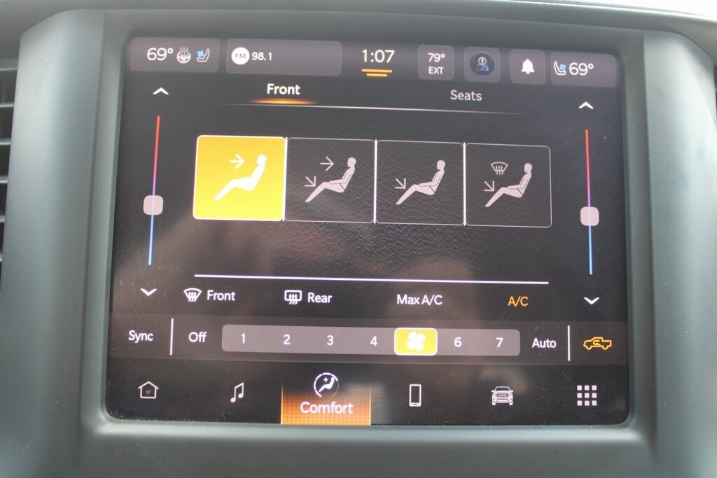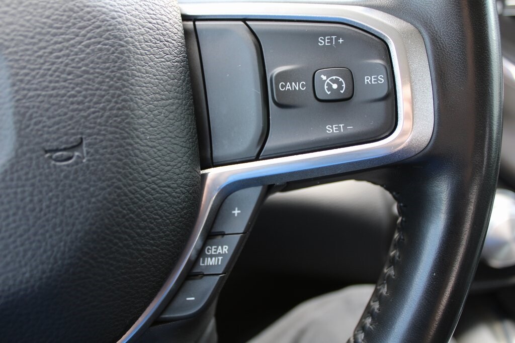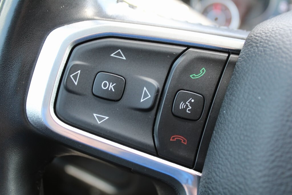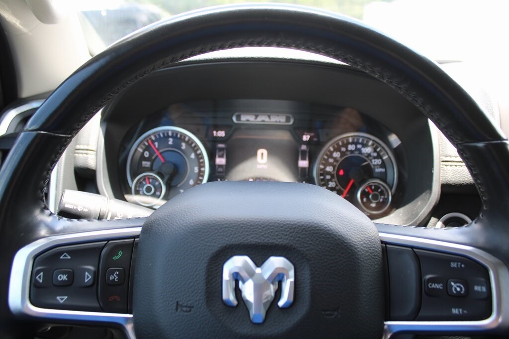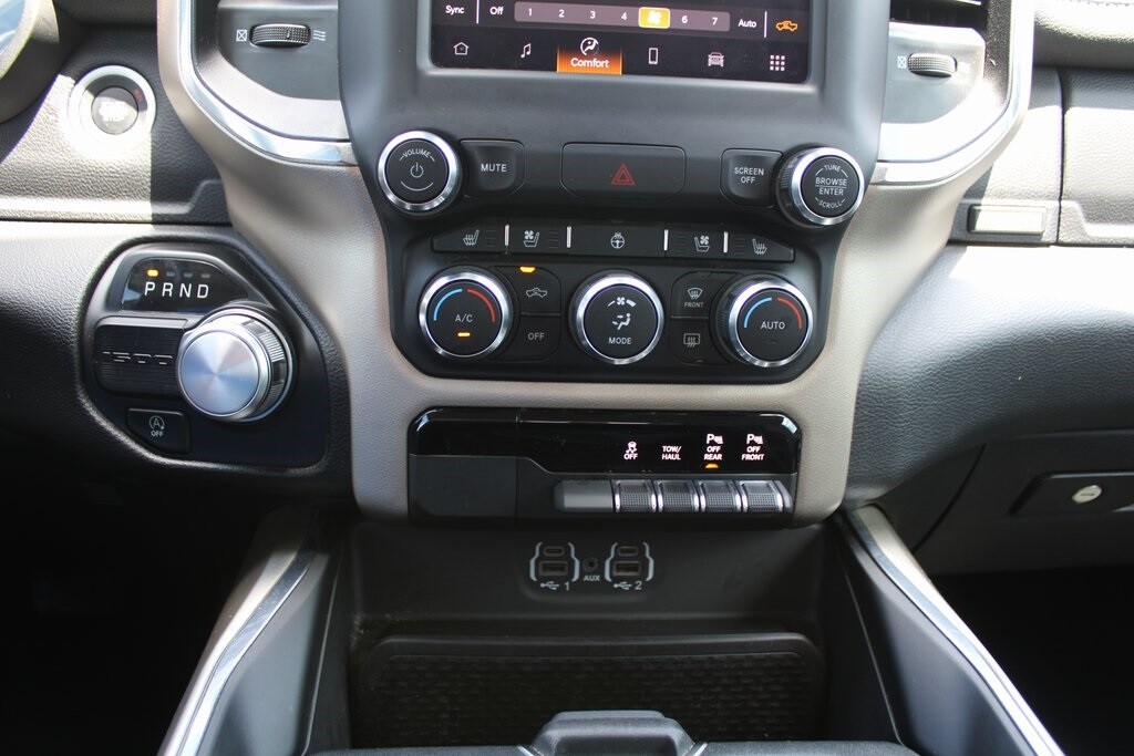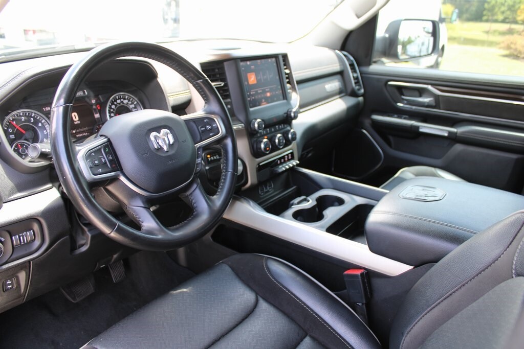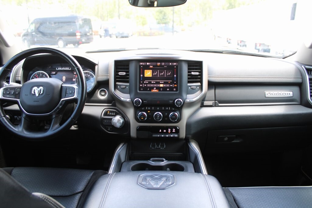 Step inside the 2022 RAM 1500 Crew Cab Laramie and experience luxury and comfort like never before. The spacious cabin can comfortably accommodate up to five passengers, with premium leather-trimmed seats that offer both heating and ventilation for the front row. The advanced Uconnect infotainment system with a large touchscreen display provides seamless connectivity, while the premium audio system delivers an immersive listening experience. Additional features such as a dual-zone automatic climate control, power-adjustable front seats, and ample storage options further enhance the convenience and comfort of this truck.