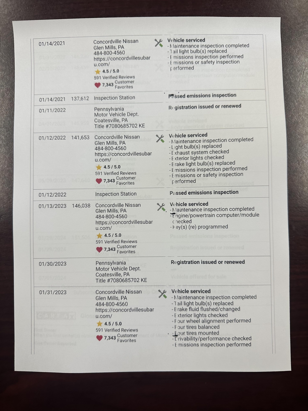 VALLEY FORGE NATIONAL RE-MARKETING CAR