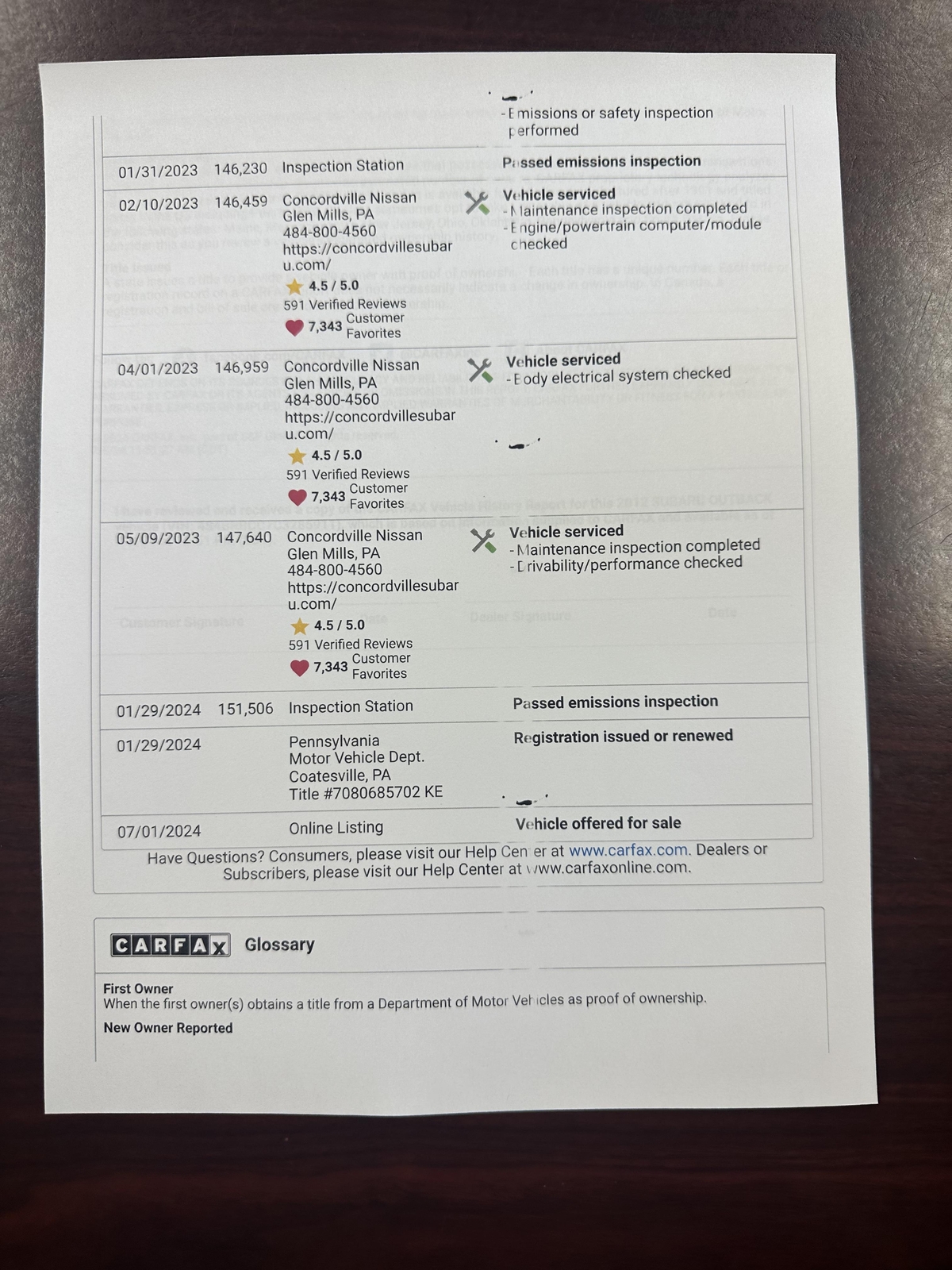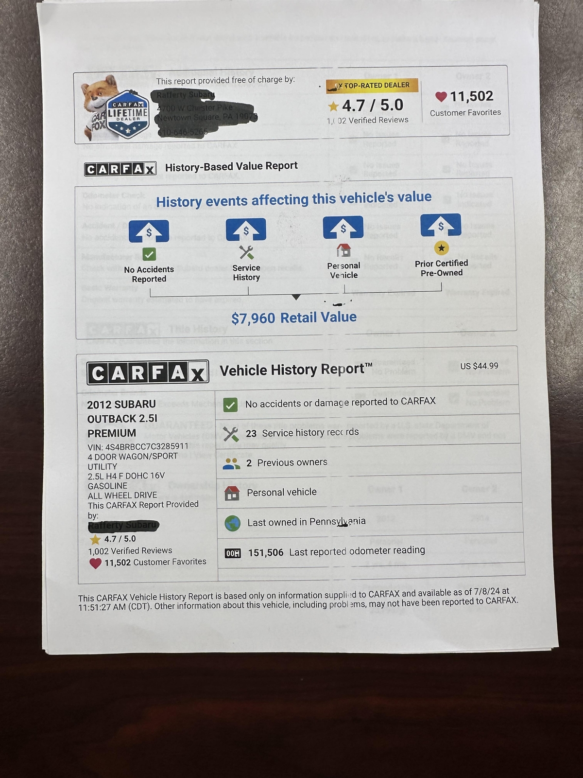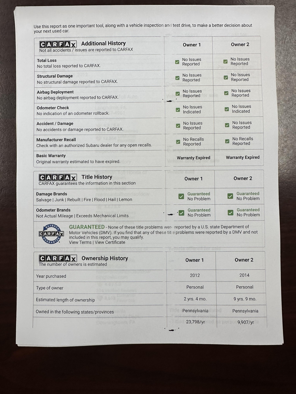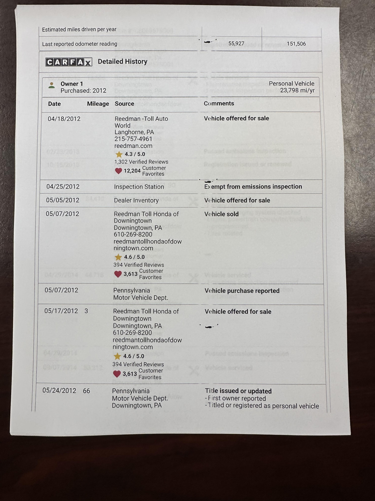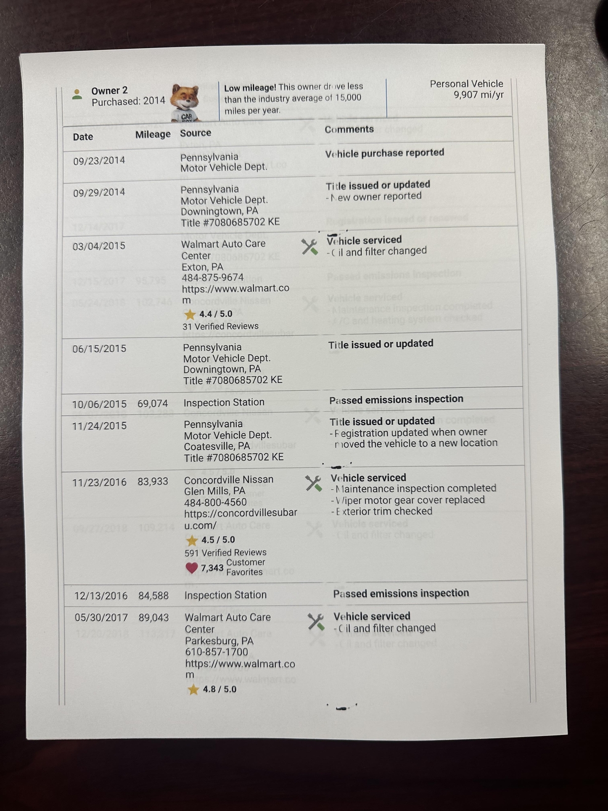 VEHICLE WITH HIGH MILES. WE RECOMMEND