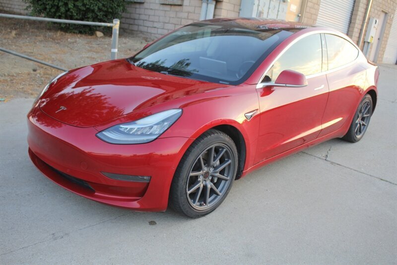 2018 TESLA MODEL 3 LONG RANGE BATTERY. This Tesla is in excellent condition and has a clean title. Test drives are available in Rialto, and delivery is also an option. The vehicle has a 330-mile range, rear-drive, and a beautiful wine-red color.
