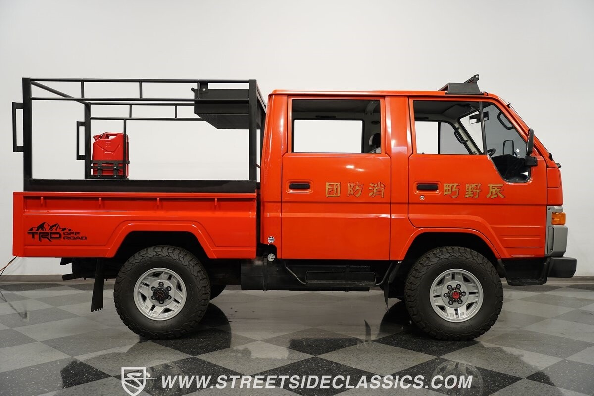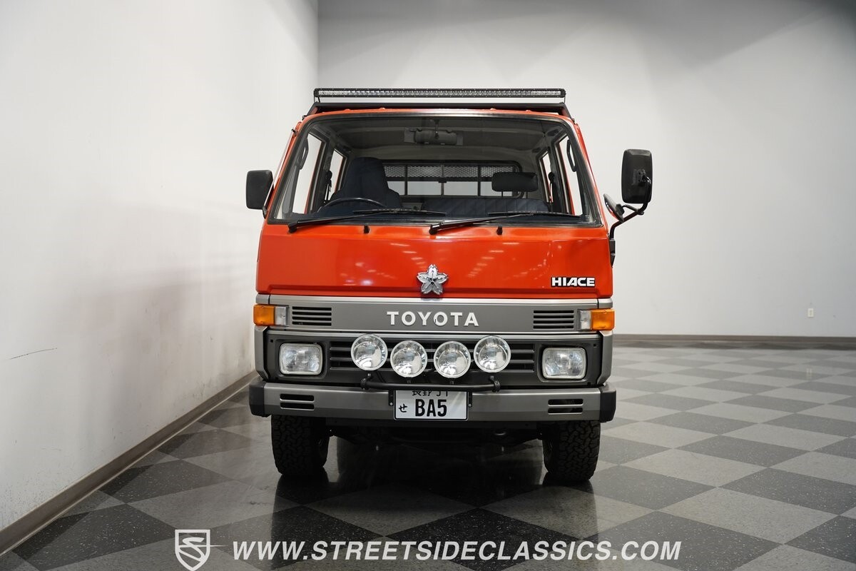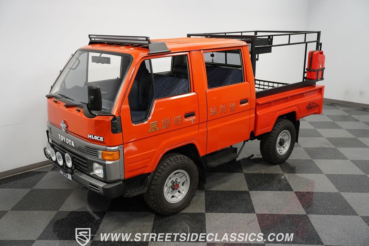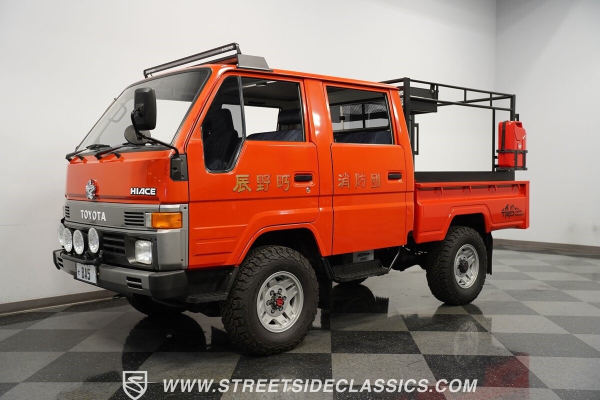 If you're tired of seeing all the same cars and trucks riding around and want something that's going to stand out in a crowd anywhere it goes, then this 1988 Toyota HiAce Pickup 4X4 is the one you've been waiting for. This unique truck started its life as a fire truck in Japan. It was imported and had all its fire equipment removed, while a bed rack and toolbox were added. A two-inch lift, blasted and powder-coated silver fifteen-inch wheels along with a brand new set of 30-inch BFG K02 tires at all four corners. The right-hand drive setup is the most noticeable aspect of the interior, along with the well-preserved cloth bench seats and hard plastic panels, and don't overlook the CB radio and PA system still intact!