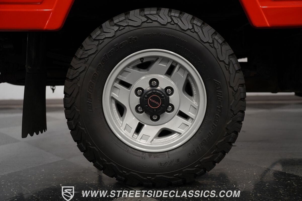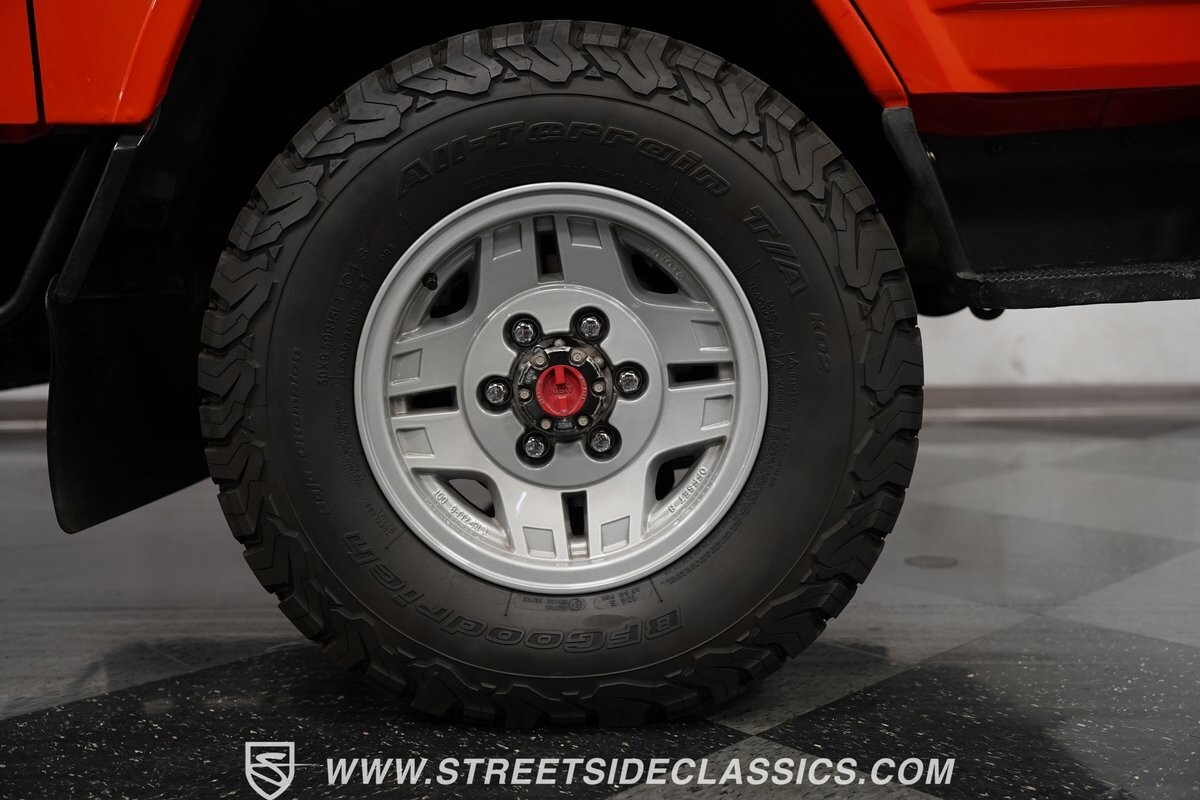 Power comes from an electronically fuel-injected 2.4-liter diesel engine which had its timing and accessory belts changed in April of 2023. Power is sent through a five-speed manual transmission. This big red machine rides high on an independent front suspension and a leaf spring rear setup. Aside from the lift kit, this truck also has a torsion bar, Bilstein shocks, and Energy bumpstops for an upgraded ride over just about any terrain.