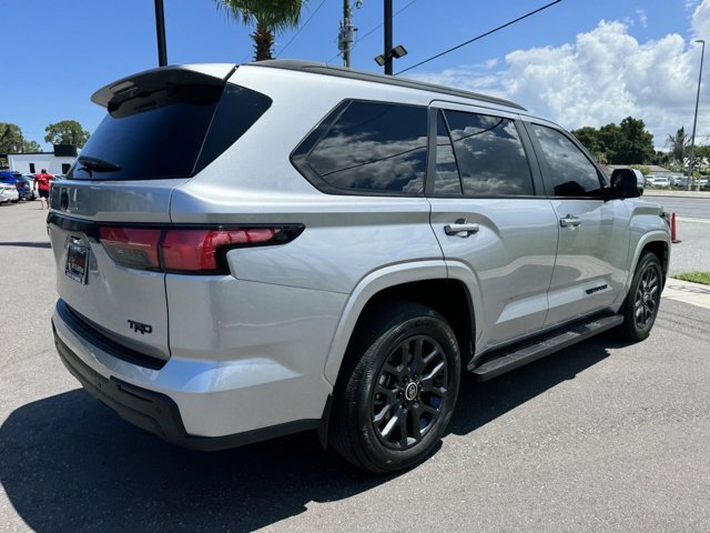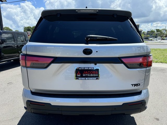 Sequoia SR5, 4D Sport Utility, V6 Hybrid, 10-Speed Automatic, RWD, Celestial Silver Metallic, Boulder w/SofTex Seat Trim, 3.31 Axle Ratio, 3rd row seats: split-bench, 4-Wheel Disc Brakes, 400W/120V AC Rear Seat & Cargo Area Power Outlet, 8 Speakers, ABS brakes, Air Conditioning, Alloy wheels, AM/FM radio: SiriusXM, Anti-whiplash front head restraints, Apple CarPlay/Android Auto, Auto High-beam Headlights, Auto-dimming door mirrors, Auto-dimming Rear-View mirror, Automatic temperature control, Brake assist, Bumpers: body-color, Delay-off headlights, Driver door bin, Driver vanity mirror, Dual front impact airbags, Dual front side impact airbags, Electronic Stability Control, Emergency communication system: Safety Connect (10-year trial), Fabric Seat Trim, Front anti-roll bar, Front Bucket Seats, Front Center Armrest w/Storage, Front dual zone A/C, Front fog lights, Front reading lights, Front wheel independent suspension, Fully automatic headlights, Garage door transmitter, Headlight cleaning, Heated door mirrors, Heated Front Seats, Heated front seats, Heated Leather Steering Wheel, Illuminated entry, Knee airbag, Leather Shift Knob, Leather steering wheel, Low tire pressure warning, Occupant sensing airbag, Outside temperature display, Overhead airbag, Overhead console, Panic alarm, Passenger door bin, Passenger vanity mirror, Power door mirrors, Power driver seat, Power moonroof, Power passenger seat, Power steering, Power windows, Radio: Toyota Multimedia w/14 Display, Radio: Toyota Multimedia w/8 Display, Rear air conditioning, Rear reading lights, Rear seat center armrest, Rear window defroster, Rear window wiper, Reclining 3rd row seat, Remote keyless entry, Roof rack: rails only, Security system, SofTex Seat Trim, Speed control, Speed-sensing steering, Split folding rear seat, Spoiler, SR5 Premium Package, Steering wheel mounted audio controls, Tachometer, Telescoping steering wheel, Tilt steering wheel, Traction control, TRD Sport Package, Trip computer, Turn signal indicator mirrors, Variably intermittent wipers, Voltmeter, Wheels: 20 TRD Sport Matte-Black Alloy. CARFAX One-Owner.Celestial Silver Metallic 2024 Toyota Sequoia SR5 RWD V6 HybridHere at Jacobs Mitsubishi our goal is to make you a customer for life. We want you to have the most enjoyable car buying experience possible . All prices displayed do not include additional accessories or fees and costs of closing including any government, additional packages applied to vehicle, including but not limited to Jacobs Care, Reconditioning fees,federal, dealer fees, taxes, registration, dealer document, cost of accessories, emissions testing, or any other fees. All prices, specifications and availability are subject to change at any time, without notice. Not all applicants will be approved, offers may change at any time and may not reflect accuracy online, see dealer for most updated offers. Not all offers can be combined. Applicant may qualify for partial discount displayed by financing with another approved lender through and provided by Jacobs Mitsubishi. Contact dealer for most current information, availability, or details.