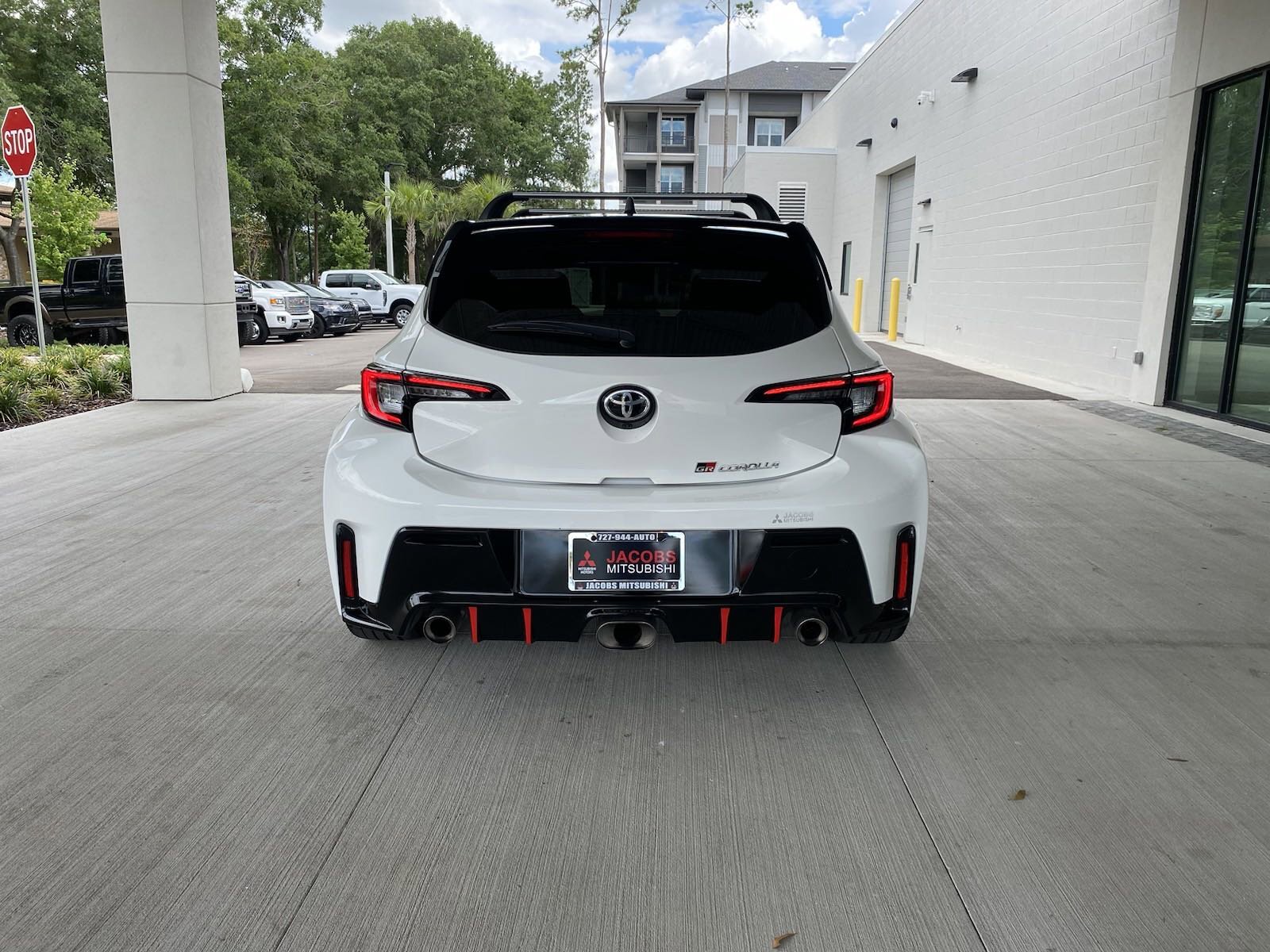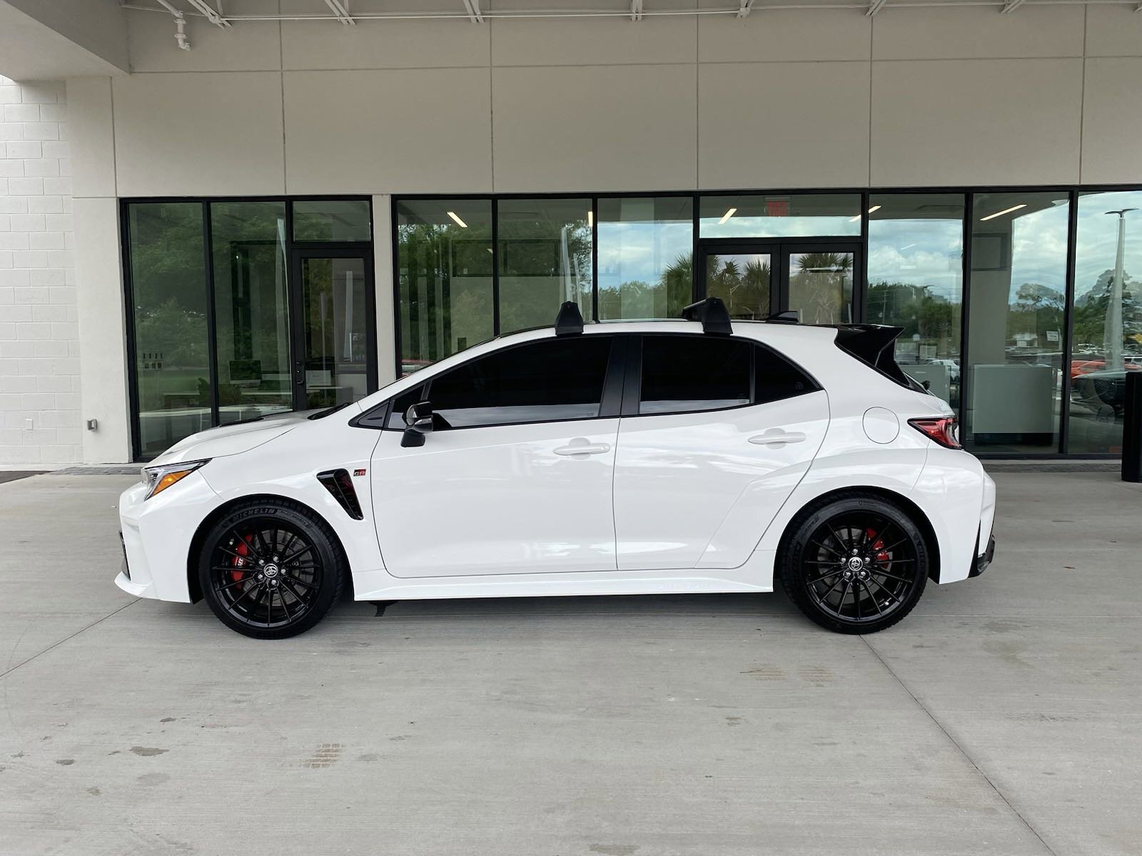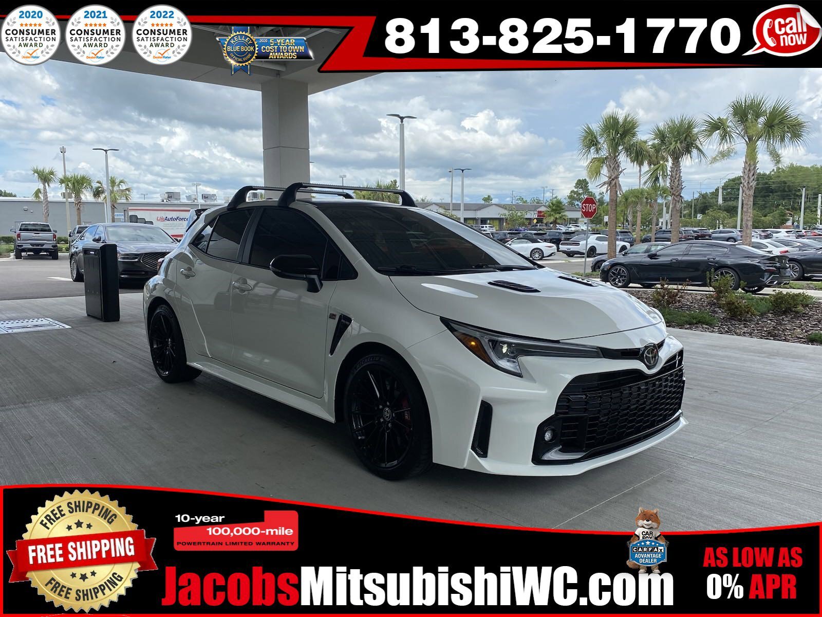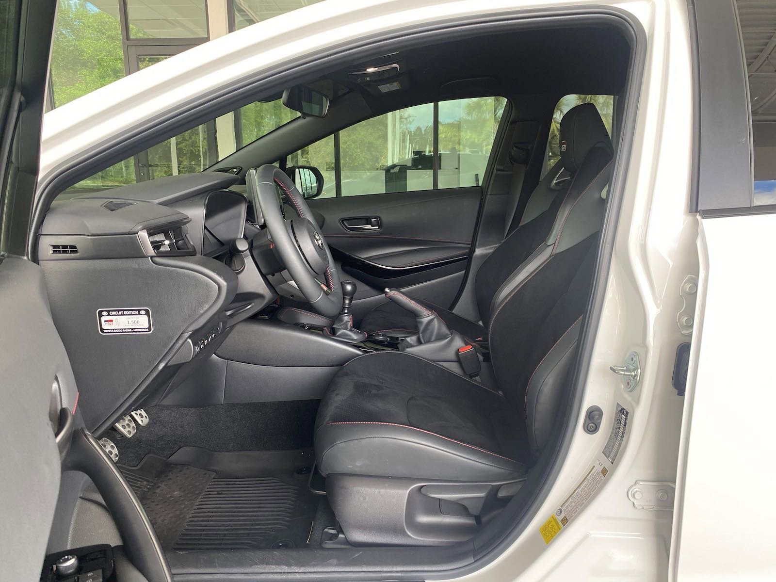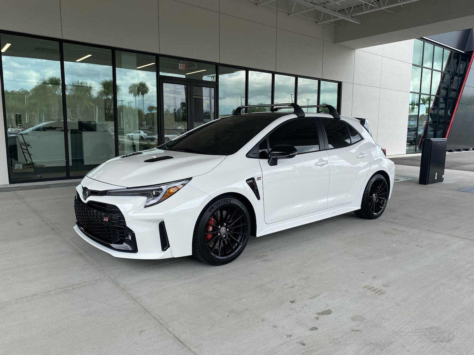GR Corolla Circuit Edition, 5D Hatchback, 1.6L I3 PDI Turbocharged DOHC 12V LEV3-ULEV70 300hp, 6-Speed Manual, AWD, Ice Cap, 4-Wheel Disc Brakes, 8 Speakers, ABS brakes, Air Conditioning, Alloy wheels, AM/FM radio: SiriusXM, Auto High-beam Headlights, Automatic temperature control, Brake assist, Brin-Naub & Synthetic Leather Seat Trim, Bumpers: body-color, Compass, Delay-off headlights, Driver door bin, Driver vanity mirror, Dual front impact airbags, Dual front side impact airbags, Electronic Stability Control, Emergency communication system: Safety Connect (up to 10-year trial subscription), Exterior Parking Camera Rear, Four wheel independent suspension, Front anti-roll bar, Front Bucket Seats, Front fog lights, Front reading lights, Fully automatic headlights, Heated front seats, Heated Sport Front Bucket Seats, Heated steering wheel, Illuminated entry, Knee airbag, Leather Shift Knob, Leather steering wheel, Low tire pressure warning, Navigation System, Navigation system: Drive Connect Cloud Navigation (1-year trial subscription), Occupant sensing airbag, Outside temperature display, Overhead airbag, Overhead console, Panic alarm, Passenger door bin, Passenger vanity mirror, Power door mirrors, Power steering, Power windows, Radio data system, Radio: Premium Audio w/8 JBL Speakers & Amplifier, Rear anti-roll bar, Rear seat center armrest, Rear side impact airbag, Rear window defroster, Rear window wiper, Remote keyless entry, Security system, Speed control, Speed-sensing steering, Split folding rear seat, Spoiler, Sport steering wheel, Steering wheel mounted audio controls, Tachometer, Telescoping steering wheel, Tilt steering wheel, Traction control, Trip computer, Turn signal indicator mirrors, Variably intermittent wipers, Wheels: 18" Cast Alloy Gloss Black 15 Spoke, GR Corolla Circuit Edition, 5D Hatchback, 1.6L I3 PDI Turbocharged DOHC 12V LEV3-ULEV70 300hp, 6-Speed Manual, AWD, Ice Cap, 4-Wheel Disc Brakes, 8 Speakers, ABS brakes, Air Conditioning, Alloy wheels, AM/FM radio: SiriusXM, Auto High-beam Headlights, Automatic temperature control, Brake assist, Brin-Naub & Synthetic Leather Seat Trim, Bumpers: body-color, Compass, Delay-off headlights, Driver door bin, Driver vanity mirror, Dual front impact airbags, Dual front side impact airbags, Electronic Stability Control, Emergency communication system: Safety Connect (up to 10-year trial subscription), Exterior Parking Camera Rear, Four wheel independent suspension, Front anti-roll bar, Front Bucket Seats, Front fog lights, Front reading lights, Fully automatic headlights, Heated front seats, Heated Sport Front Bucket Seats, Heated steering wheel, Illuminated entry, Knee airbag, Leather Shift Knob, Leather steering wheel, Low tire pressure warning, Navigation System, Navigation system: Drive Connect Cloud Navigation (1-year trial subscription), Occupant sensing airbag, Outside temperature display, Overhead airbag, Overhead console, Panic alarm, Passenger door bin, Passenger vanity mirror, Power door mirrors, Power steering, Power windows, Radio data system, Radio: Premium Audio w/8 JBL Speakers & Amplifier, Rear anti-roll bar, Rear seat center armrest, Rear side impact airbag, Rear window defroster, Rear window wiper, Remote keyless entry, Security system, Speed control, Speed-sensing steering, Split folding rear seat, Spoiler, Sport steering wheel, Steering wheel mounted audio controls, Tachometer, Telescoping steering wheel, Tilt steering wheel, Traction control, Trip computer, Turn signal indicator mirrors, Variably intermittent wipers, Wheels: 18" Cast Alloy Gloss Black 15 Spoke. 2023 Toyota GR Corolla Circuit Edition Ice Cap AWD 6-Speed Manual 1.6L I3 PDI Turbocharged DOHC 12V LEV3-ULEV70 300hp Clean CARFAX. CARFAX One-Owner. 21/28 City/Highway MPG
