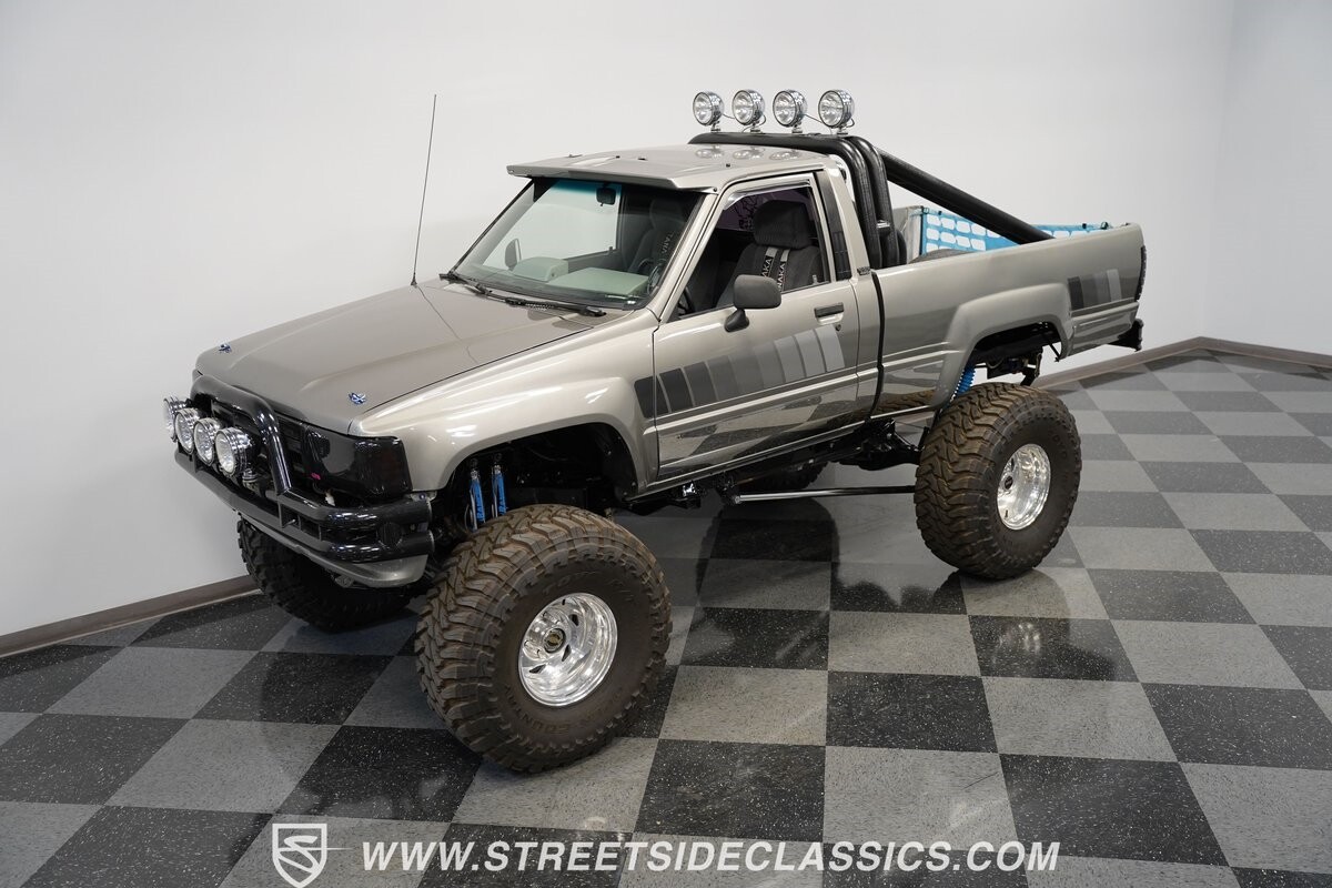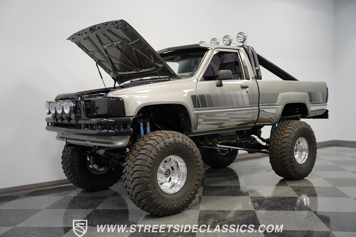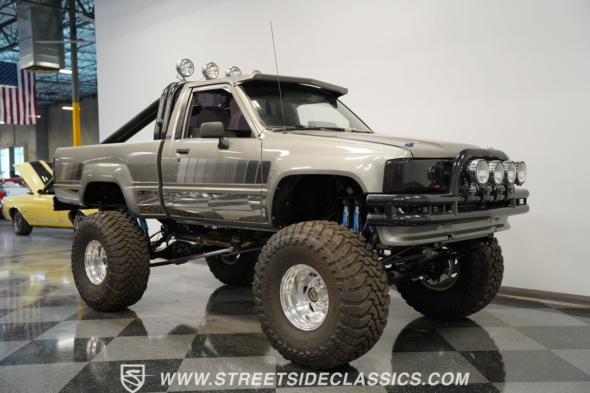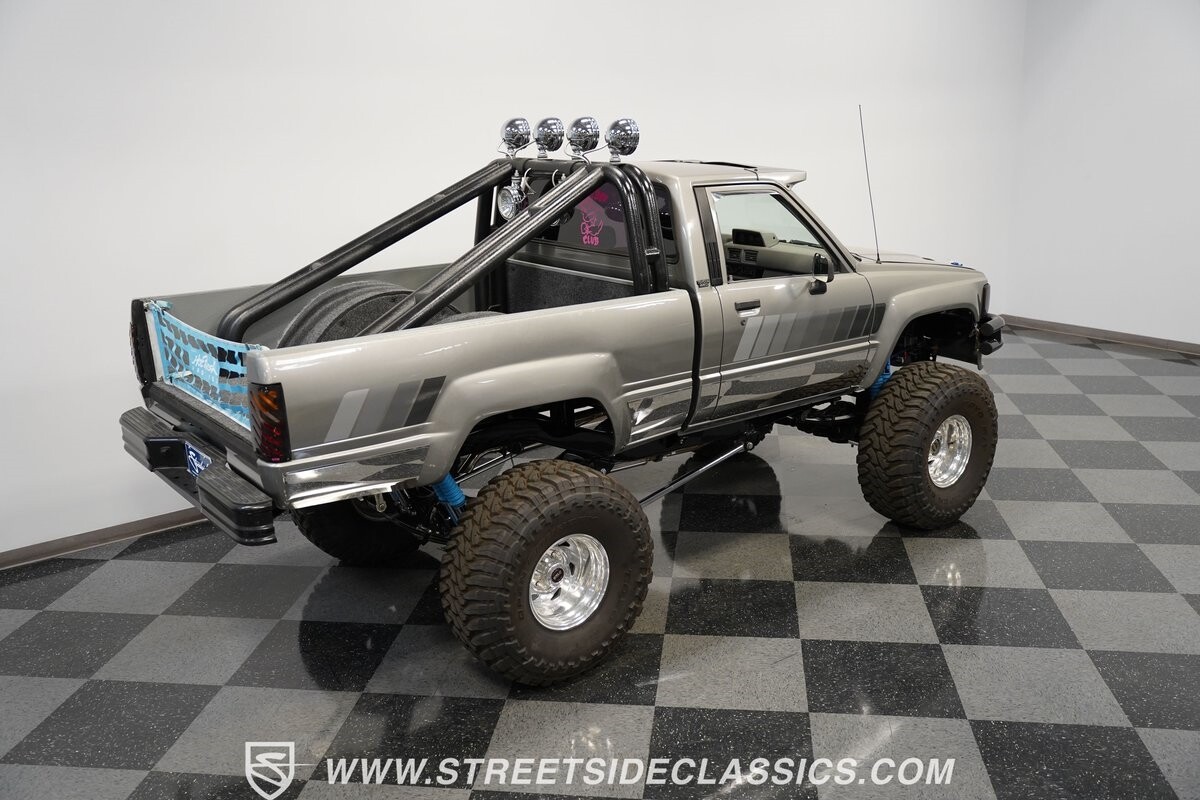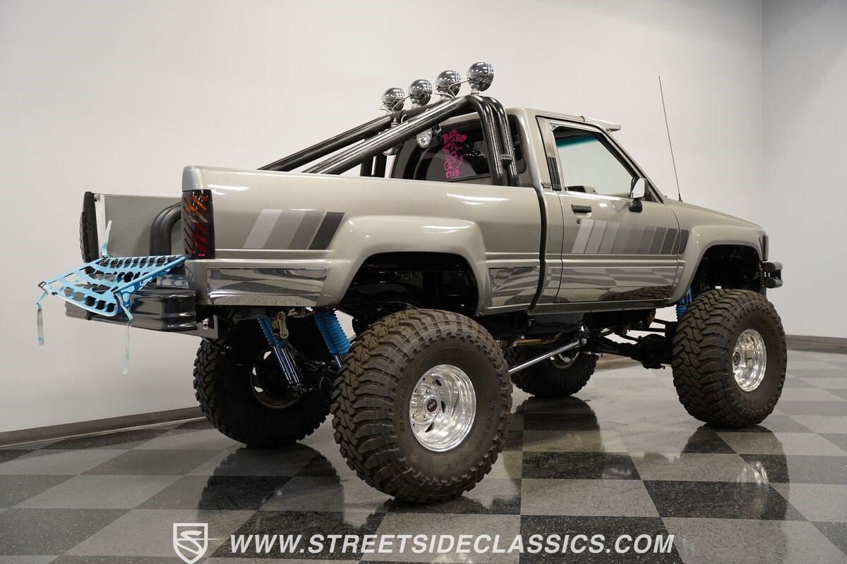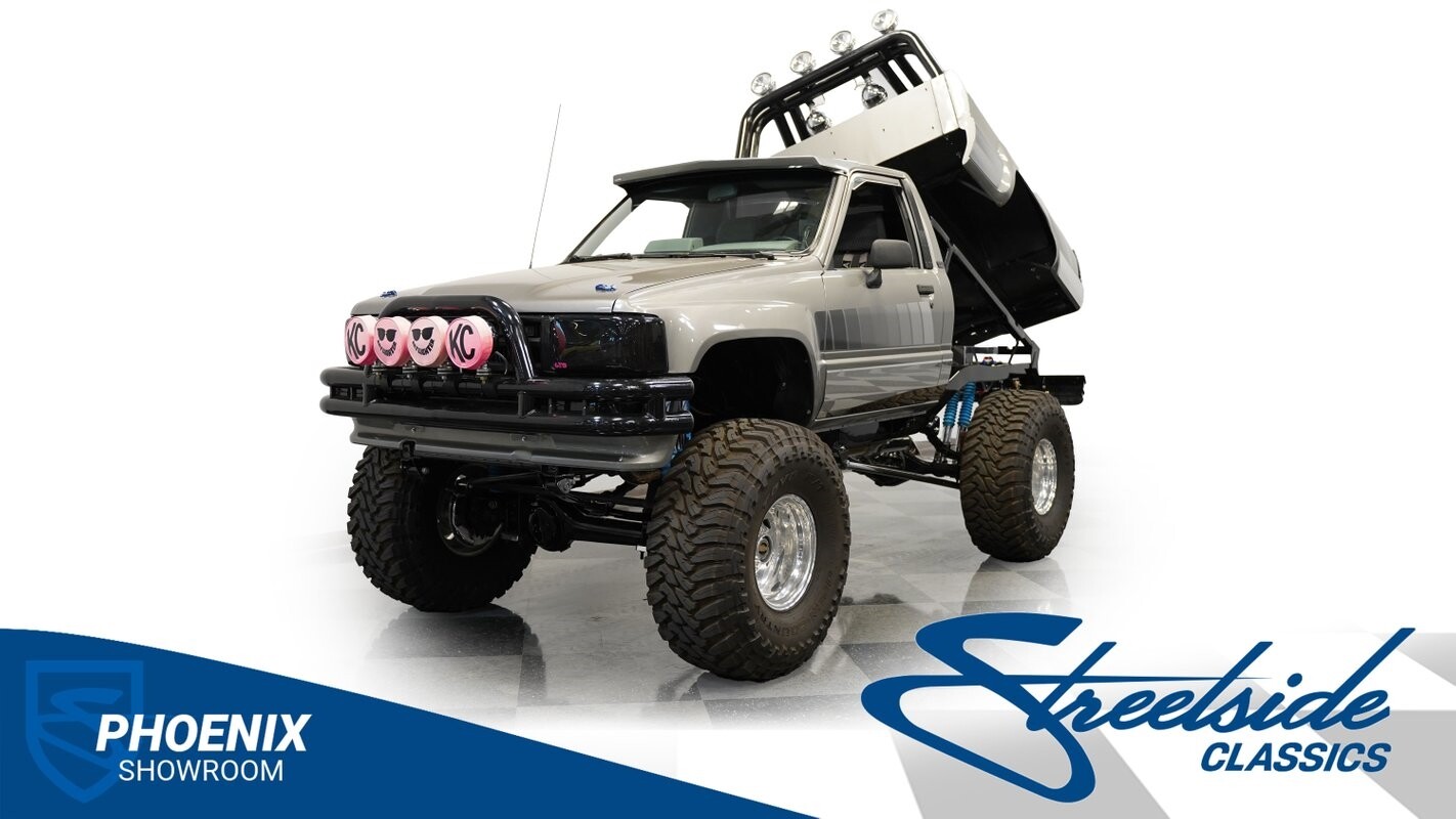 There are some nicely customized Toyota trucks to be found, but nothing compares to this spectacular 1985 Toyota 4x4 Pickup Truck. This premium-quality build features a high-quality paint finish, upgraded front bumper with off-road lights, cab-mounted sun visor and blacked-out headlights and taillights. The full fiberglass bed is fully carpeted and has a rollbar with more off-road lights. Additionally, the bed is fitted with large hydraulic rams and a hydraulic compressor allowing it to tilt in different directions.