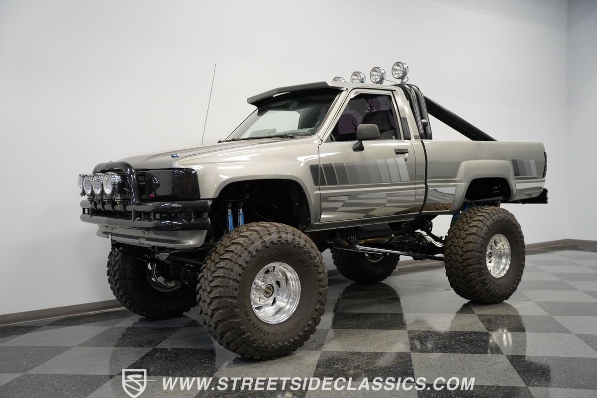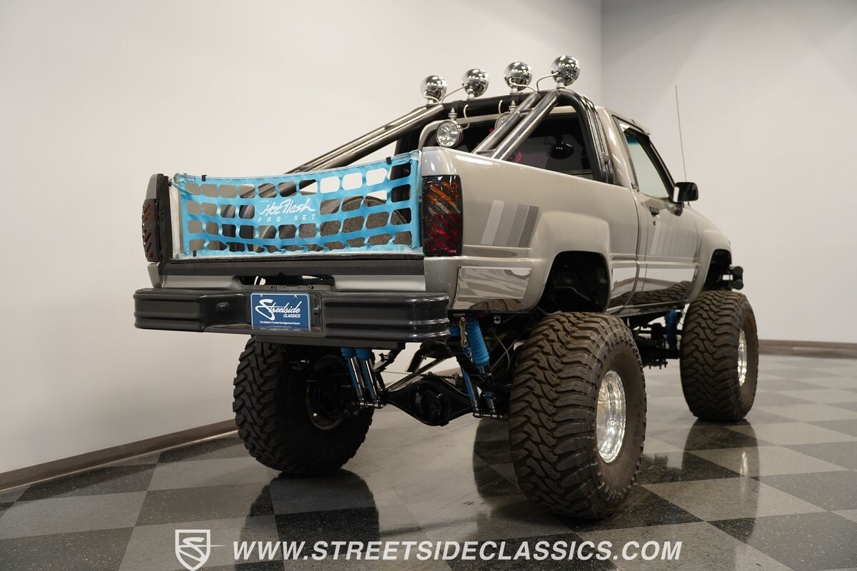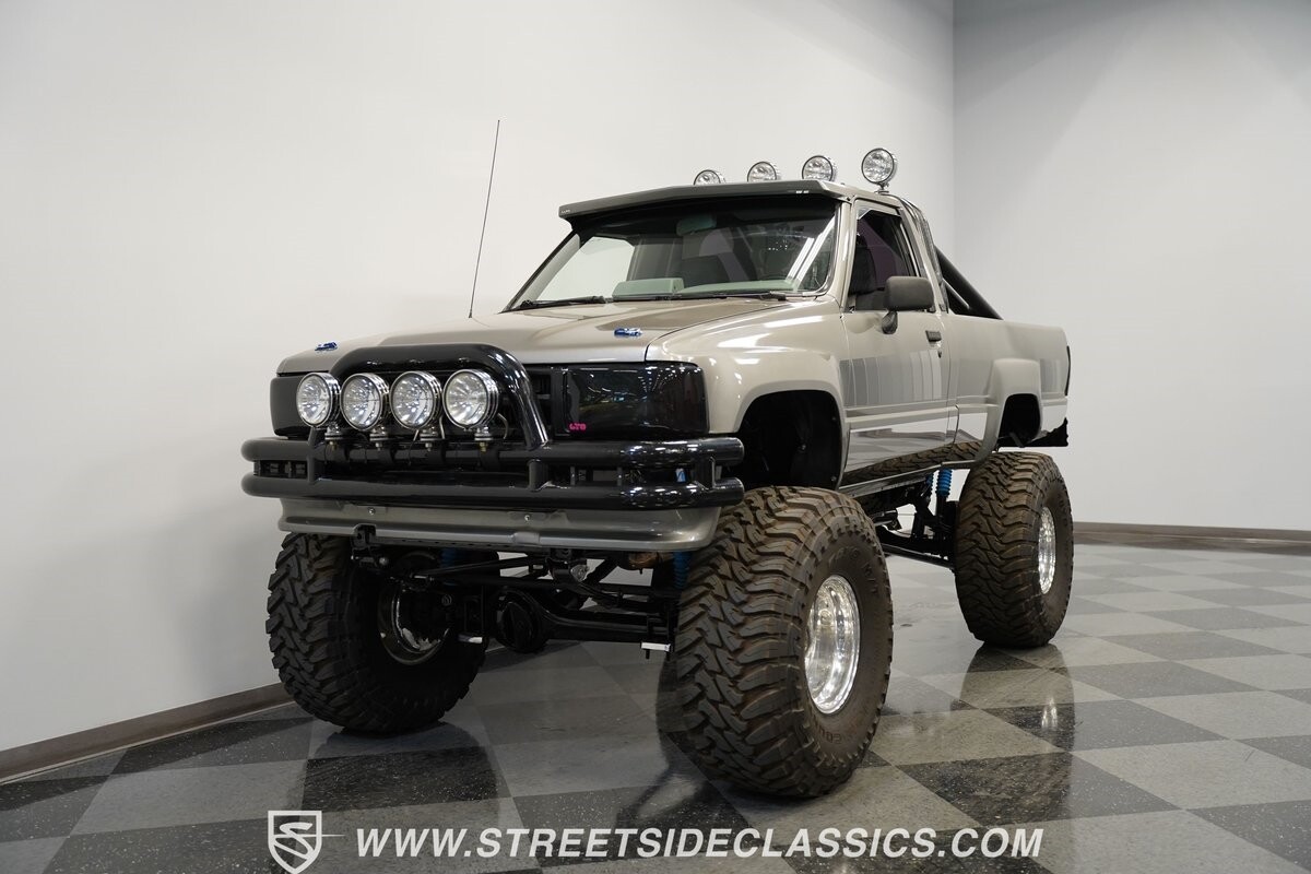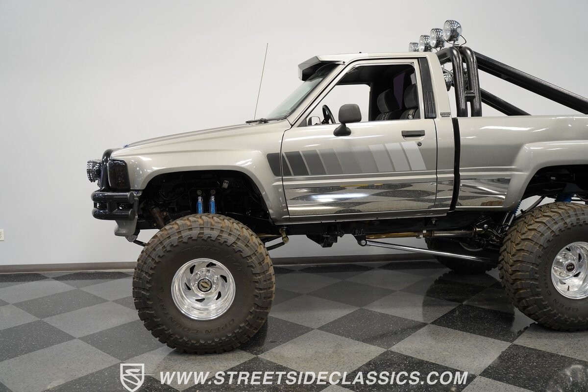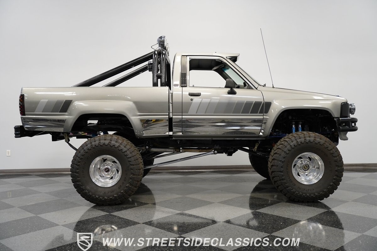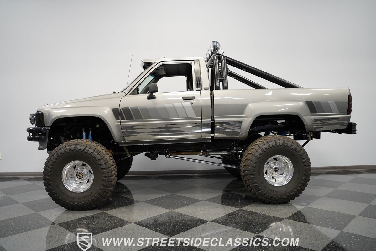There are some nicely customized Toyota trucks to be found, but nothing compares to this spectacular 1985 Toyota 4x4 Pickup Truck. This premium-quality build features a high-quality paint finish, upgraded front bumper with off-road lights, cab-mounted sun visor and blacked-out headlights and taillights. The full fiberglass bed is fully carpeted and has a rollbar with more off-road lights. Additionally, the bed is fitted with large hydraulic rams and a hydraulic compressor allowing it to tilt in different directions.